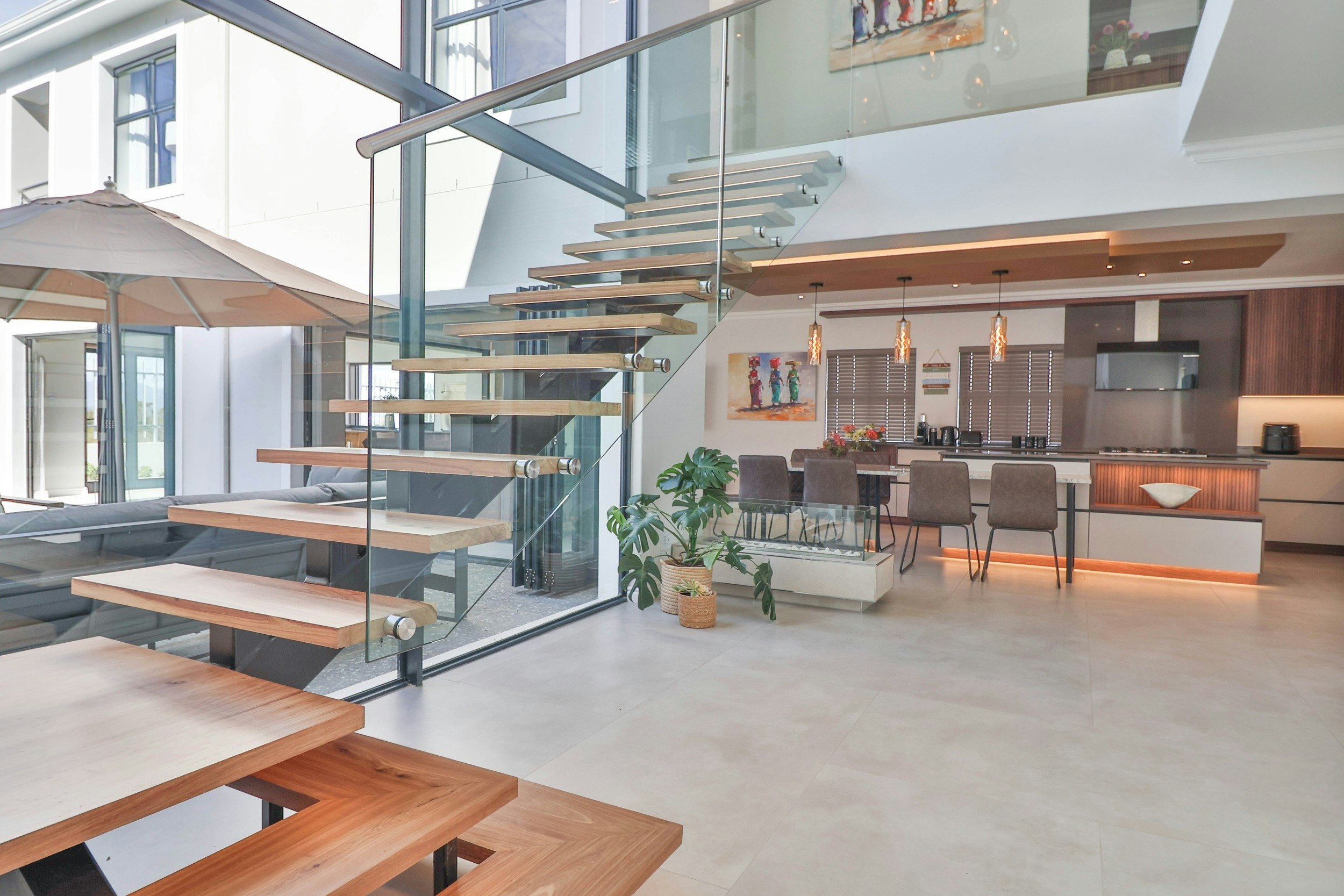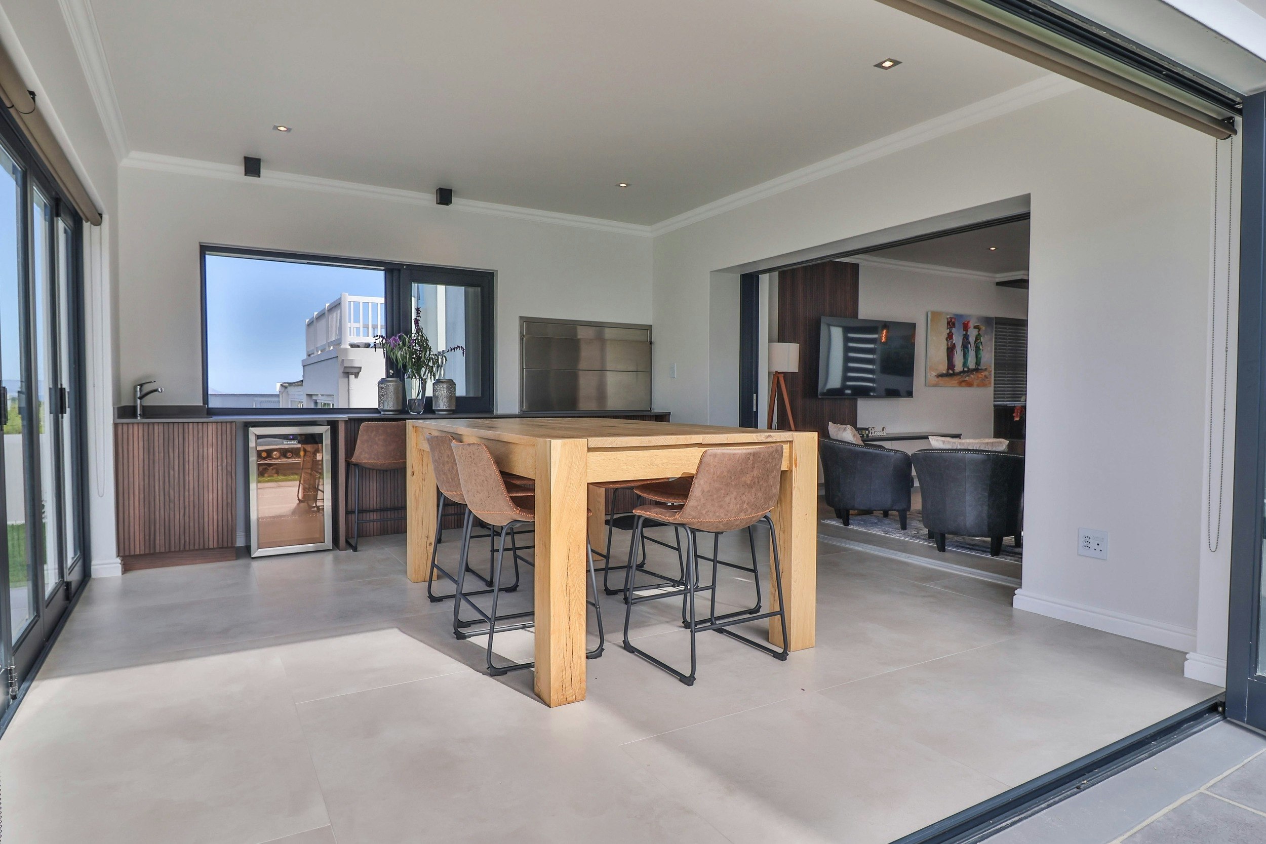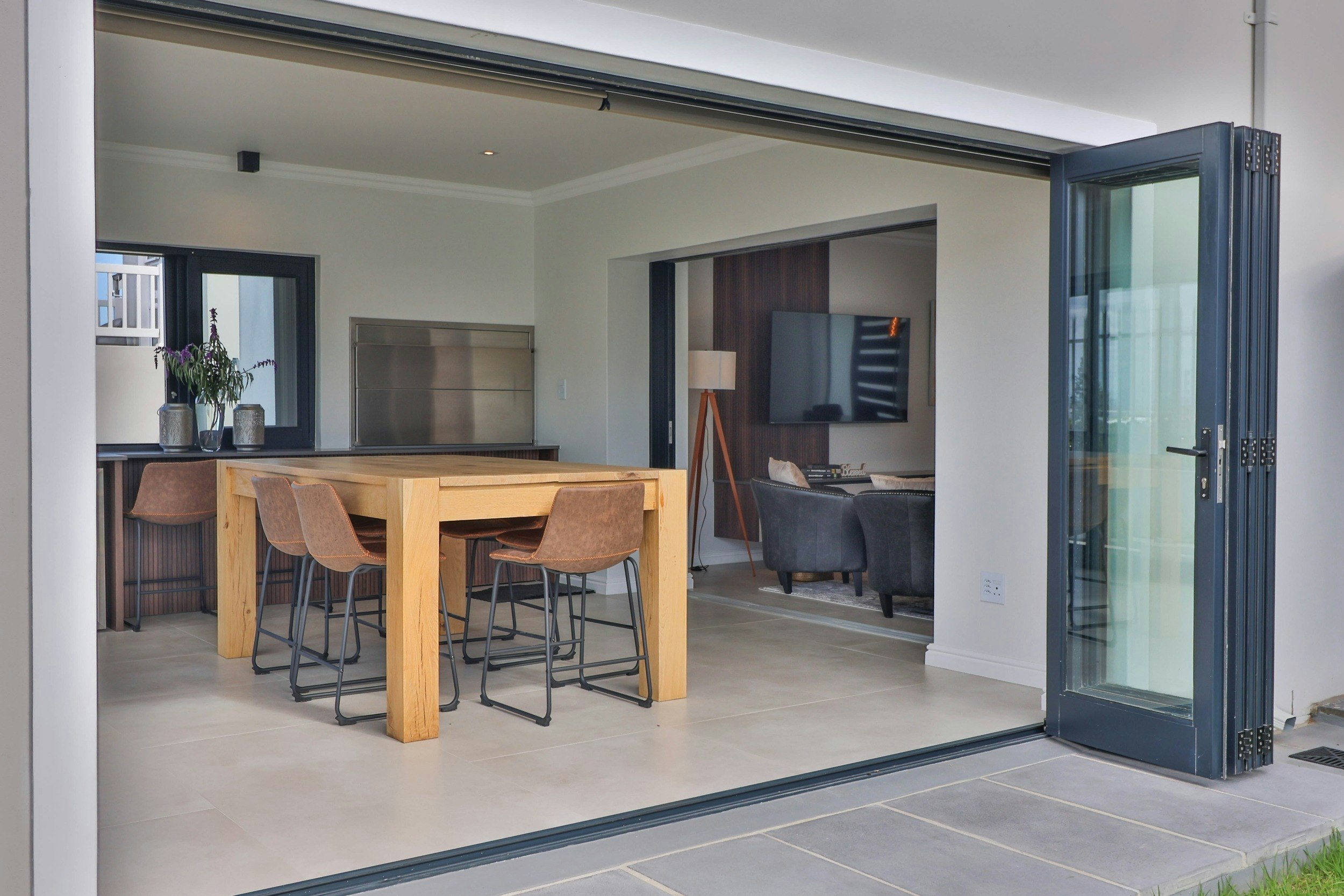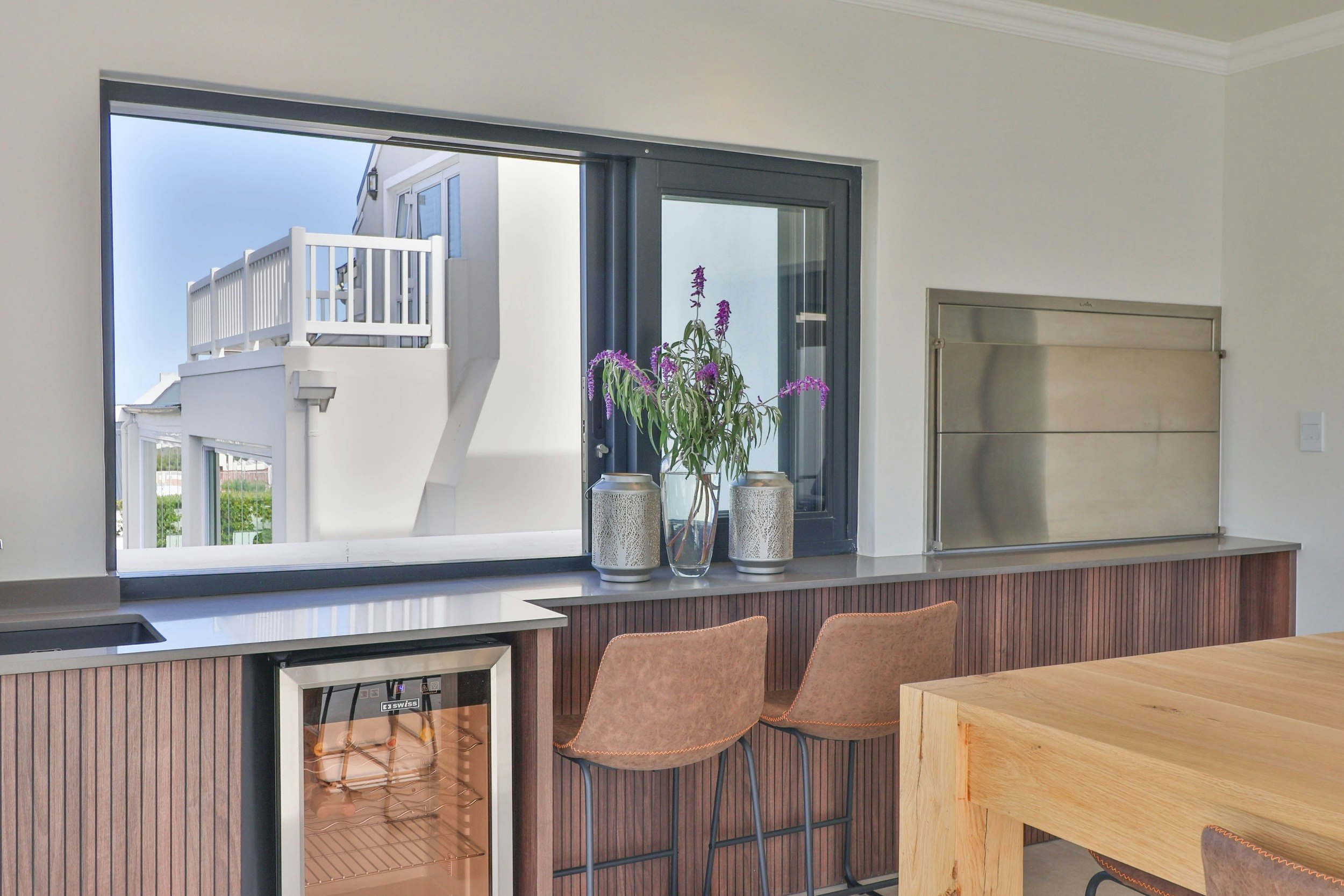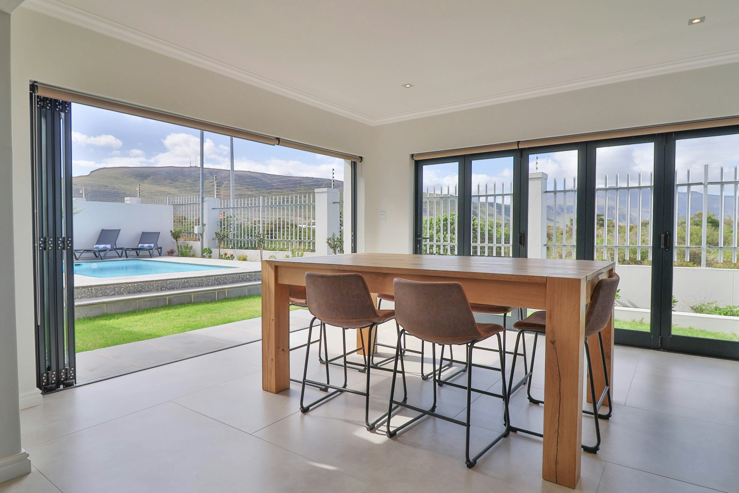 Die huis met lugversorging het 'n oopplan-kombuis, -eetkamer en TV-sitarea met 'n gasvuurkaggel en gastebadkamer. Die kombuis is volledig toegerus met 'n yskas-vrieskas, elektriese oond, gasstoof, mikrogolf, ketel, broodrooster, koffiemasjien en skoonmaakmiddels. In 'n aparte opwaskamer is daar 'n skottelgoedwasser, wasmasjien en tuimeldroër vir gaste se gerief. Die sitkamer is ingerig met gemaklike sitplek. Die TV het Netflix-funksionaliteit en gaste word aangemoedig om hul eie DSTV-stroom te doen. Gaste sal langs die TV-sitkamer die gasvuurbraaigeriewe met 6-sitplek-etenstafel vind. 'n Aparte studeerkamer is bo geleë en is perfek vir langer verblyf en werk van die huis af. Komplimentêre WiFi is beskikbaar.