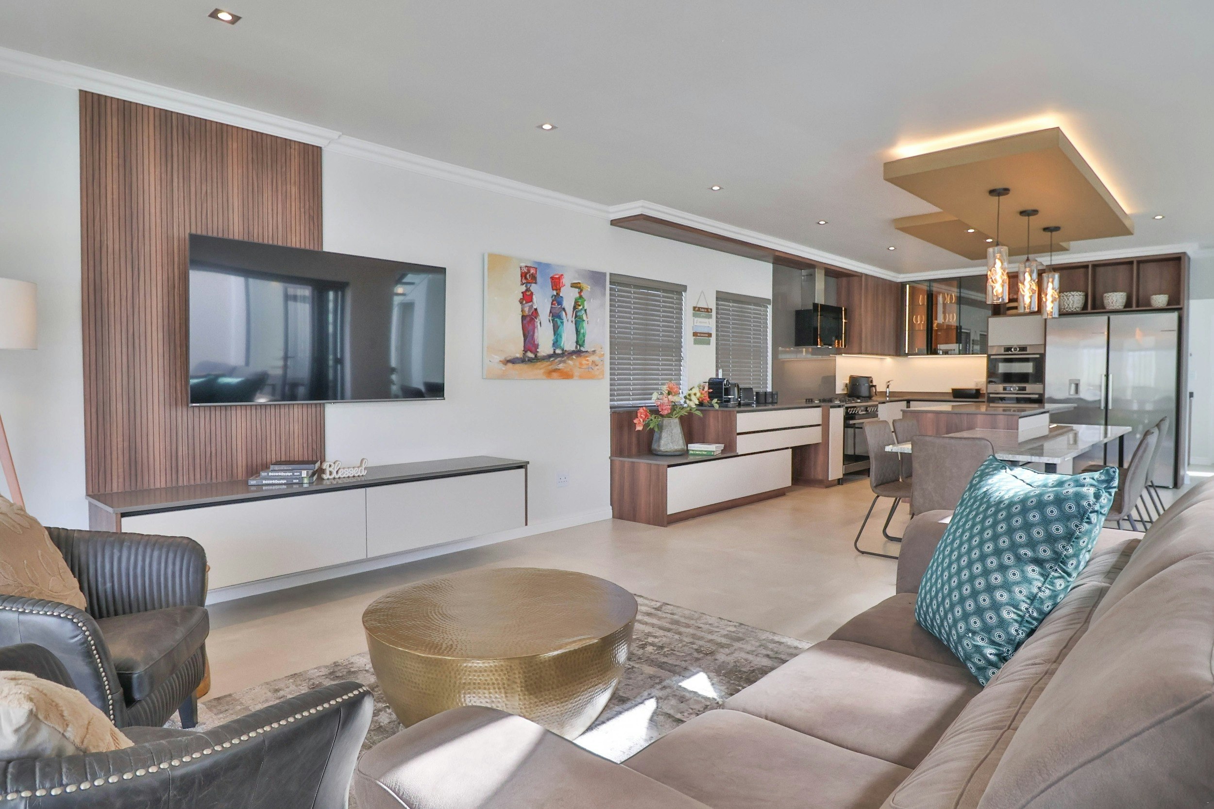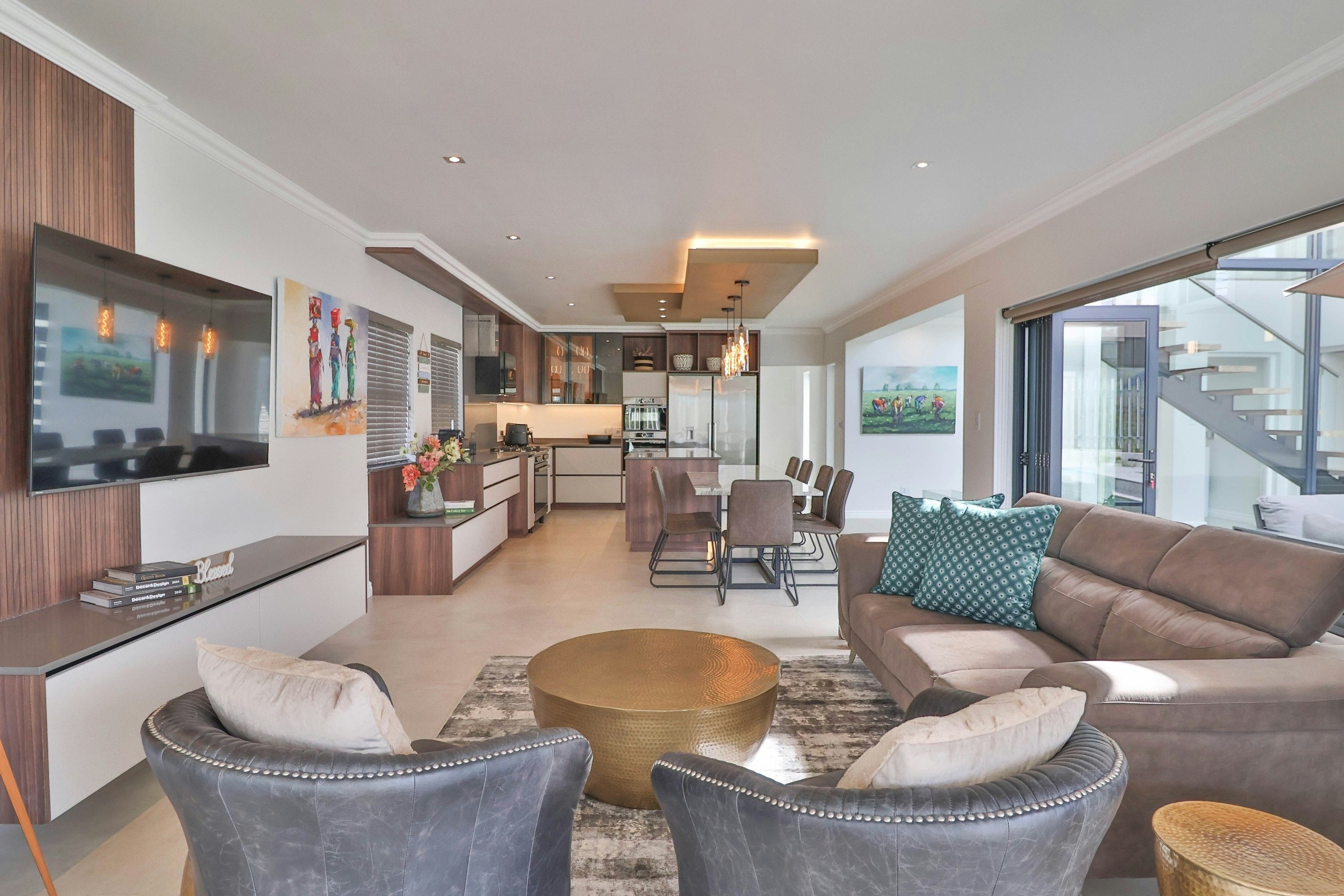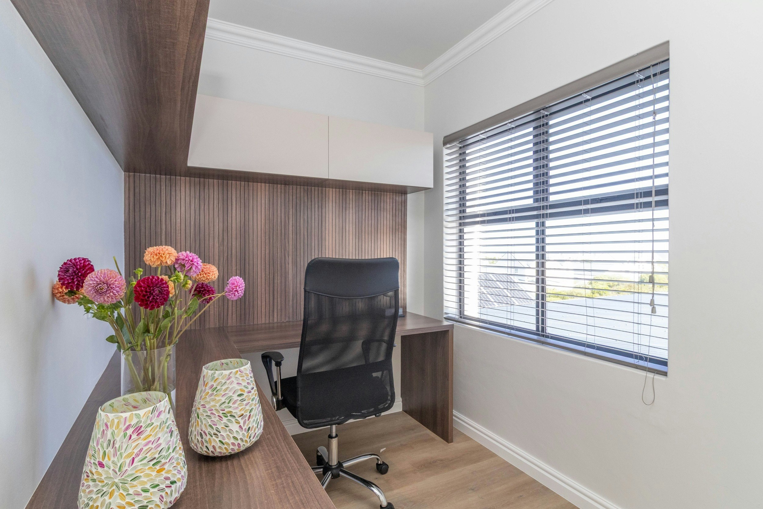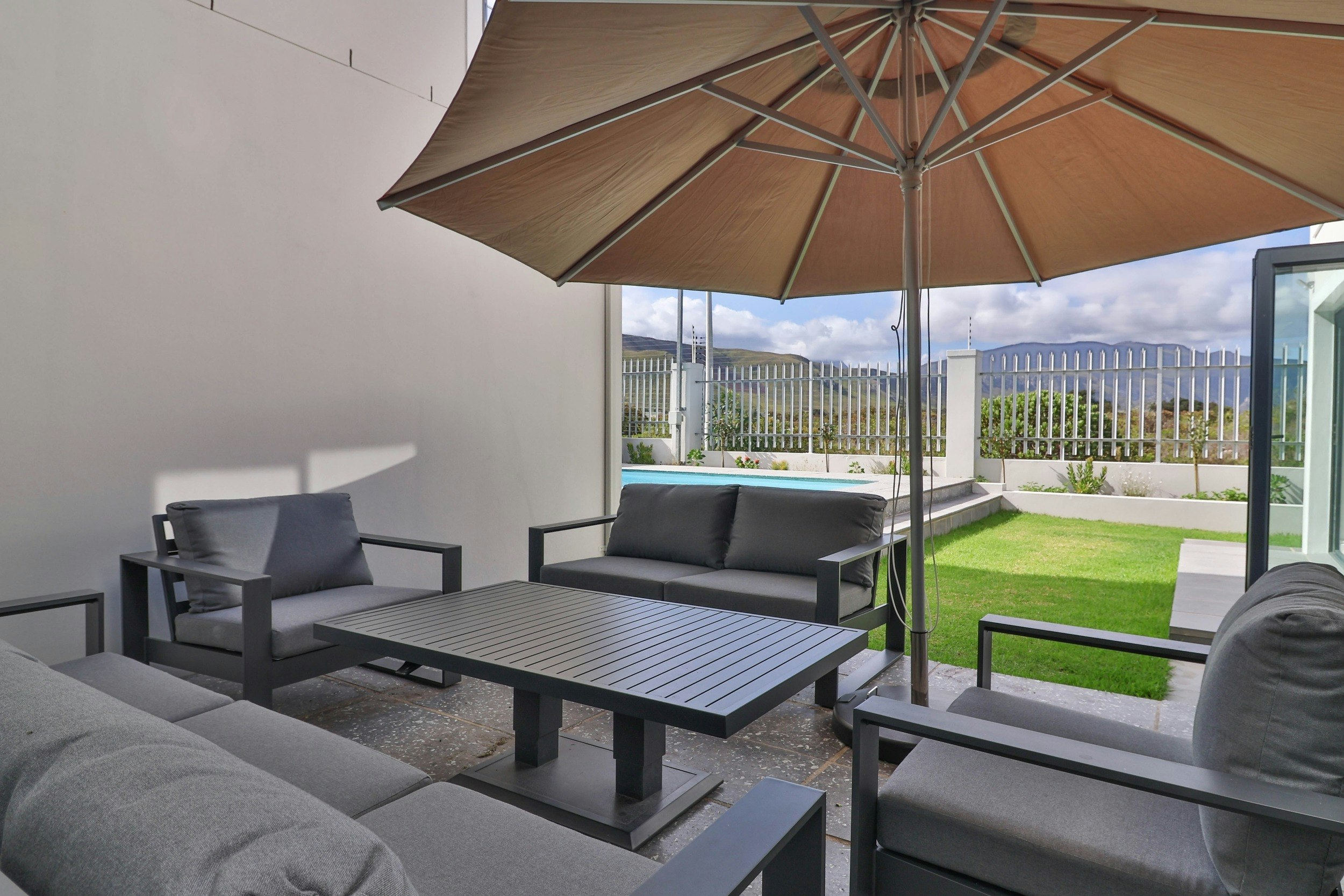Die huis met lugversorging het 'n oopplan-kombuis, -eetkamer en TV-sitarea met 'n gasvuurkaggel en gastebadkamer. Die kombuis is volledig toegerus met 'n yskas-vrieskas, elektriese oond, gasstoof, mikrogolf, ketel, broodrooster, koffiemasjien en skoonmaakmiddels. In 'n aparte opwaskamer is daar 'n skottelgoedwasser, wasmasjien en tuimeldroër vir gaste se gerief. Die sitkamer is ingerig met gemaklike sitplek. Die TV het Netflix-funksionaliteit en gaste word aangemoedig om hul eie DSTV-stroom te doen. Gaste sal langs die TV-sitkamer die gasvuurbraaigeriewe met 6-sitplek-etenstafel vind. 'n Aparte studeerkamer is bo geleë en is perfek vir langer verblyf en werk van die huis af. Komplimentêre WiFi is beskikbaar.