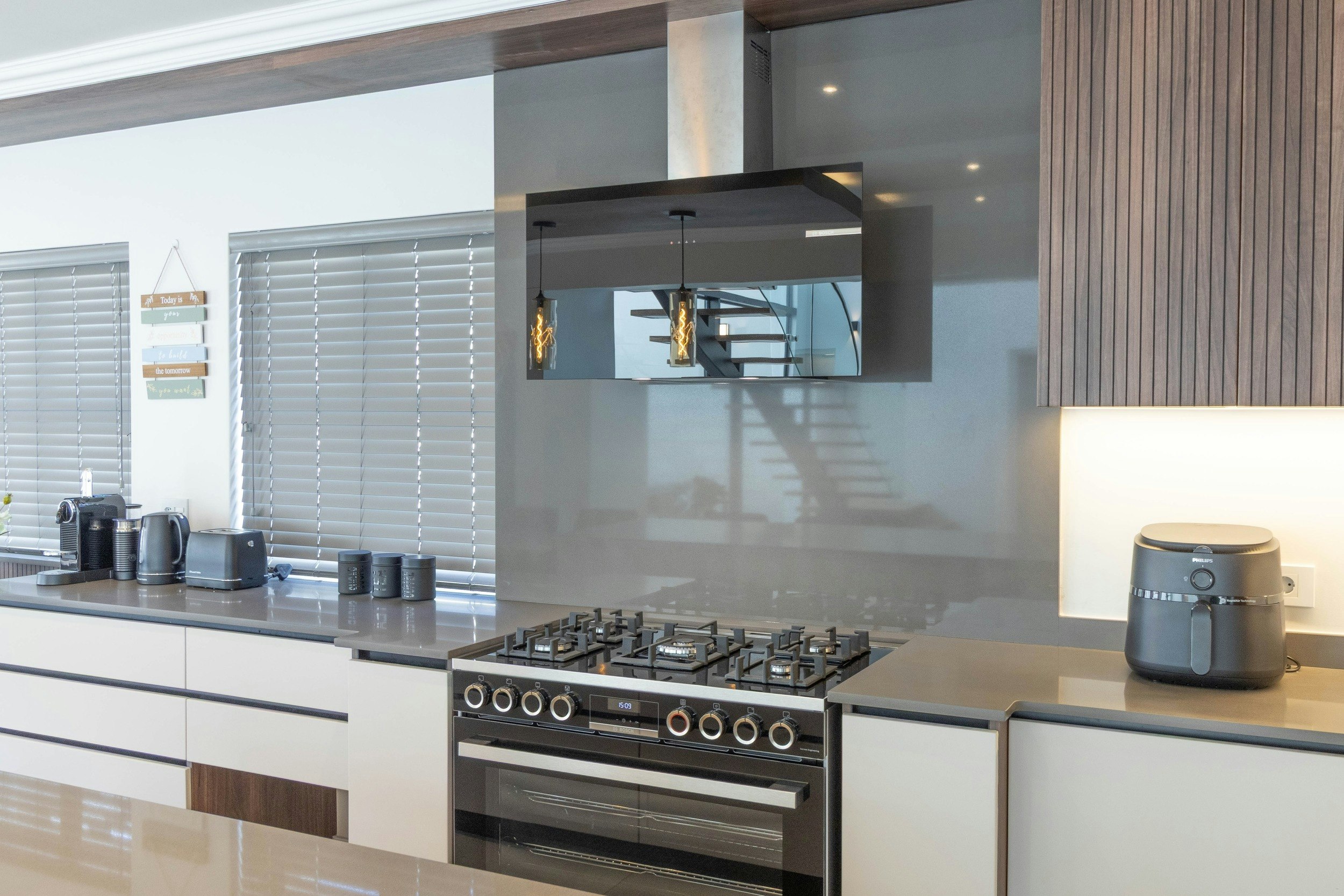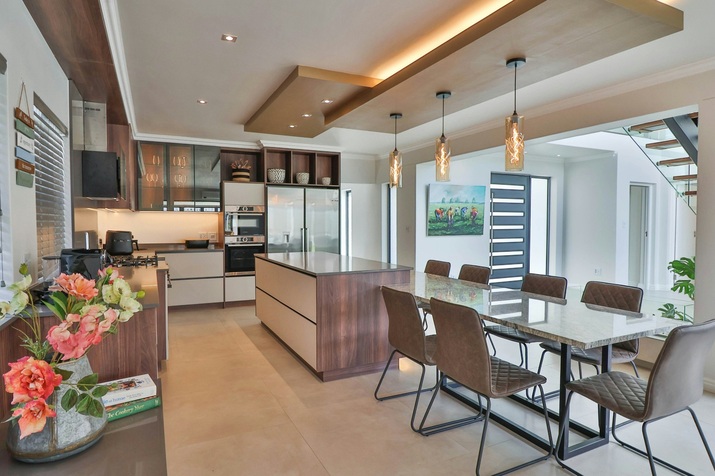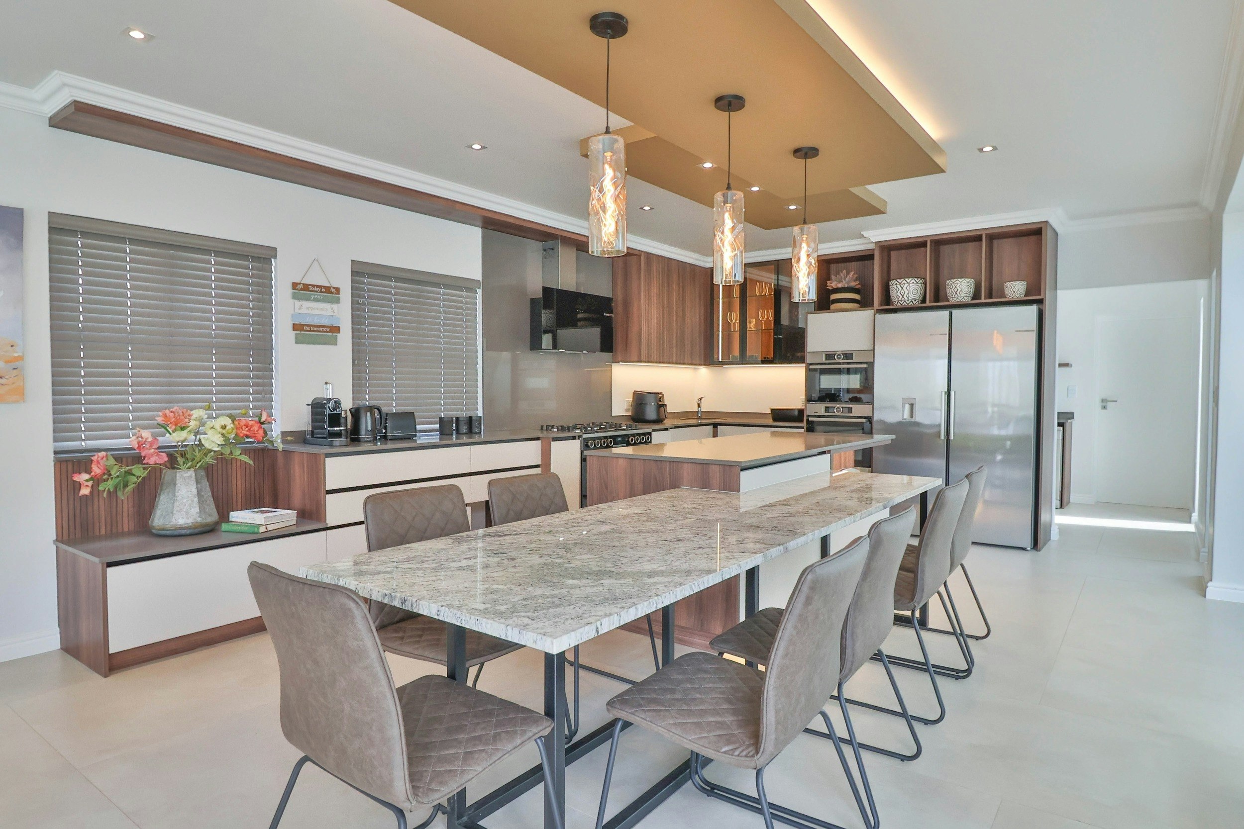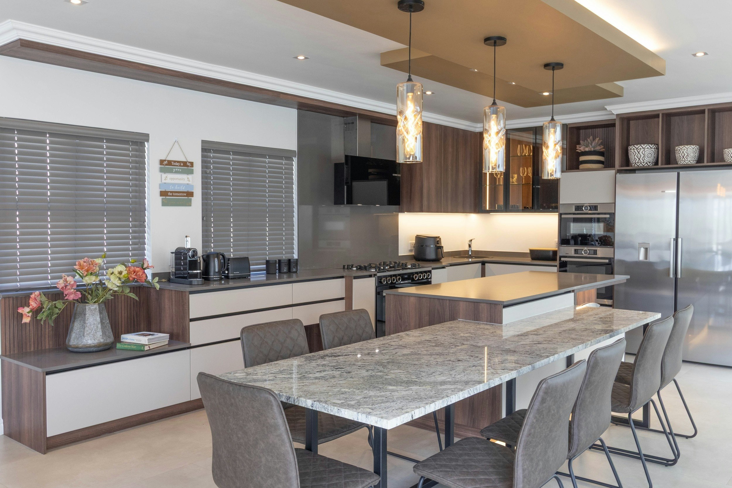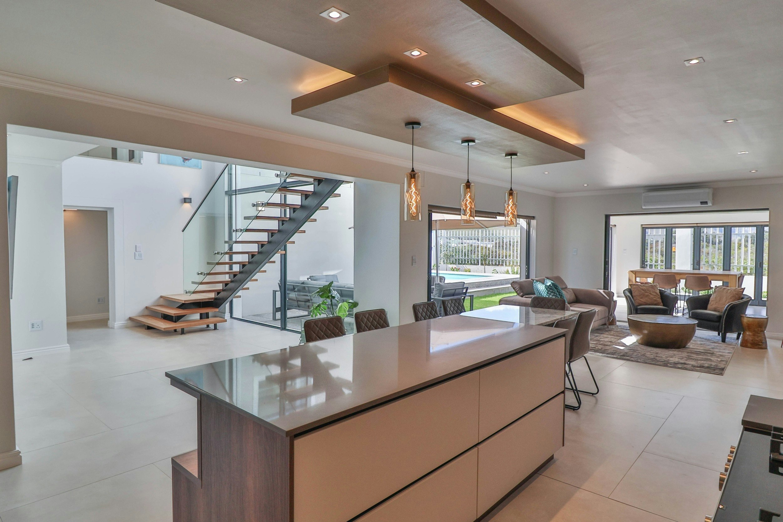 Die huis met lugversorging het 'n oopplan-kombuis, -eetkamer en TV-sitarea met 'n gasvuurkaggel en gastebadkamer. Die kombuis is volledig toegerus met 'n yskas-vrieskas, elektriese oond, gasstoof, mikrogolf, ketel, broodrooster, koffiemasjien en skoonmaakmiddels. In 'n aparte opwaskamer is daar 'n skottelgoedwasser, wasmasjien en tuimeldroër vir gaste se gerief. Die sitkamer is ingerig met gemaklike sitplek. Die TV het Netflix-funksionaliteit en gaste word aangemoedig om hul eie DSTV-stroom te doen. Gaste sal langs die TV-sitkamer die gasvuurbraaigeriewe met 6-sitplek-etenstafel vind. 'n Aparte studeerkamer is bo geleë en is perfek vir langer verblyf en werk van die huis af. Komplimentêre WiFi is beskikbaar.