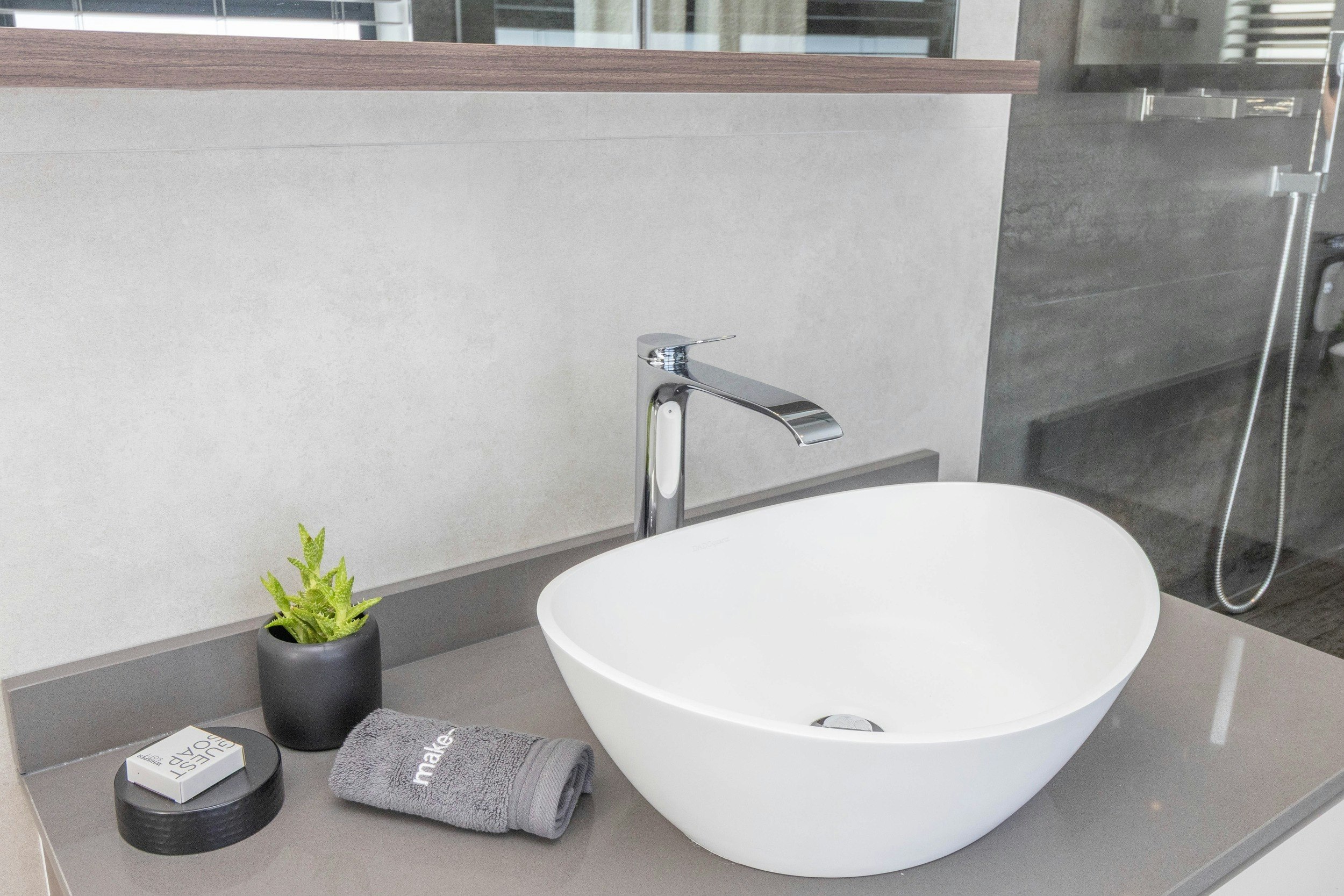 Die dubbelverdiepinghuis beskik oor 3 slaapkamers en bied slaapplek aan 6 gaste. Die hoofslaapkamer op die boonste verdieping is ingerig met 'n koninggrootte-bed en het 'n en suite-badkamer met 'n bad en stort. Die tweede slaapkamer is ook bo geleë en is ingerig met 'n koninggrootte-bed en en suite-badkamer met 'n ruim stort. Die derde slaapkamer op die onderste verdieping vorm deel van 'n volledig toegeruste woonstel met 'n leefarea en kombuisie, en beskik oor 'n koninggrootte-bed en luukse, rolstoelvriendelike badkamer met 'n stort.