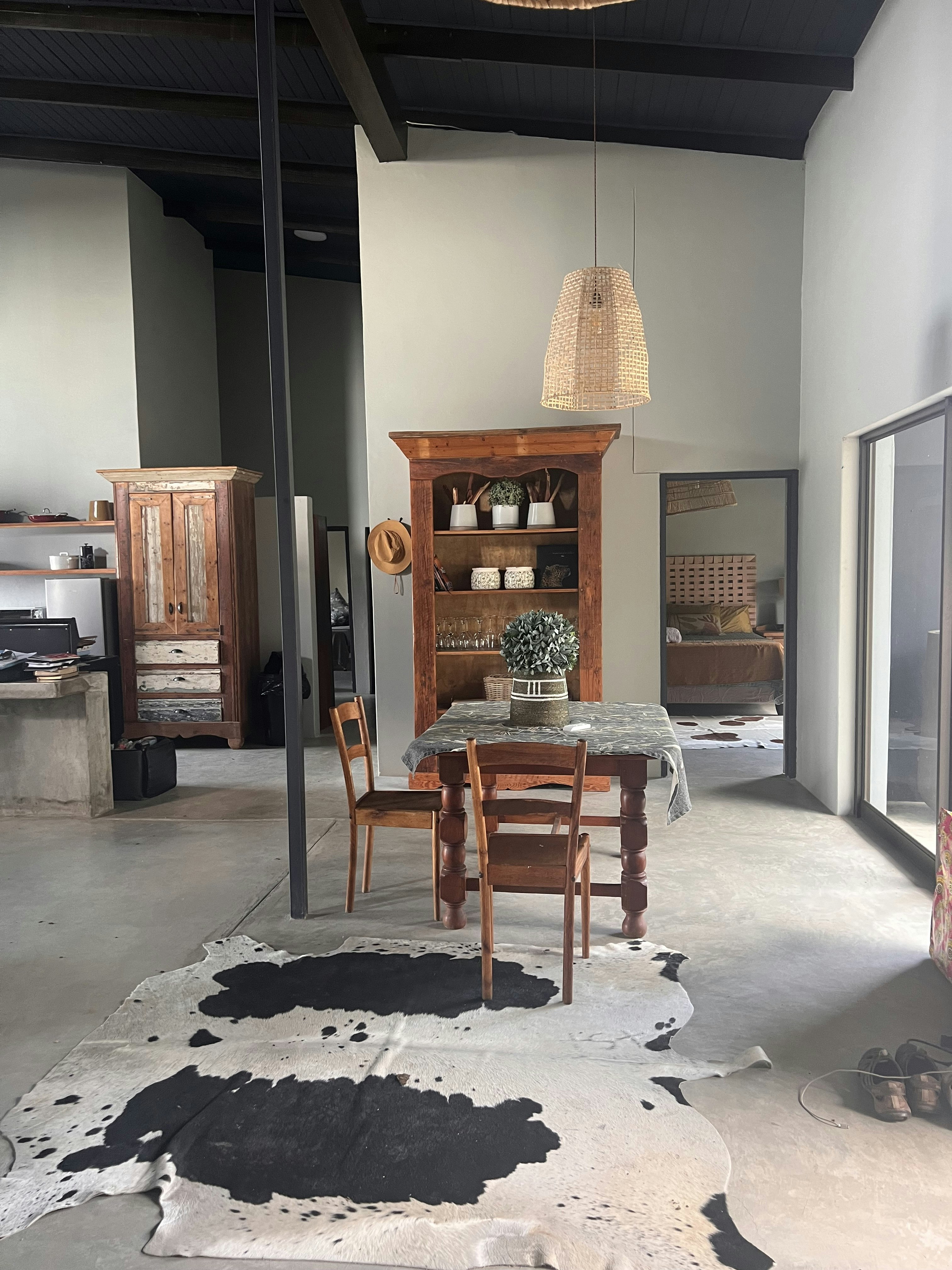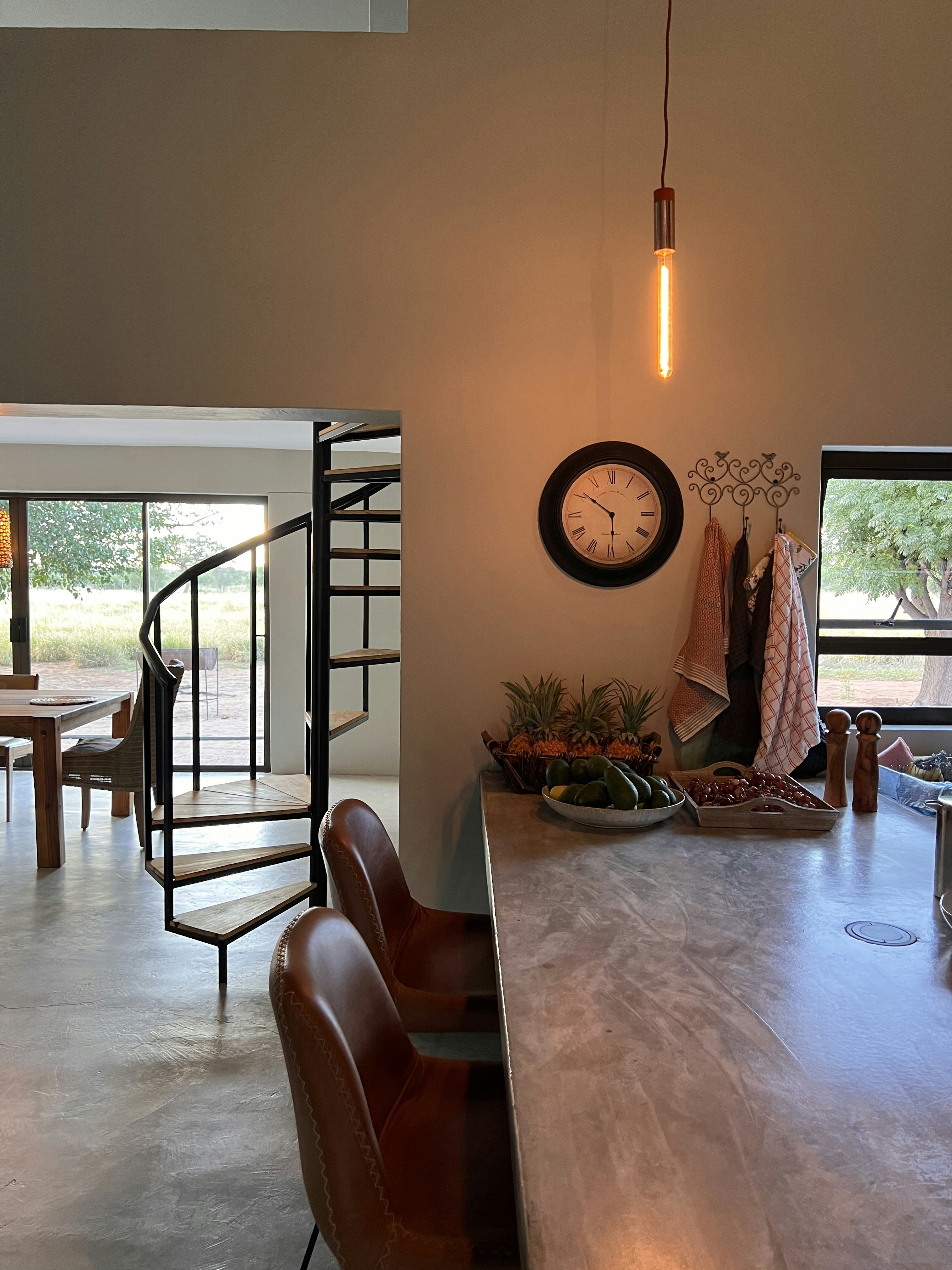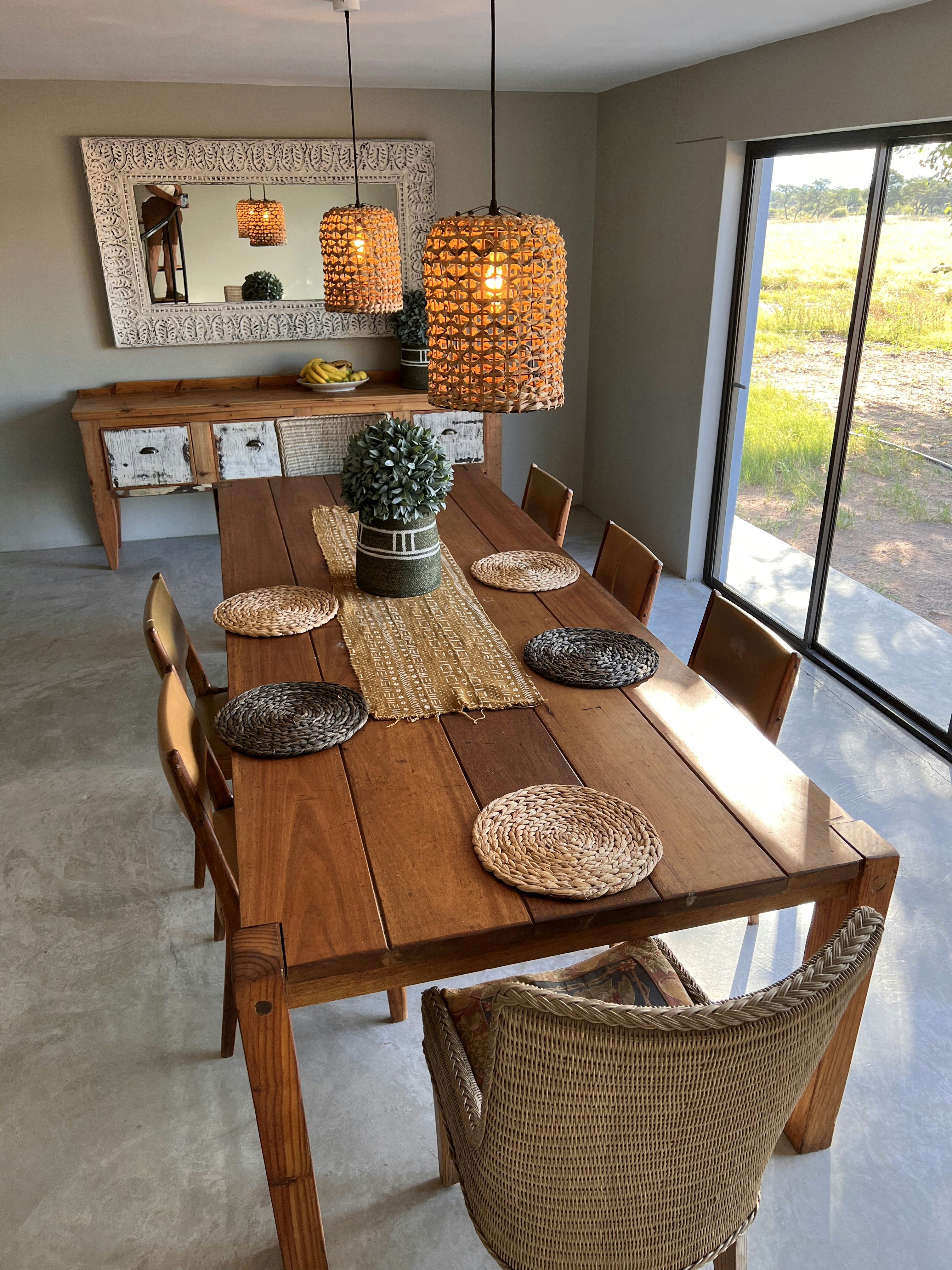 Upstairs, there is a lovely indoor braai area which is an ideal spot for guests to enjoy a sundowner in the evening while overlooking the bushveld. The location of this property is 217 km from Windhoek and 520 km from Etosha, while having easy access from main roads.