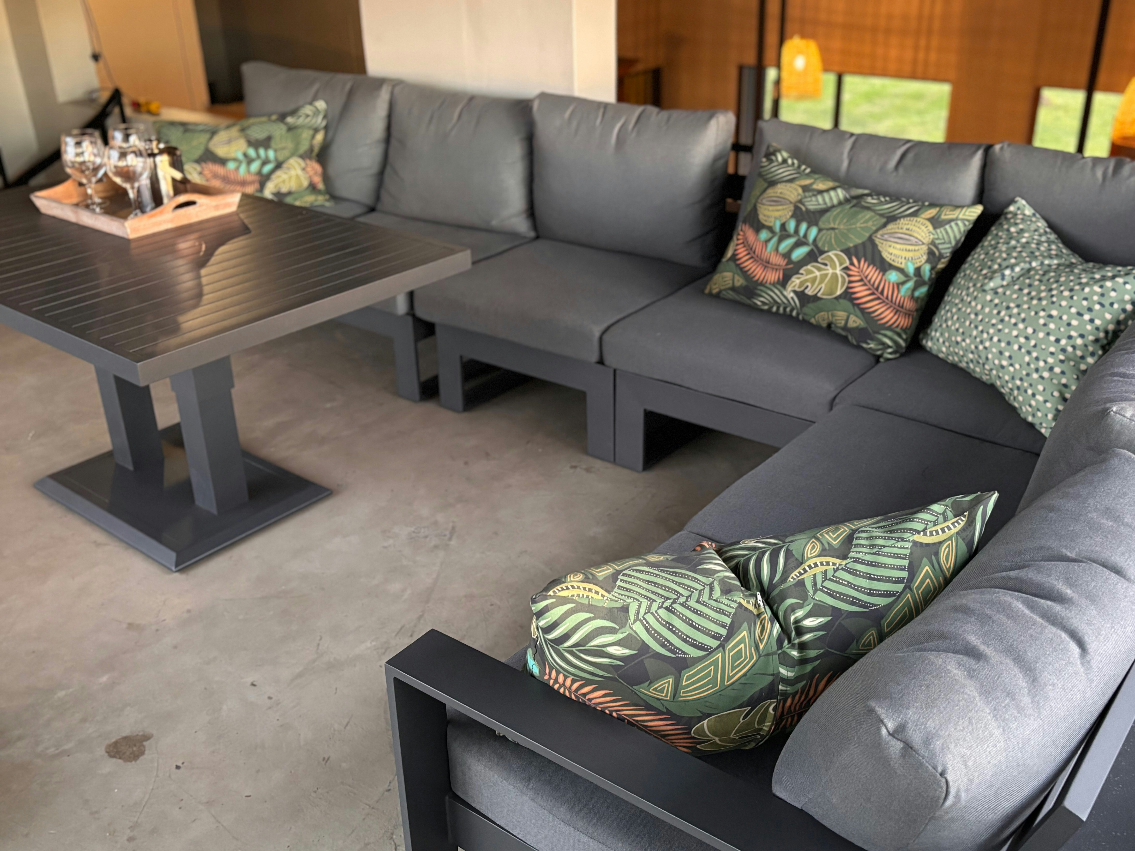 This double-storey property can accommodate a total of 10 guests at a time and comprises 5 bedrooms and 3 bathrooms. The main bedroom is furnished with a double bed and features an en-suite bathroom fitted with a shower. The second bedroom has 2 single beds as well as an en-suite shower. There are another 2 bedrooms that each contain a double bed, while the fifth bedroom has 2 single beds. Another shower is available in the third bathroom. All linen and bath towels are provided.