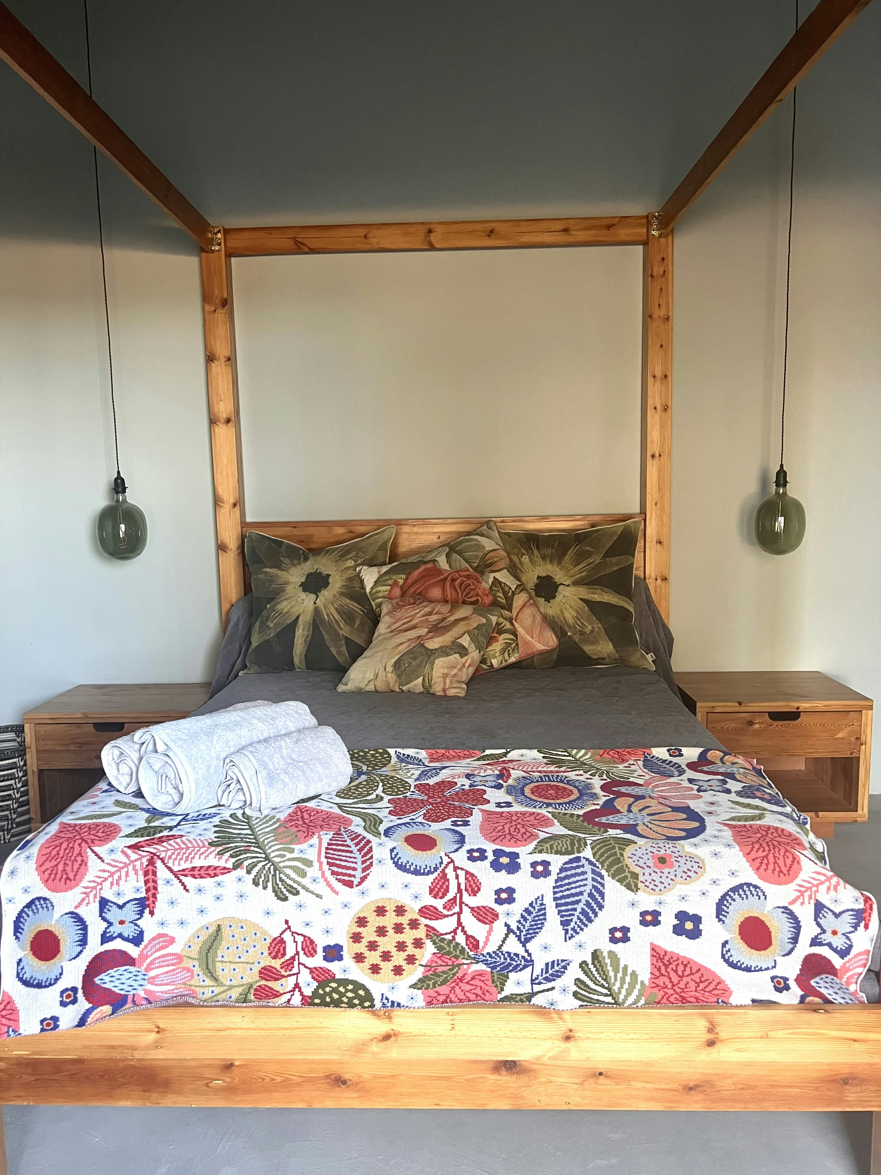 The open-plan living area has tall ceilings and features a kitchen fully equipped with a stove, oven, fridge-freezer, cutlery and crockery as well as a breakfast bar with stools. Leading from the kitchen is a dining table with ample seating for guests to enjoy their meals together. Adjacent to the dining space, there is a cosy lounge space with comfy seating. Access to free Wi-Fi is available.