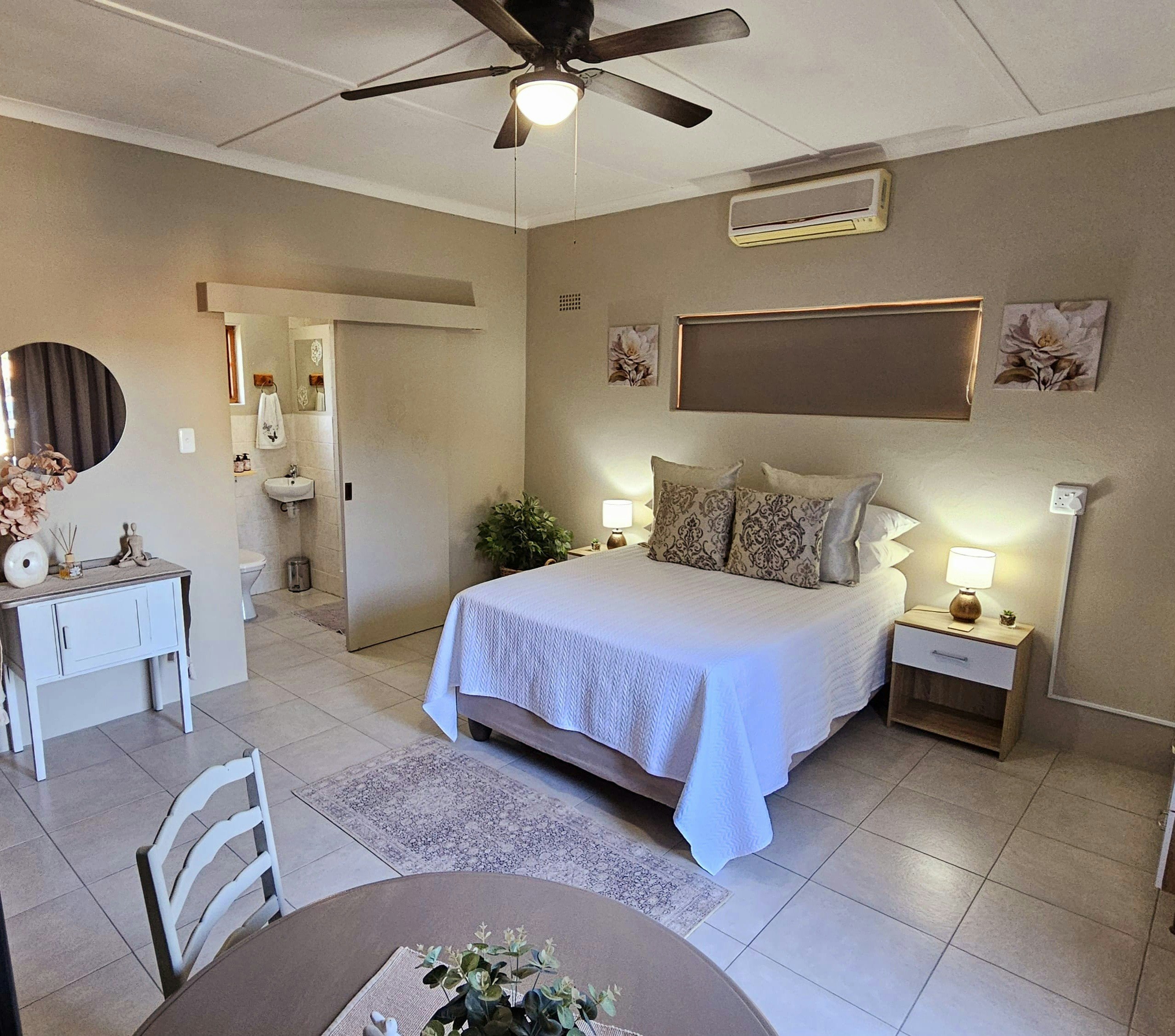 Olyf Takkie 2 is a neat, stylish self-catering unit with a comfortable double bed. The bathroom is fitted with a toilet, shower and basin. The unit features a small kitchenette with a kettle and fridge, a sitting/dining nook, air conditioning and a ceiling fan.