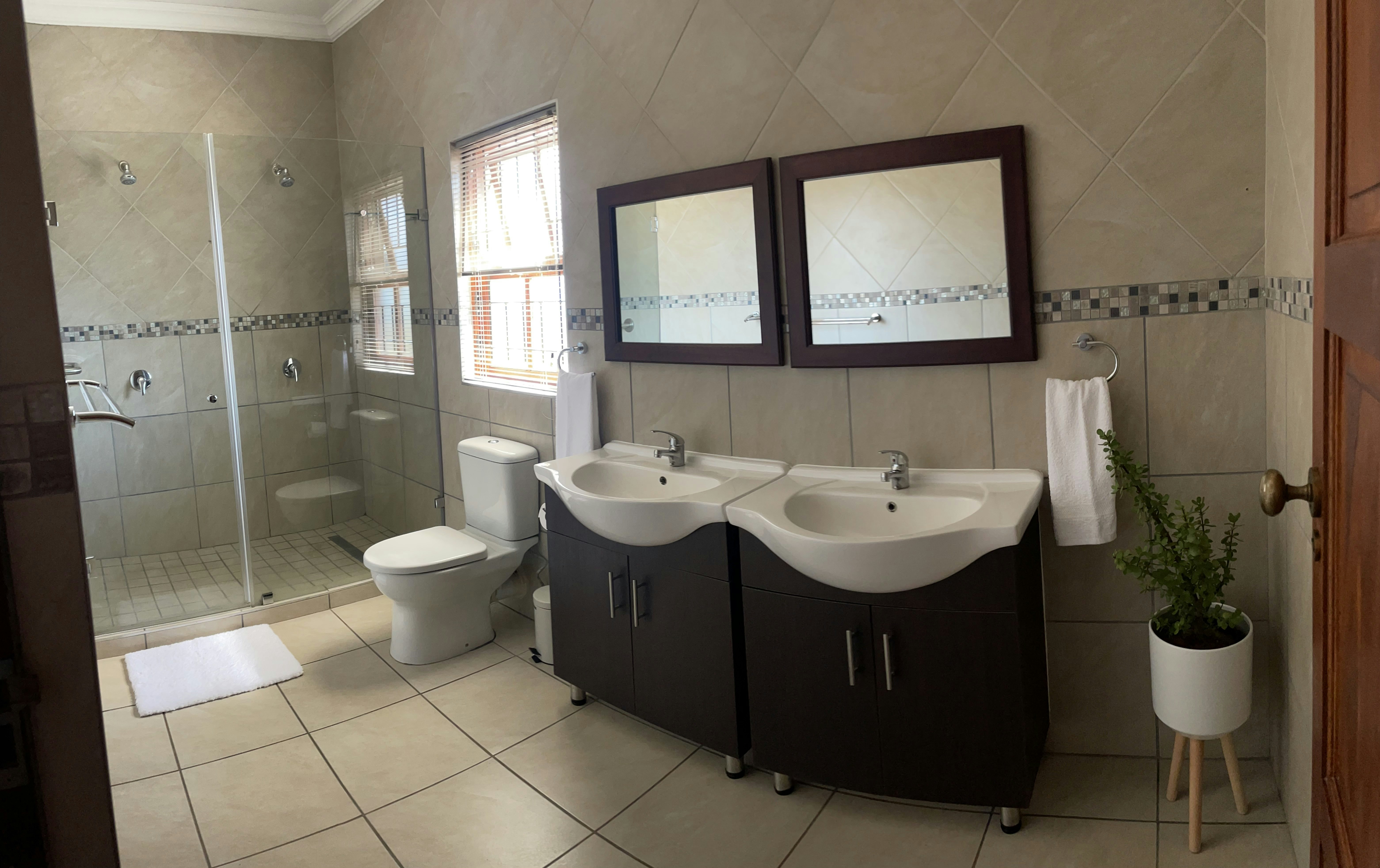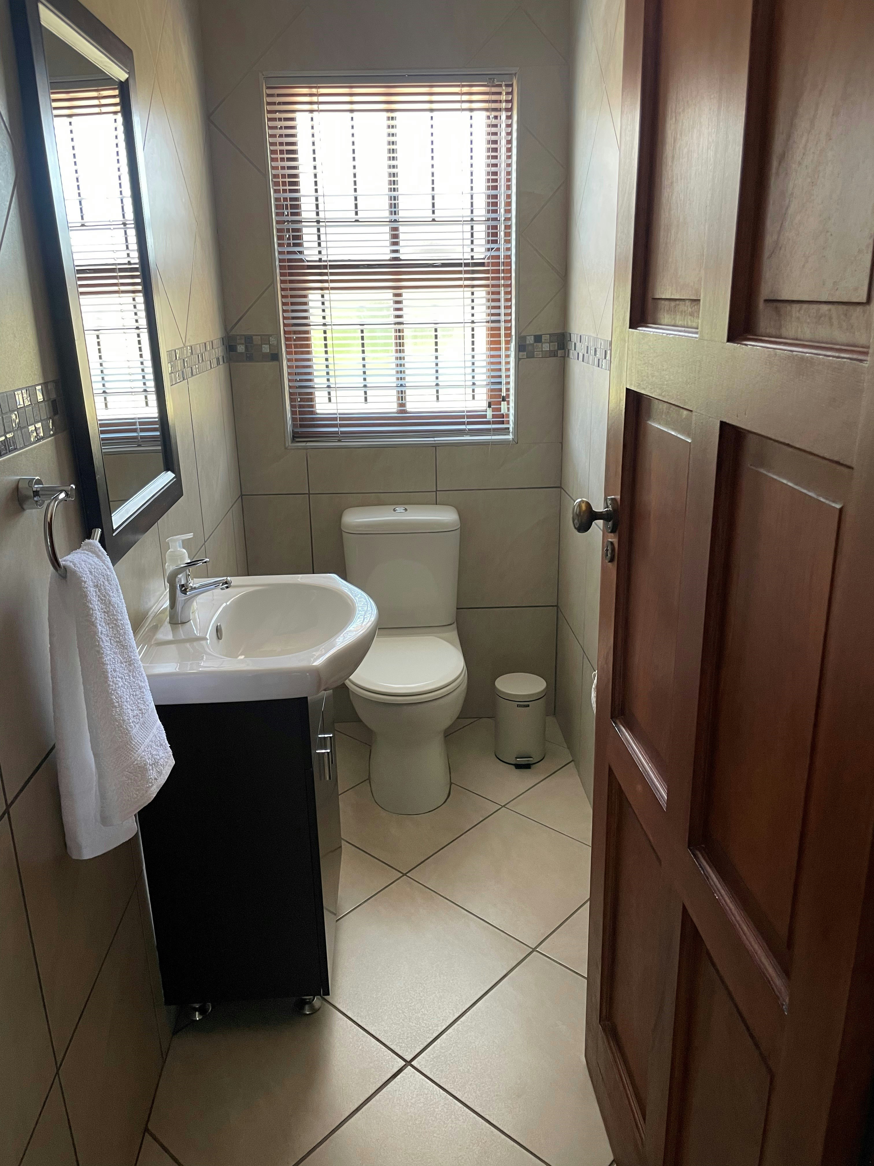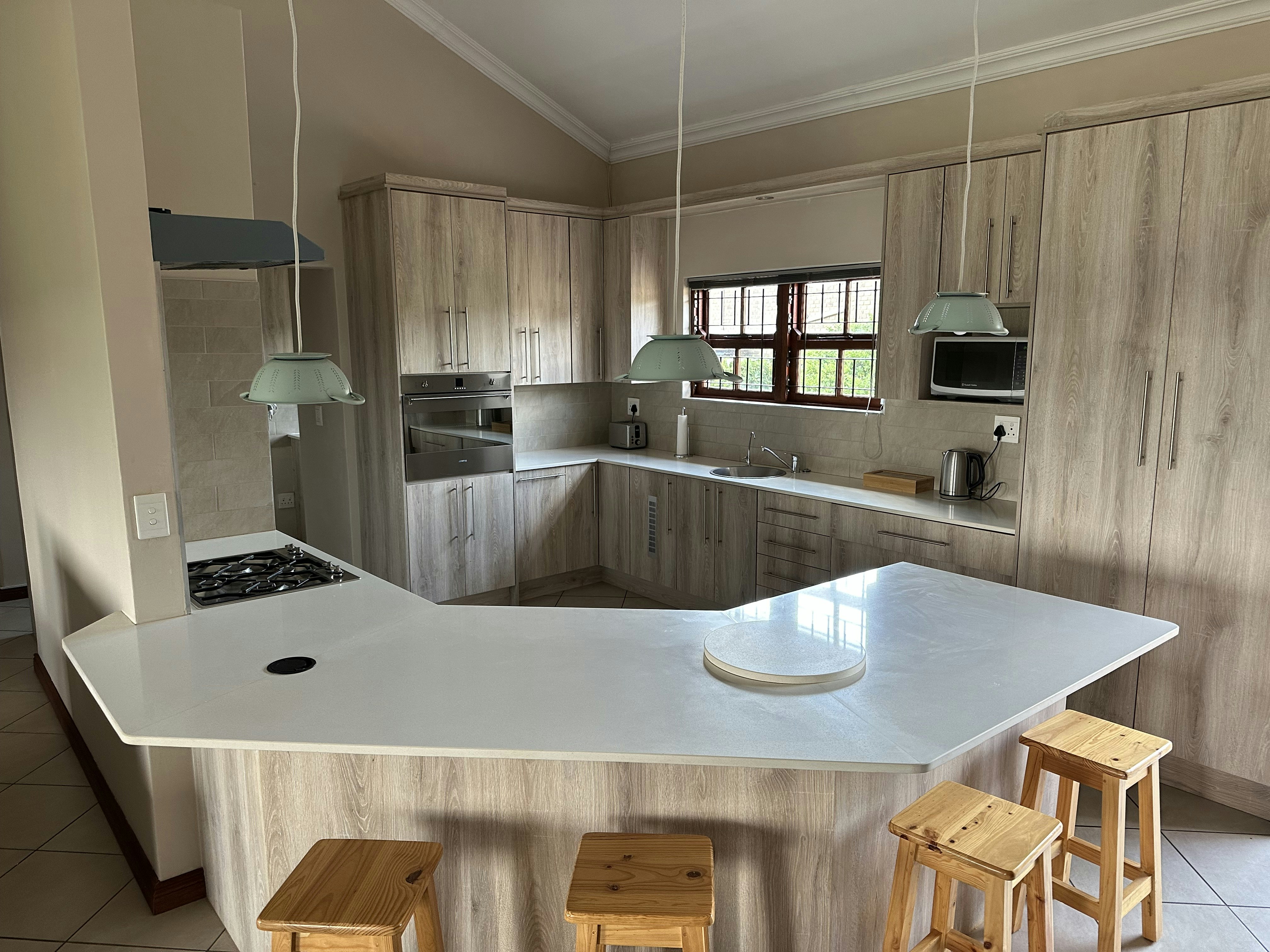 This lovely house can accommodate 8 guests and comprises 3 bedrooms and 2 bathrooms. The main bedroom is furnished with a double bed and features an en-suite bathroom fitted with a bath, shower, toilet and washbasin. The second and third bedrooms are each furnished with 2 single beds and make use of a shared bathroom fitted with a bath, shower, toilet and washbasin. A guest toilet fitted with a toilet and washbasin is available. Quality linen and bath towels are provided.