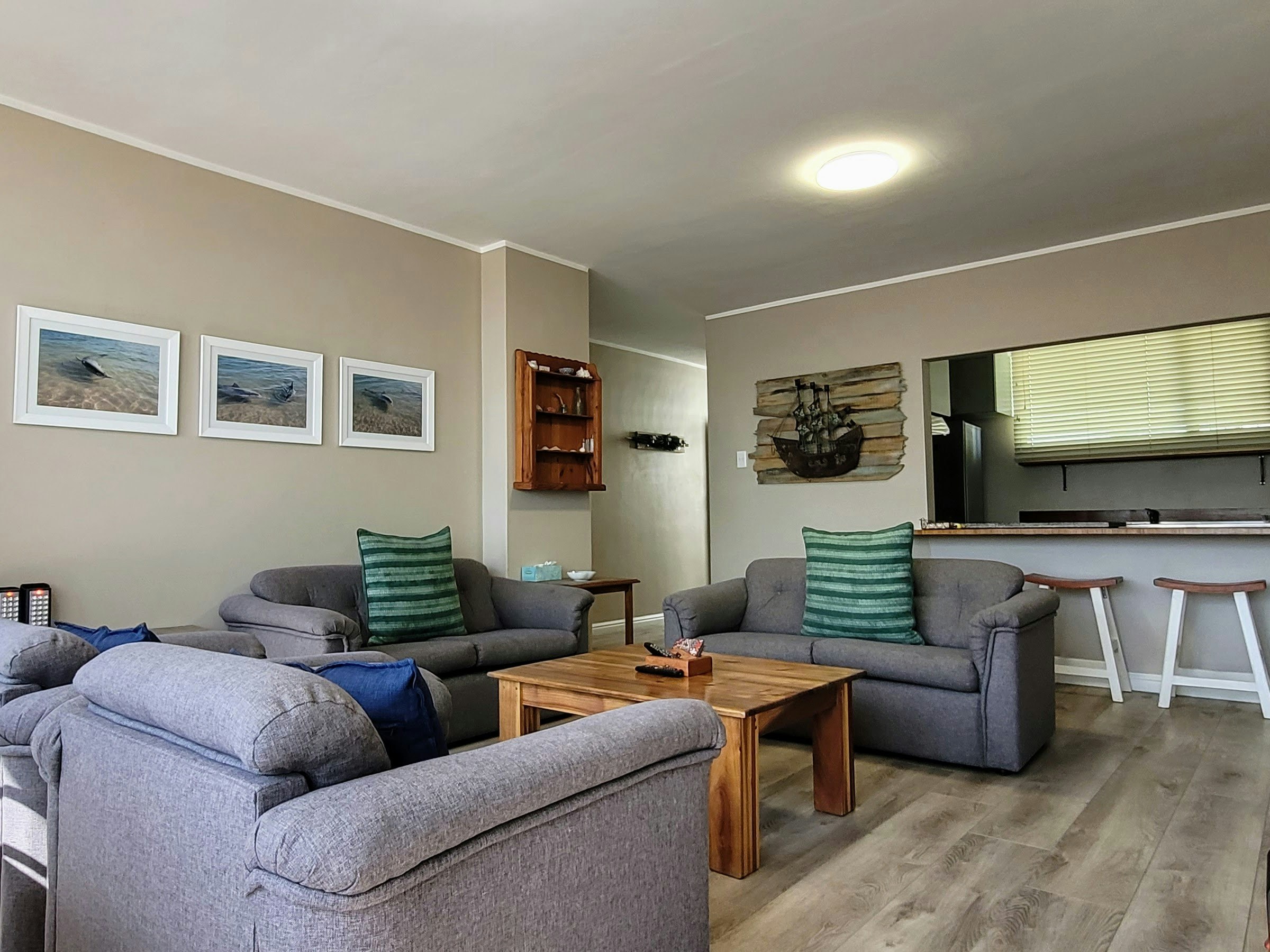 Guests can relax in the lounge which is equipped with a TV with selected DStv channels, Netflix, as well as Wi-Fi, and has a partial view of the beach.