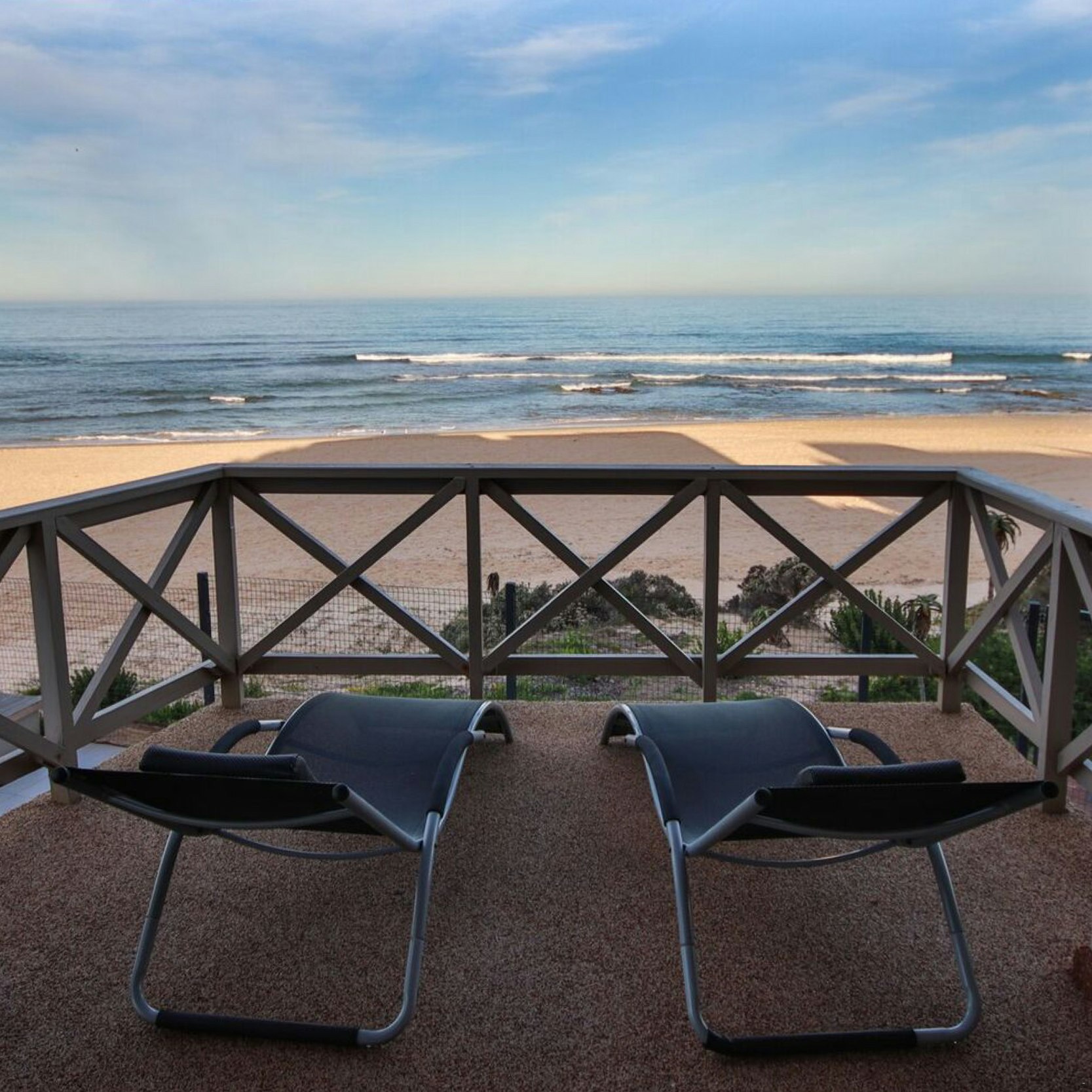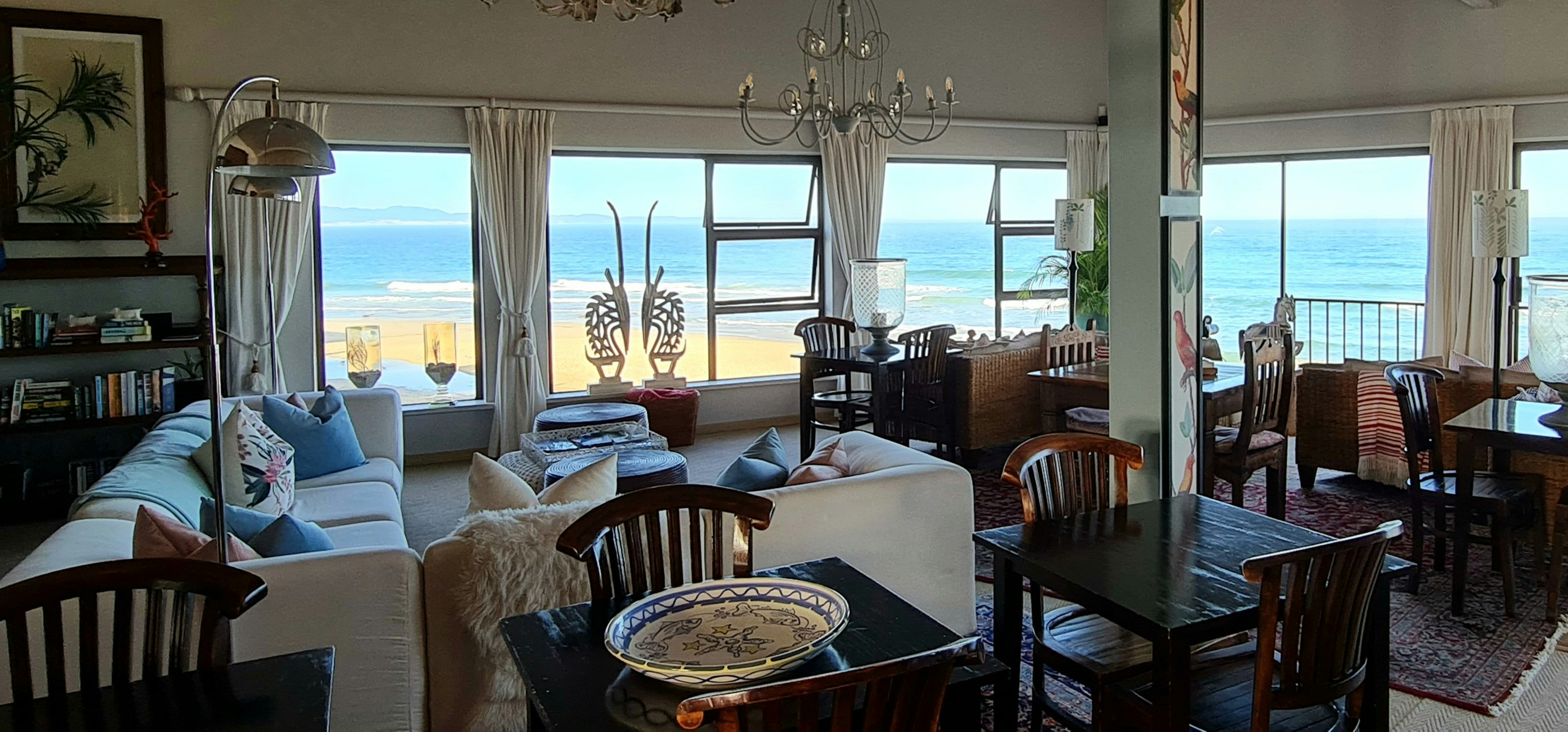 On the Beach Guest House and Suites offers accommodation with a peaceful, refined atmosphere on the beach in Jeffreys Bay. The classic design, elegant decor, harmonious atmosphere, and magnificent views from most of the rooms, as well as the upstairs lounge, bar, and outdoor patios, make it the ideal place for holidaymakers and business travellers to relax. Guests can also watch the dolphins and surfers in the waves.