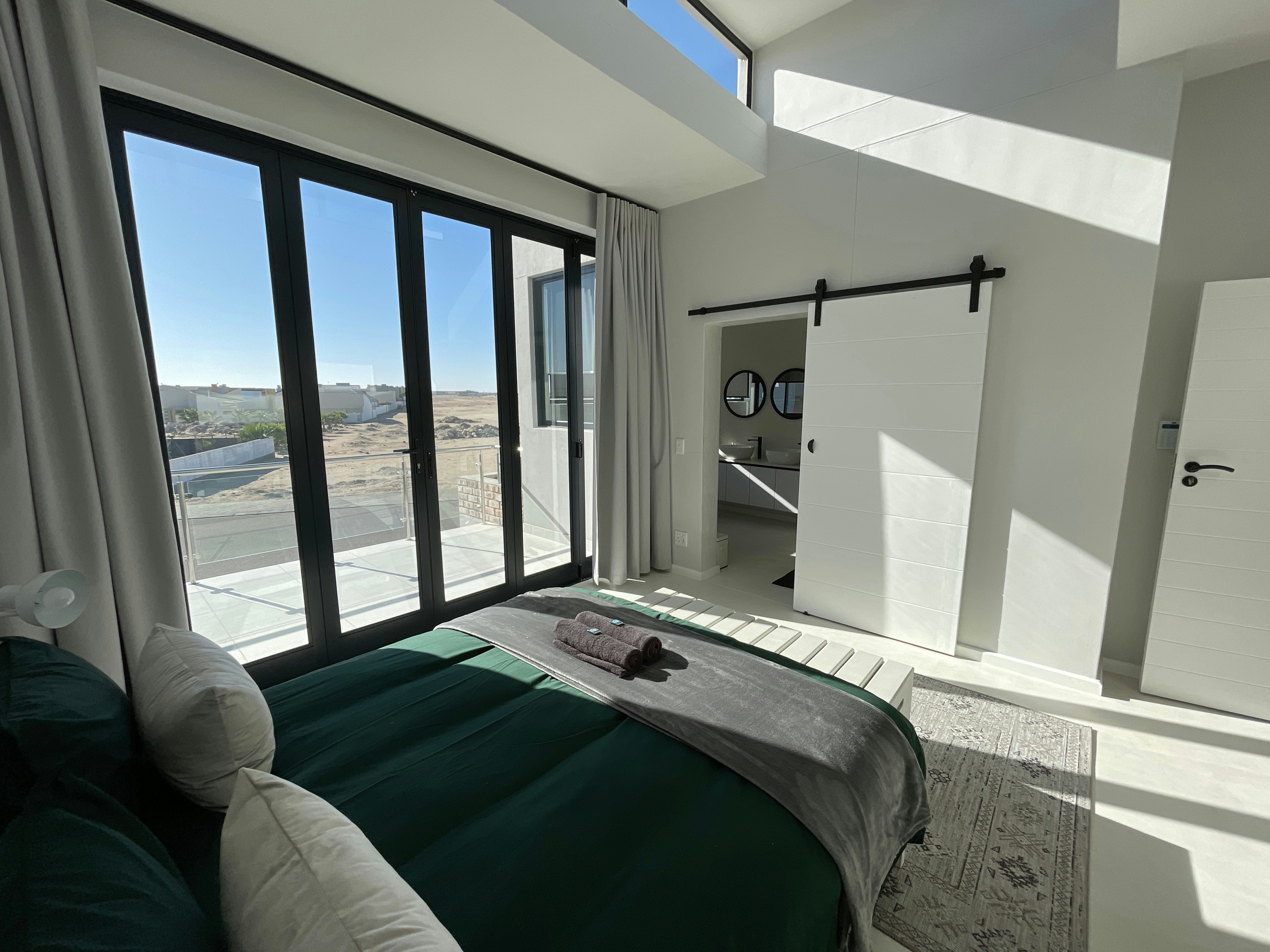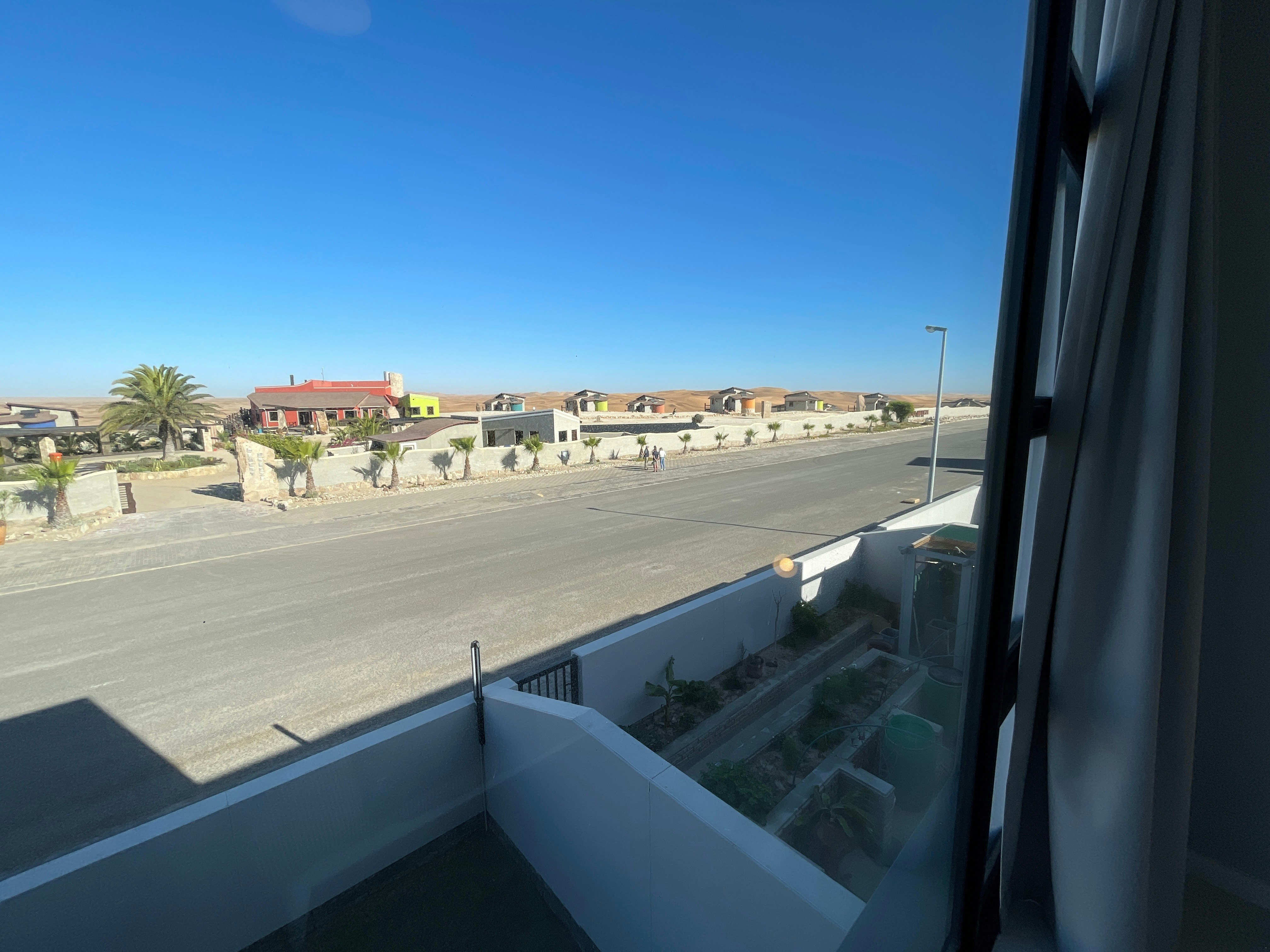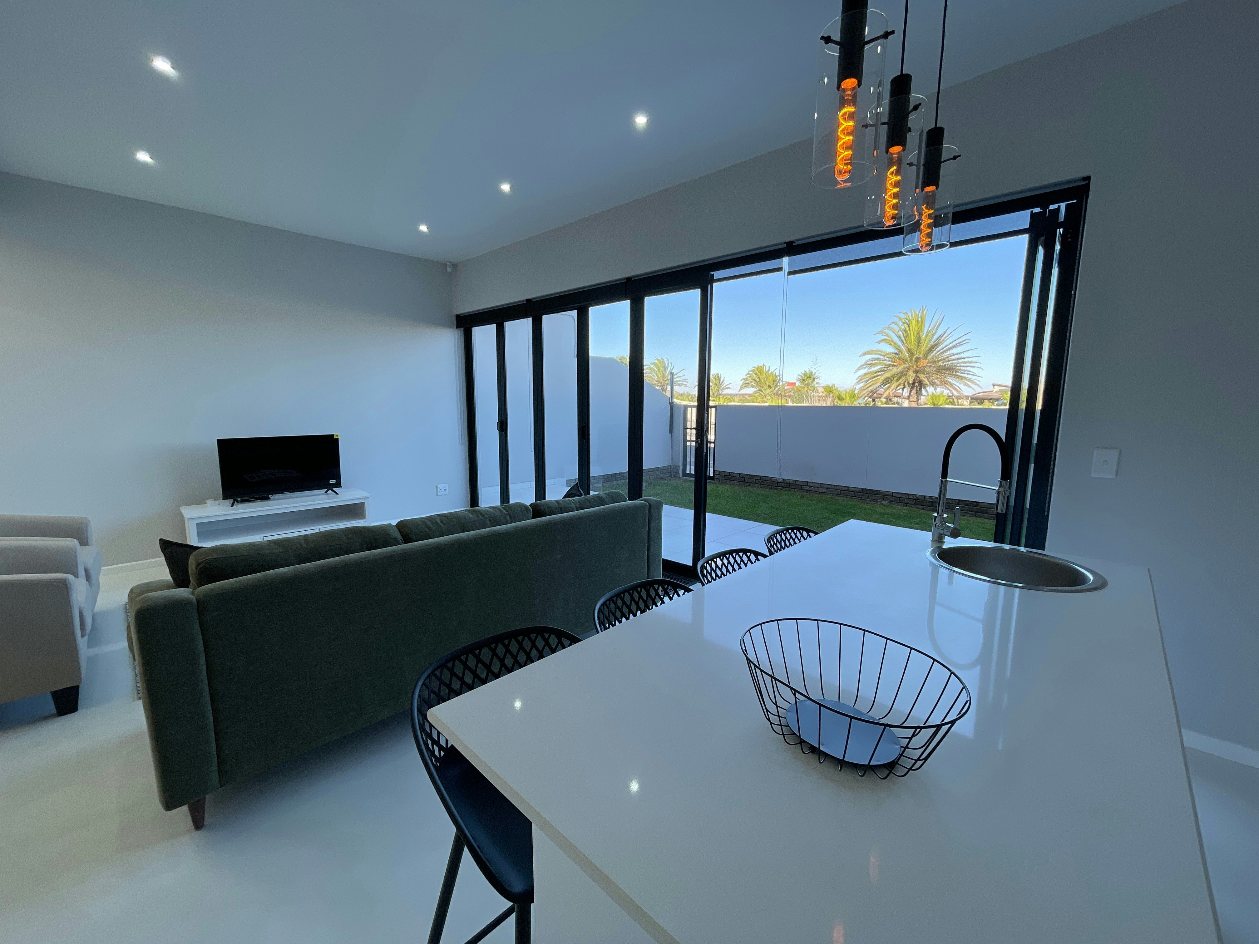 The home also features an outdoor garden area with an outdoor dining space ideal for al fresco meals. What sets this unit apart is its amazing view of the Namib Dunes, which provides a breathtaking backdrop for your stay. Secure parking, braai facilities, and complimentary Wi-Fi are available.