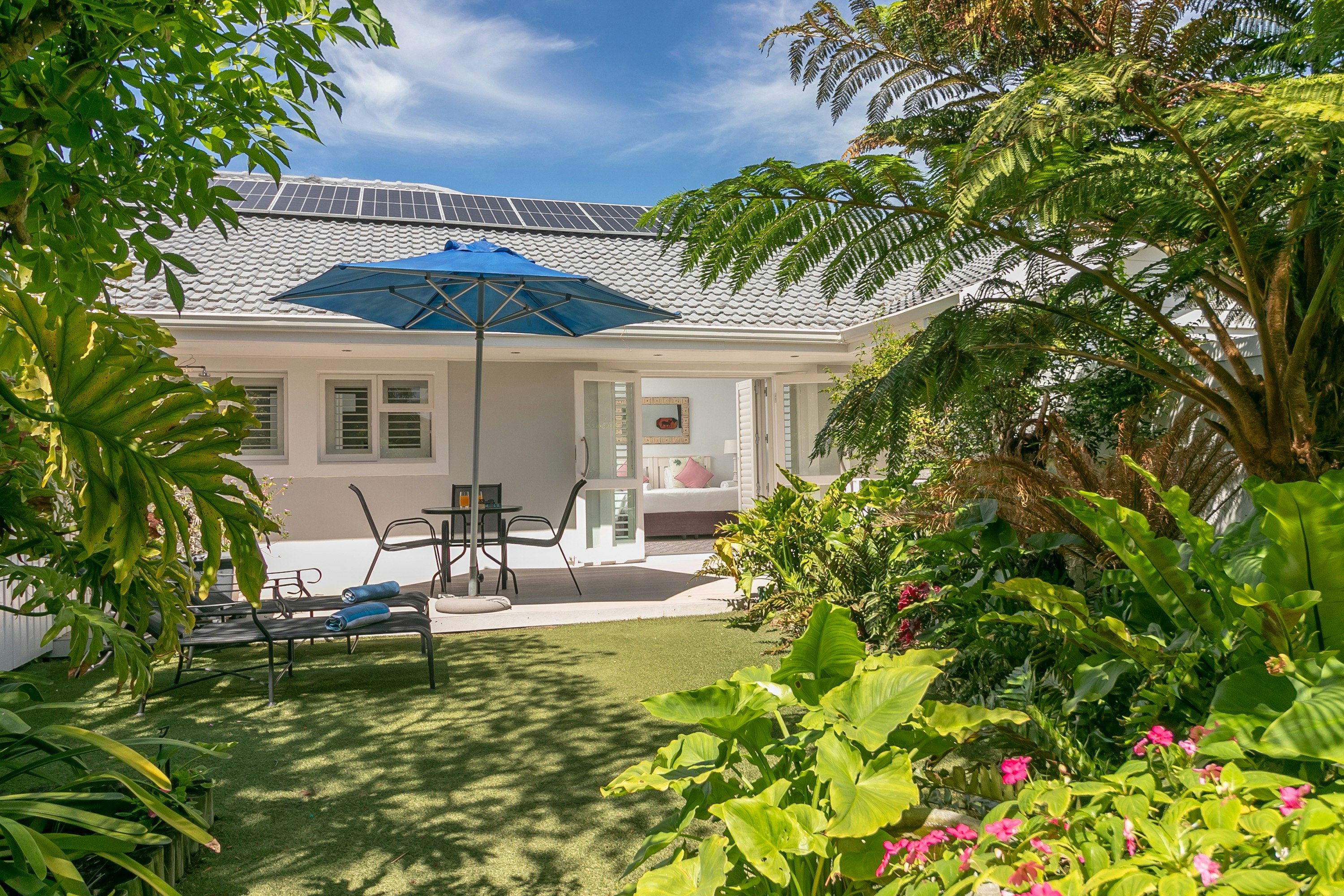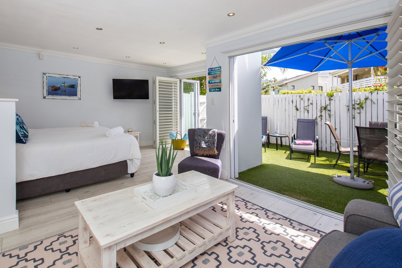 The bed and breakfast offers accommodation in 6 luxury suites, each with their own private garden and outside shower. The Clyde Suite has a balcony & no garden. Each tastefully decorated suite is equipped with tea- and coffee-making facilities, air-conditioning with hot and cold settings, an extra-length king-size bed that can be converted into single beds, a work area with a USB port, Wi-Fi, linen, a bar fridge, a digital safe, beach towels and a beach basket, a beach umbrella, cupboards for clothing and baggage storage, a dressing table with a mirror and hairdryer, and a TV with selected DSTV channels & Netflix . Each suite has a bathroom with a bath, shower, double basin and heated towel rail, an outdoor shower with hot and cold water, security shutters on all windows and doors, and pull-down blinds over the bedroom doors and windows.
