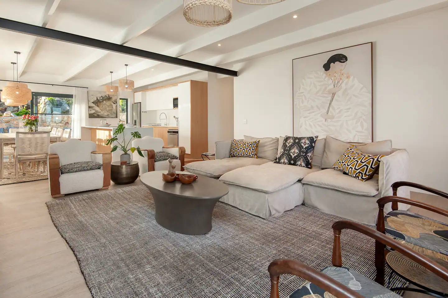 Hierdie eiendom bied slaapplek vir tot 4 gaste en bestaan uit 2 en suite-slaapkamers en 'n buitestort. Elke slaapkamer is gemaklik gemeubileer met 'n koningingrootte-bed. Die hoof en suite-badkamer is toegerus met beide 'n bad en stort, terwyl die tweede badkamer slegs 'n stort het. Linne en badhanddoeke word voorsien.