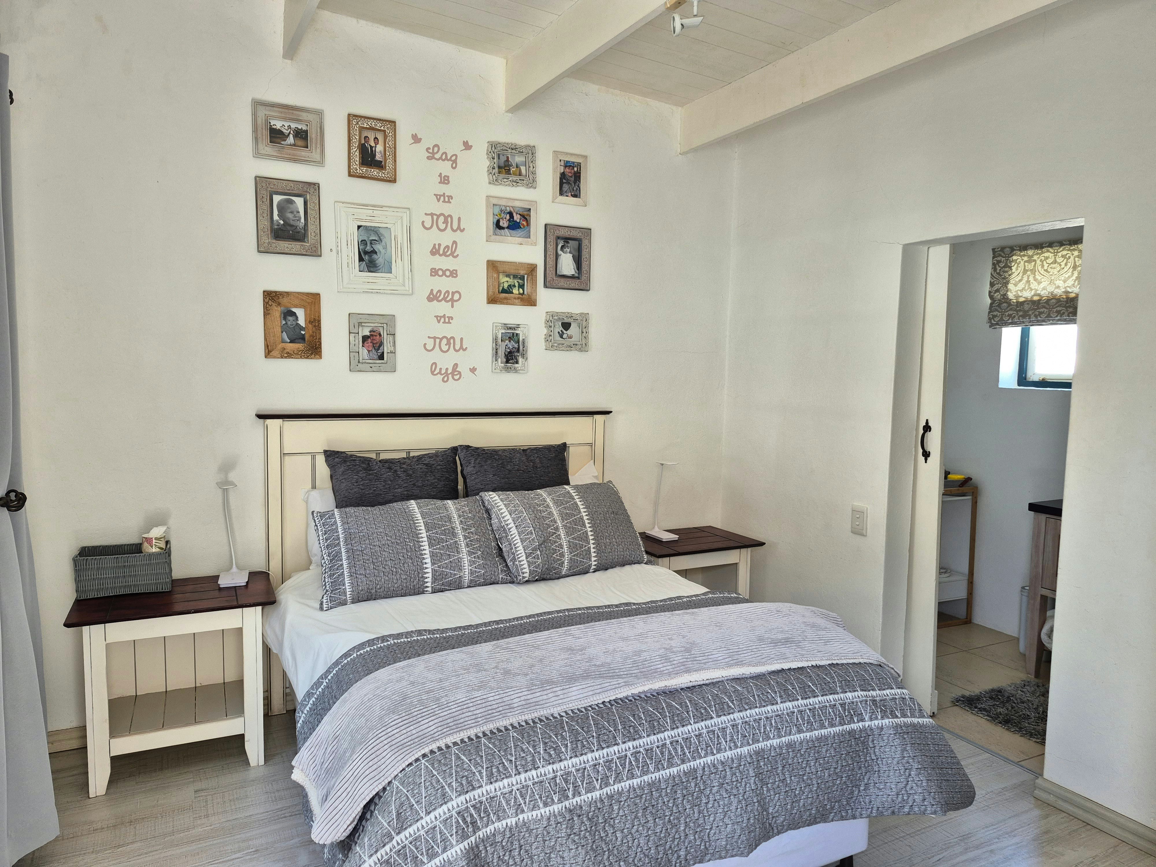 The home features a well-equipped kitchen that includes a gas stove, oven, microwave, kettle, cutlery, crockery, fridge-freezer, and dishwasher. The lounge and dining area offer comfortable seating for guests to dine and relax and also boasts a fireplace. For entertainment, a smart TV with DStv Stream, Netflix, Amazon Prime Video, and free uncapped Wi-Fi is available.