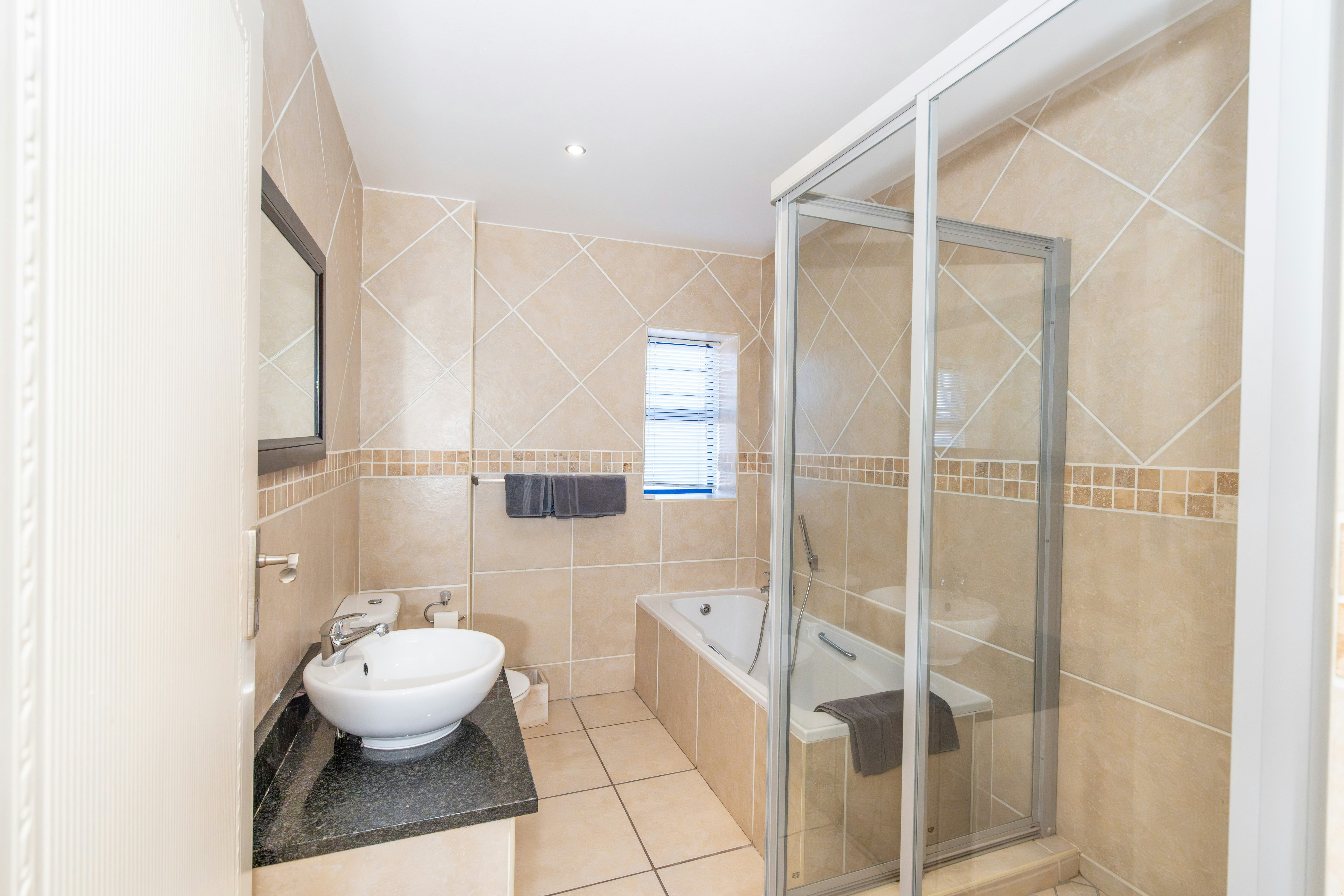 The villa opens onto a garden and a patio with outdoor seating and an outdoor built-in braai. Complimentary Wi-Fi and secure parking are available to guests during their stay.