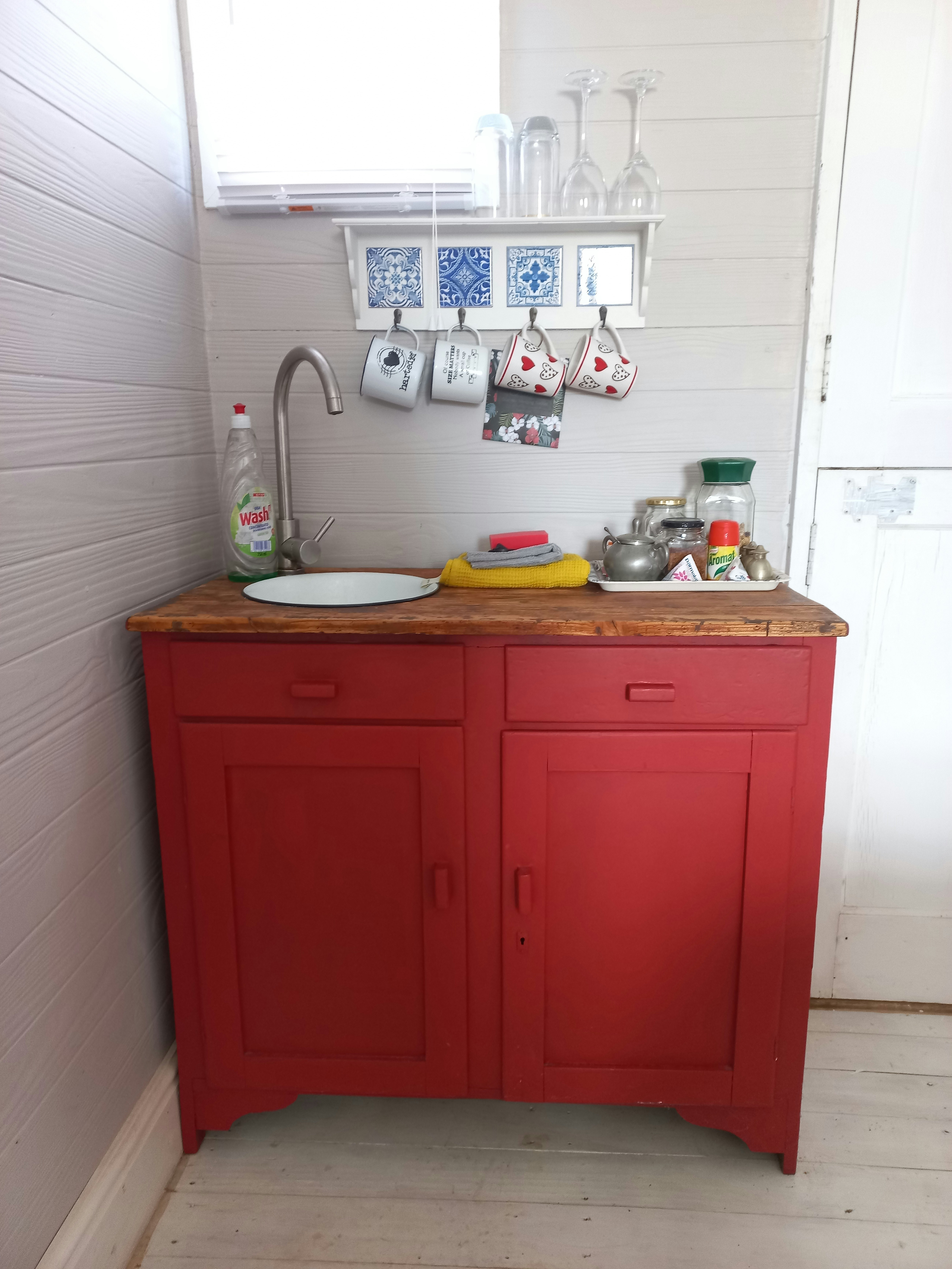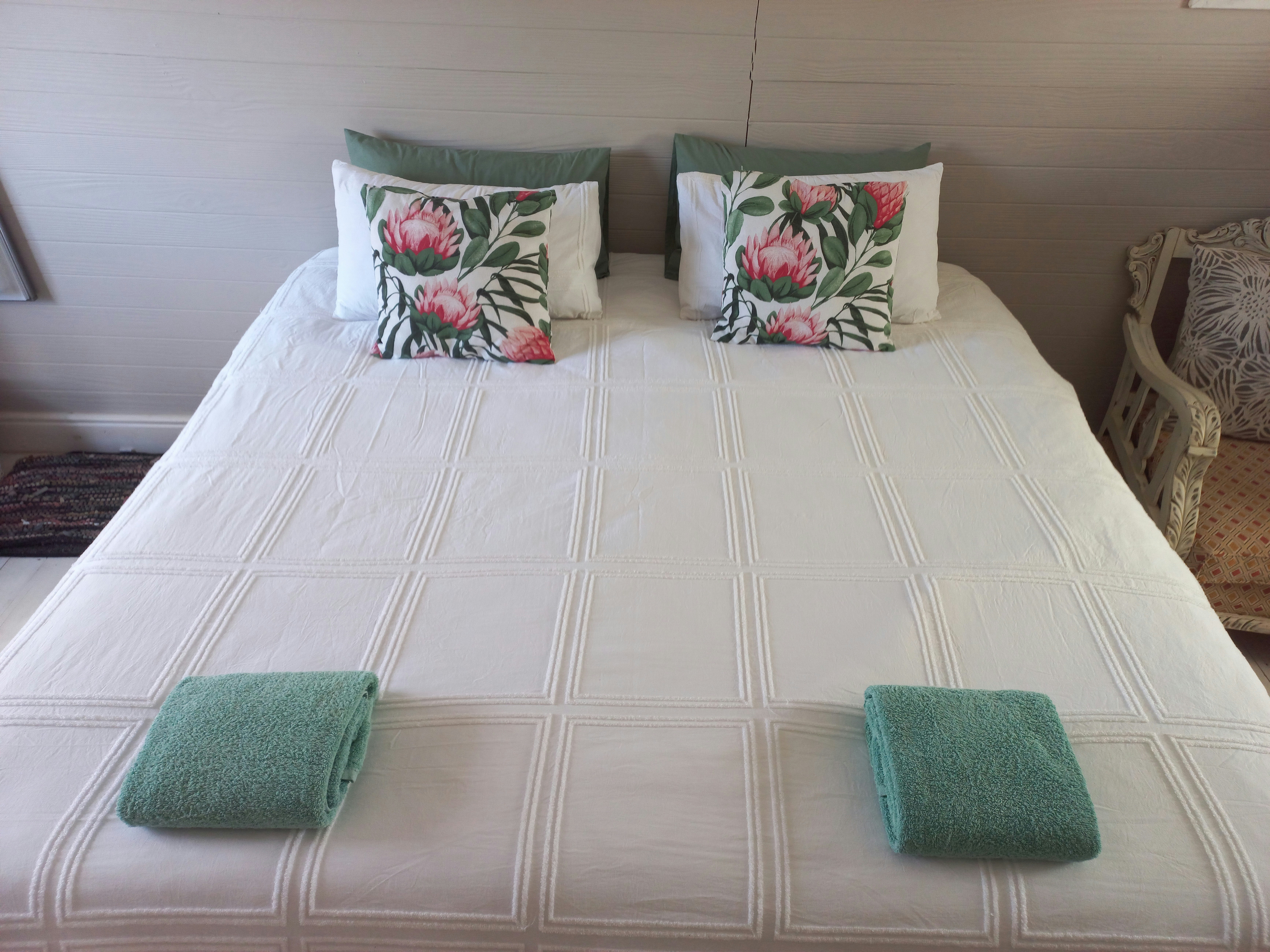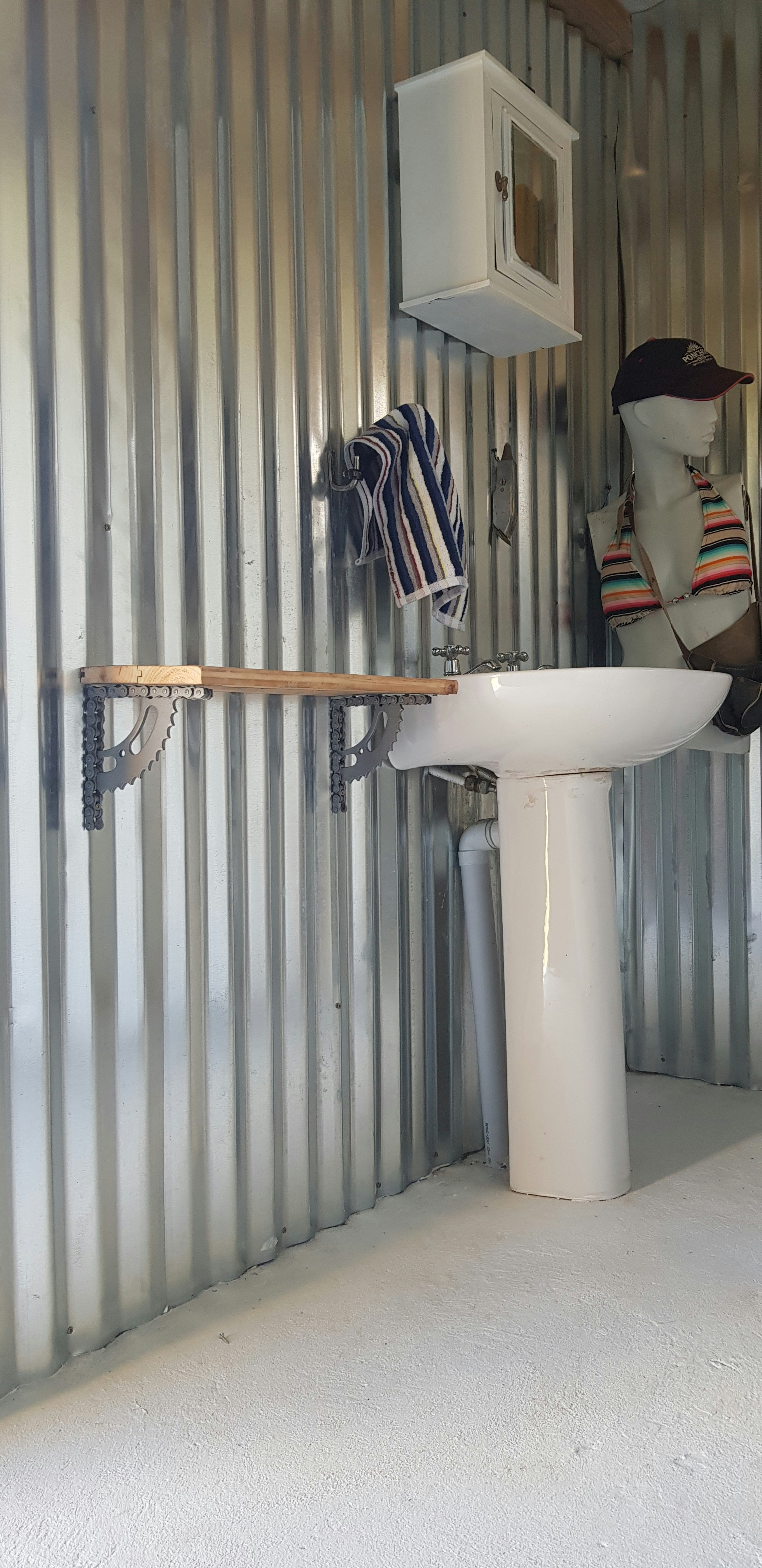The campsite bedroom contains 2 single beds, and shares the use of the ablution and kitchen facilities with the campsite. The kitchen is equipped with a fridge as well as a stove, and the bathroom is fitted with a shower and a toilet.