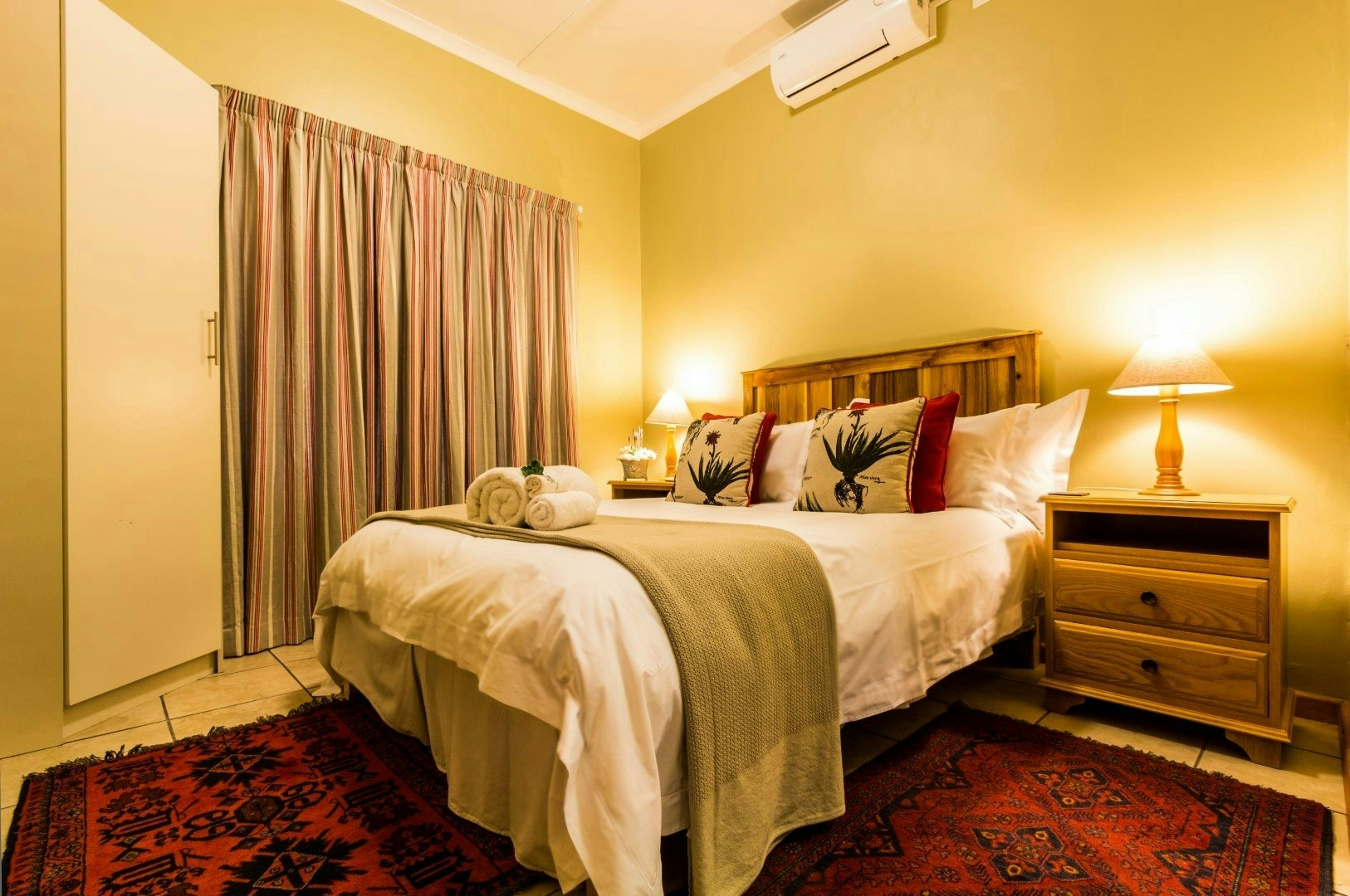 Dié kothuis bied slaapplek aan 4 volwassenes en 1 kind en beskik oor 3 slaapkamers en 2 badkamers. Die eerste slaapkamer het 'n koningingrootte-bed en 'n en suite-badkamer met 'n bad en stort. Die tweede slaapkamer het 'n dubbelbed, terwyl die derde slaapkamer 'n enkelbed vir kinders het. Gaste in hierdie slaapkamers deel die tweede badkamer met 'n instapstort. Linne en badhanddoeke word voorsien.