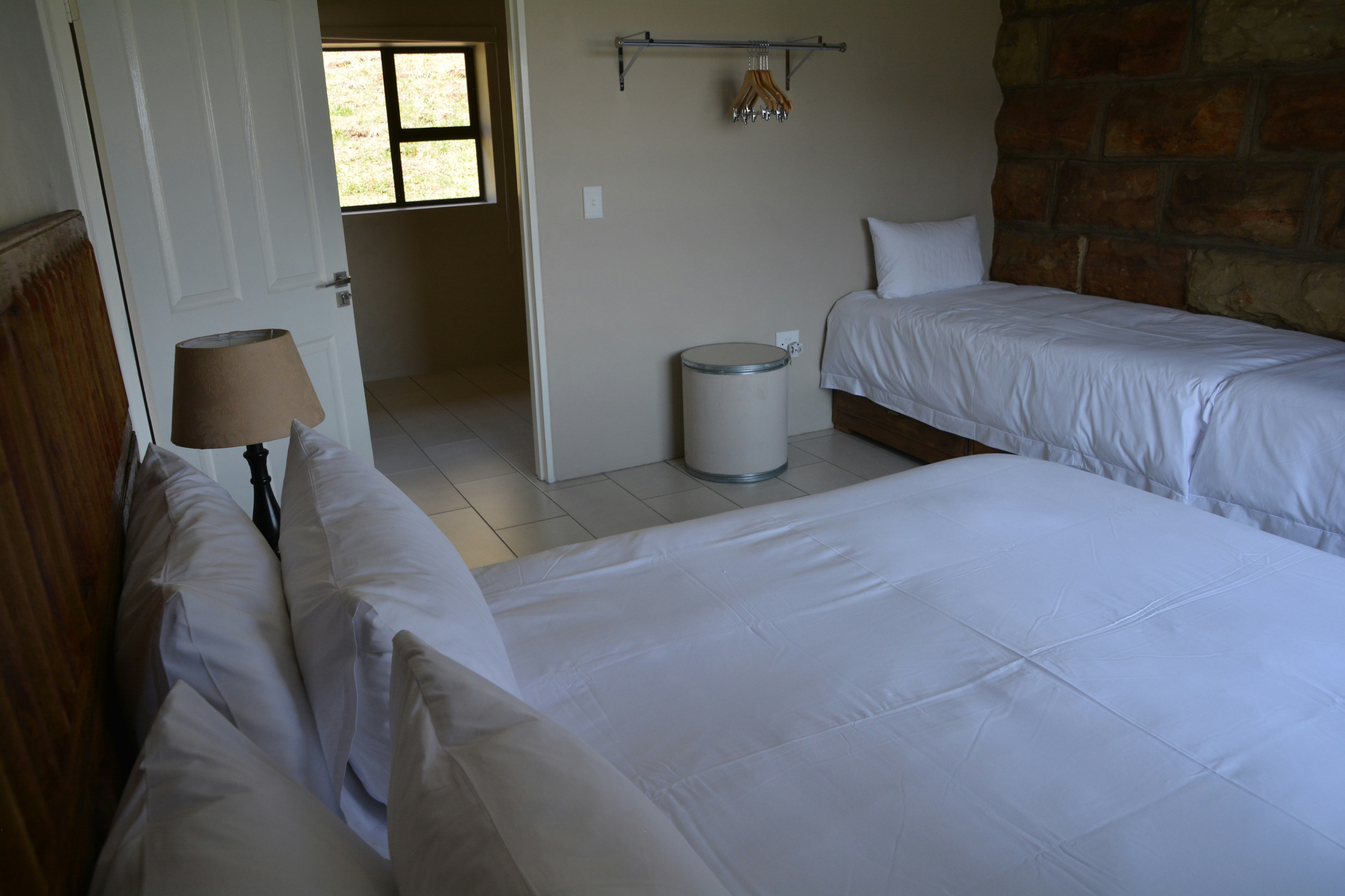 Accommodation is offered in a variety of chalets and rooms which can accommodate between 2 and 6 guests, including children. Each unit has an en-suite bathroom and Wi-Fi access. Additionally, the main house rooms have a TV with DStv. Some of the rooms and chalets have a 2-plate stove, a microwave, fridge-freezer, and tea- and coffee-making facilities, whereash the bigger chalets, the honeymoon suite and the luxury unit have fully equipped kitchens. The bridal suite has a bar fridge and tea- and coffee-making facilities.