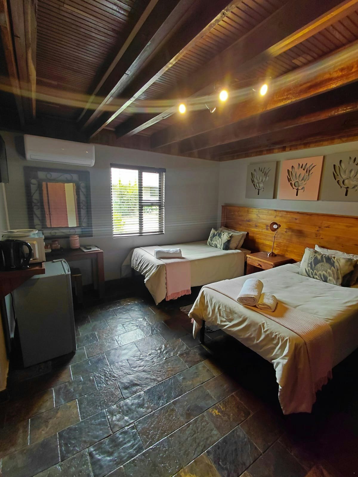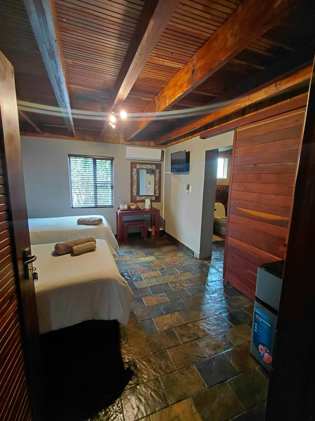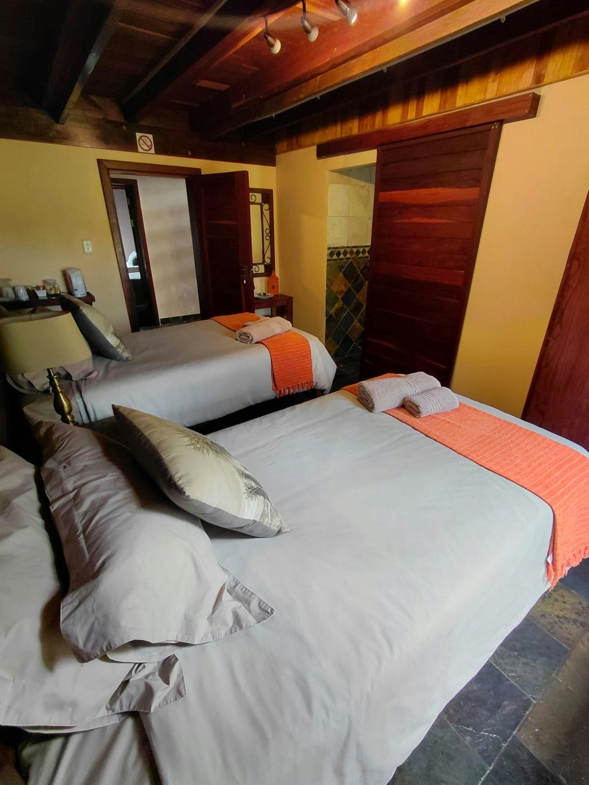 Each room includes air conditioning, a fan, and tea- and coffee-making facilities. Guests have access to the lodge's communal facilities, which include a braai area, a bar, a dining area, and a swimming pool. Complimentary Wi-Fi and secure parking are available to guests during their stay.