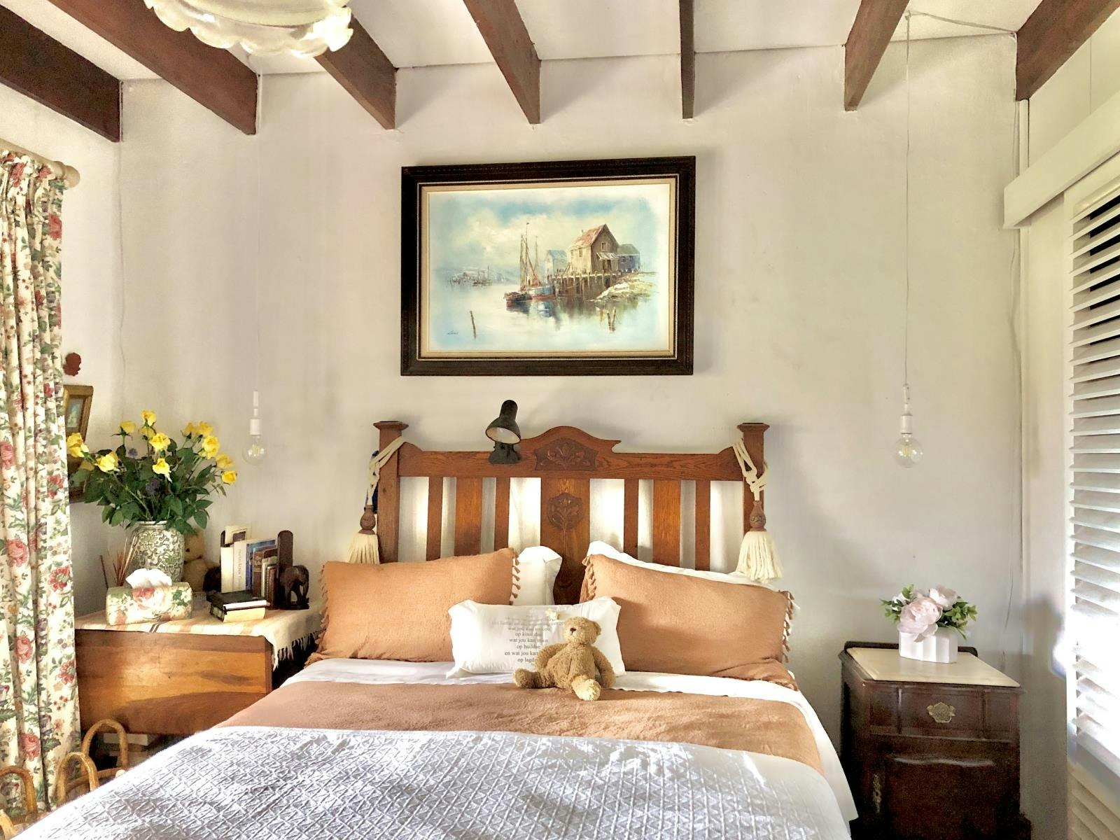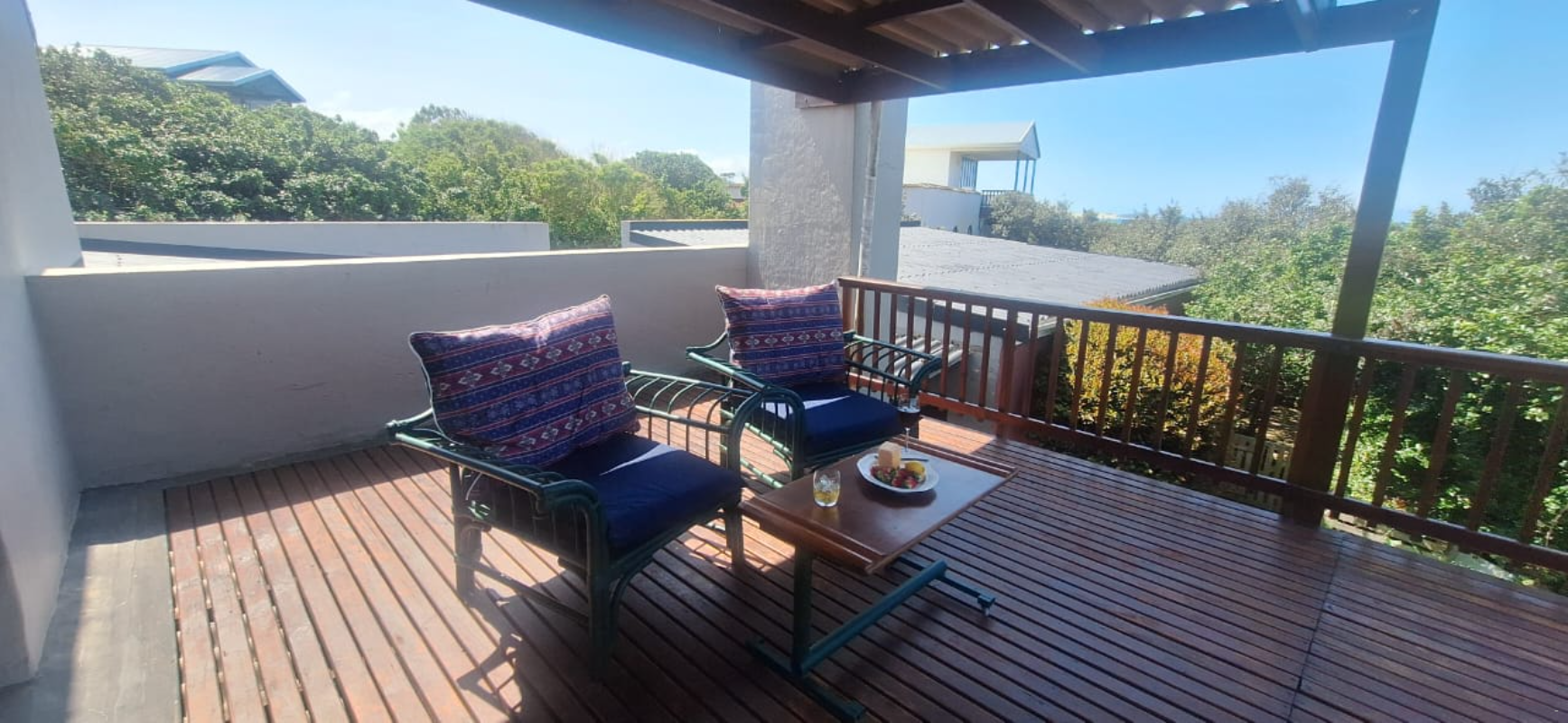 Die dubbelverdiepinghuis bied slaapplek aan 4 gaste en beskik oor 2 slaapkamers, 2 badkamers en 'n gastetoilet. Elke slaapkamer het 'n koninggrootte-bed en 'n instapkas en lei na 'n stoep met 'n pragtige see-uitsig. Daar is nog 'n stoep langs die dek wat ook 'n asemrowende uitsig bied. Die eerste badkamer het 'n bad en 'n stort en die tweede badkamer het 'n bad.