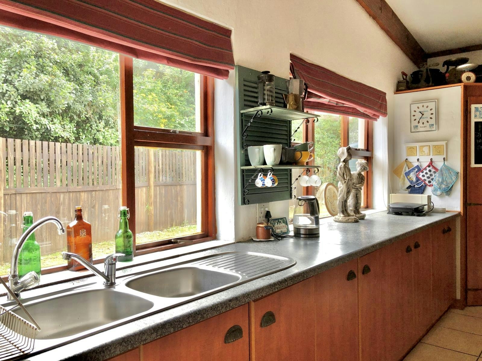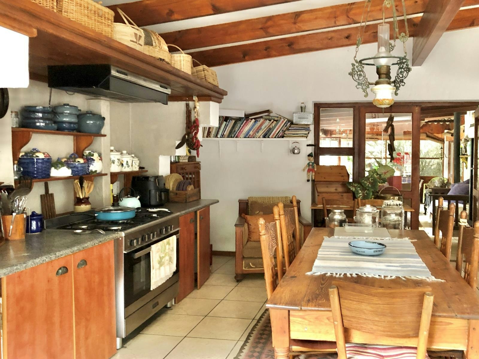 Die huis beskik oor 'n kombuis wat met 'n gasstoof, oond, mikrogolf, lugbraaier, ketel, broodrooster, eetgerei, breekware en 'n yskas-vrieskas toegerus is. Die sitarea en eetarea het genoeg sitplek vir gaste om te eet en te ontspan.
