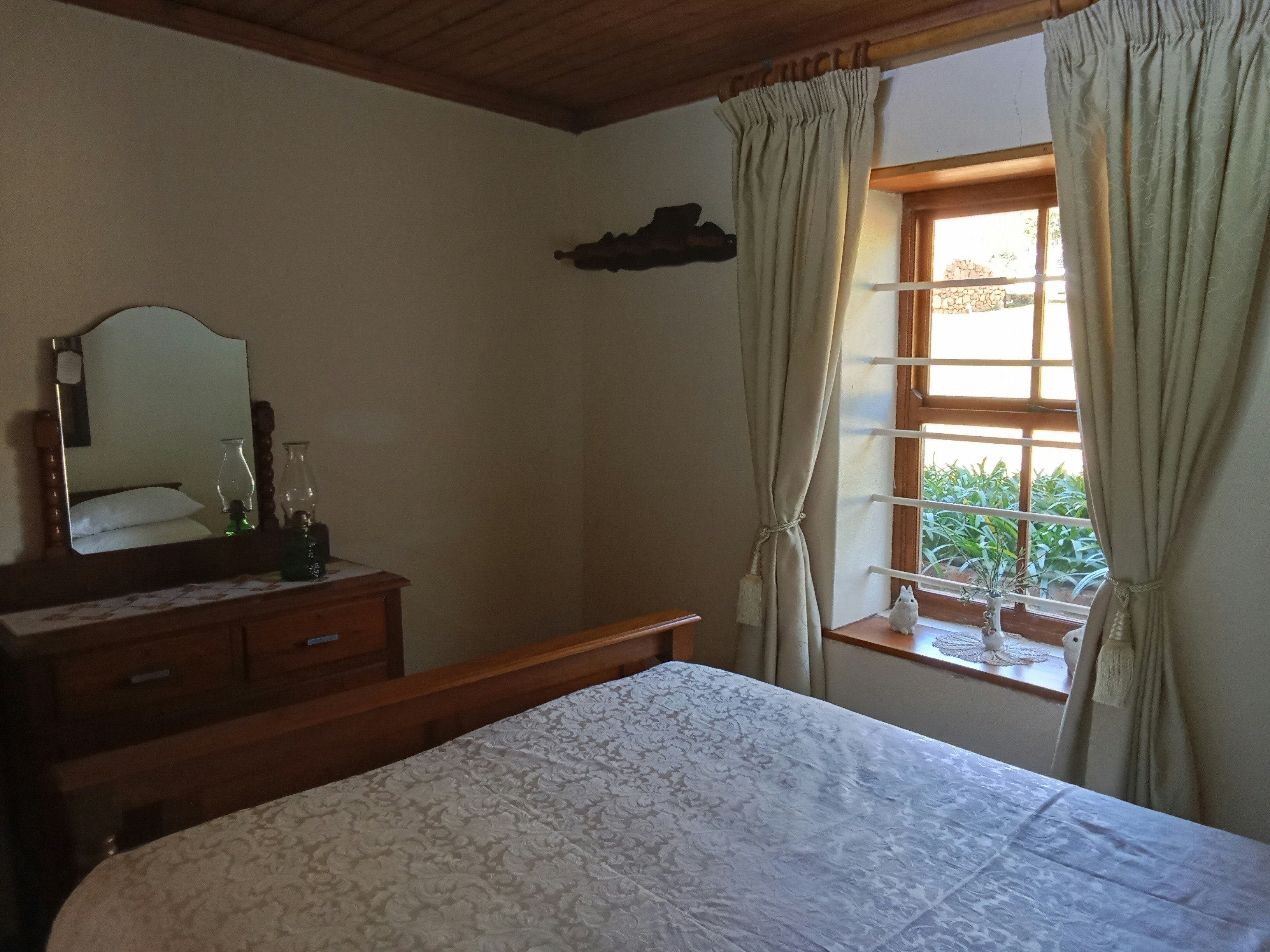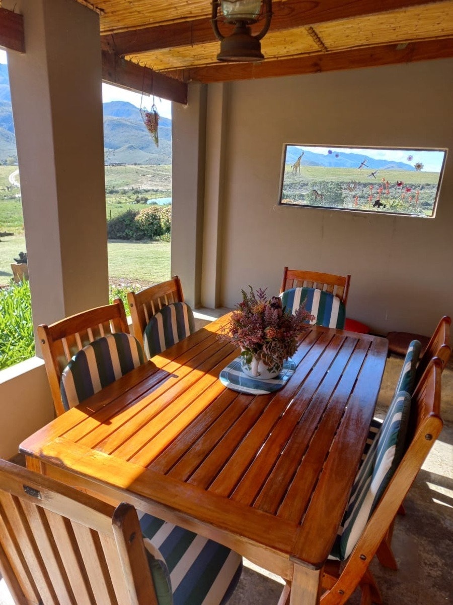 The cottage is fully fenced, and small pets are allowed with prior arrangements. The house is powered by solar energy, cooking is done on gas, and a braai is available on the patio. The charming patio, overlooking the Langeberg Mountains, offers stunning views. Guests can also enjoy beautiful walks and hikes in the Outeniqua and Langeberg Mountains.