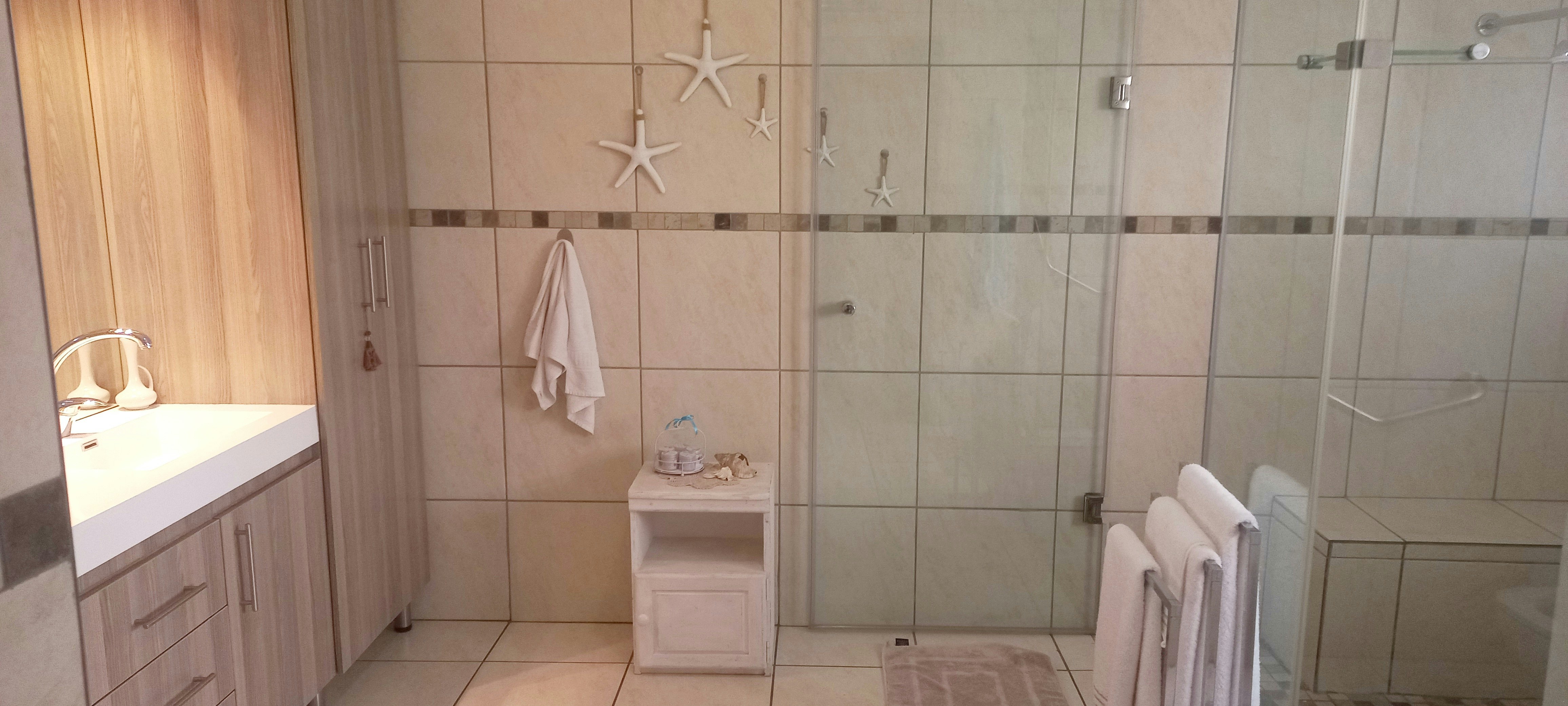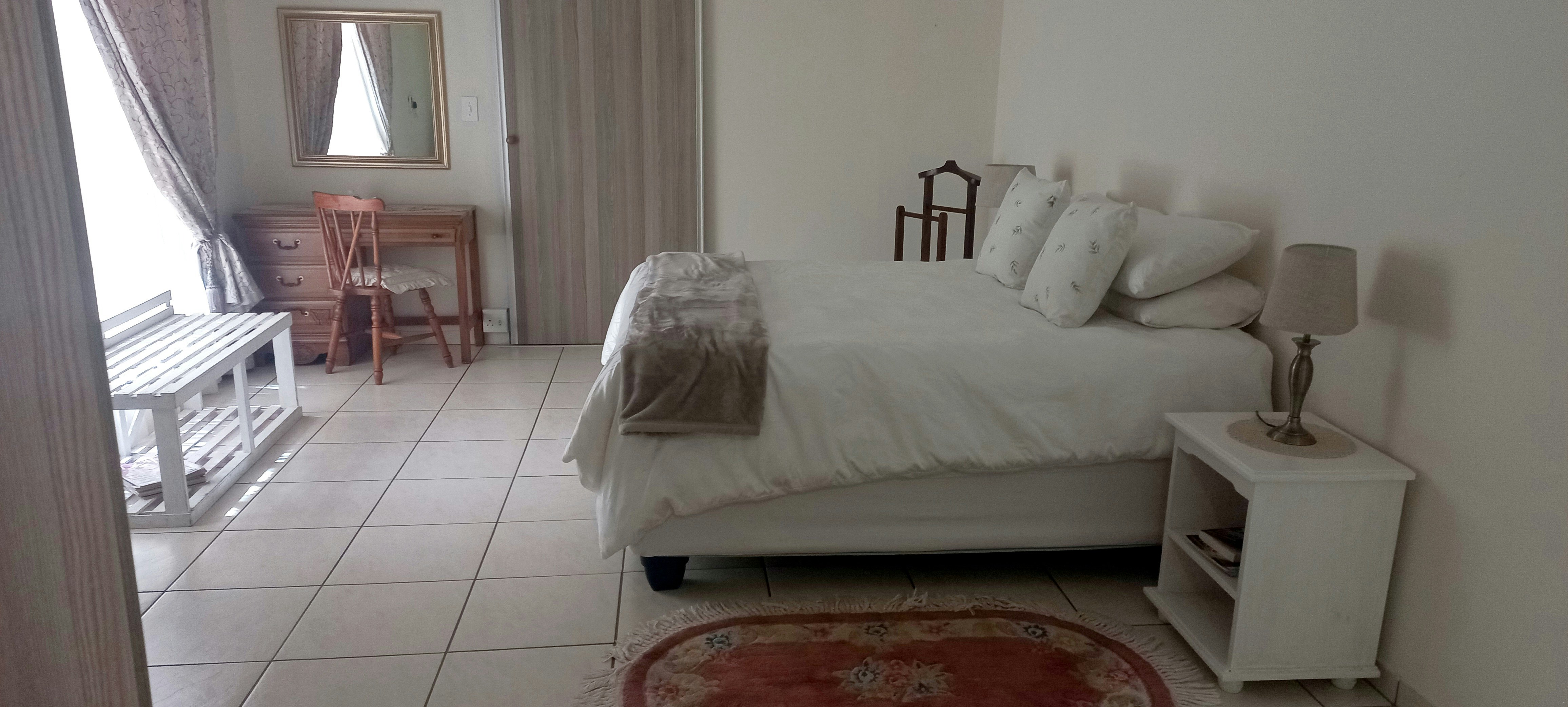 The apartment opens onto a covered patio that leads to the shared swimming pool and separate braai facilities in the garden. Guests are also afforded secure parking under a shade cloth on the premises.