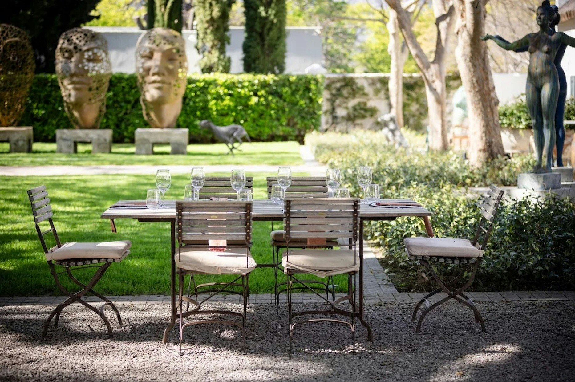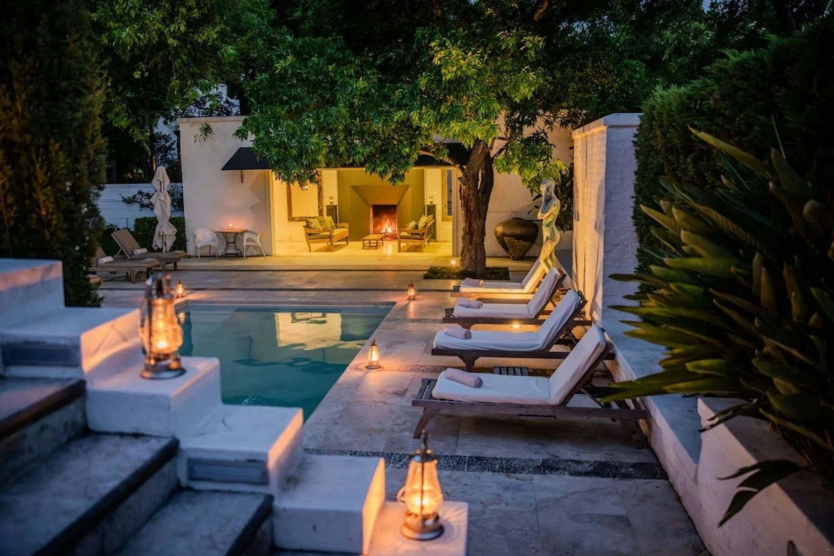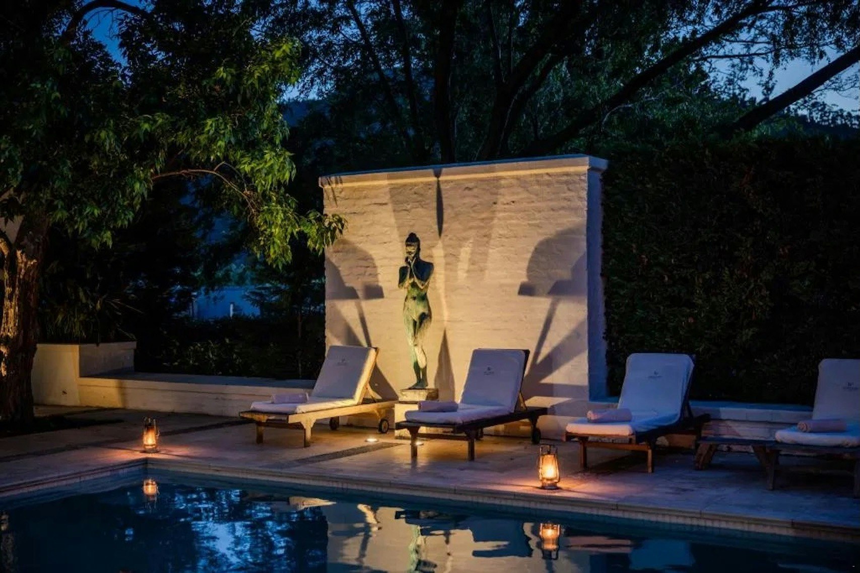 The lovely garden boasts a well-appointed loggia and entertainment area, adjacent to the secluded swimming pool overlooking the vineyards of a 325-year-old heritage wine estate. The entire guest house can be reserved exclusively for one party or shared with others on a multi-booking basis.