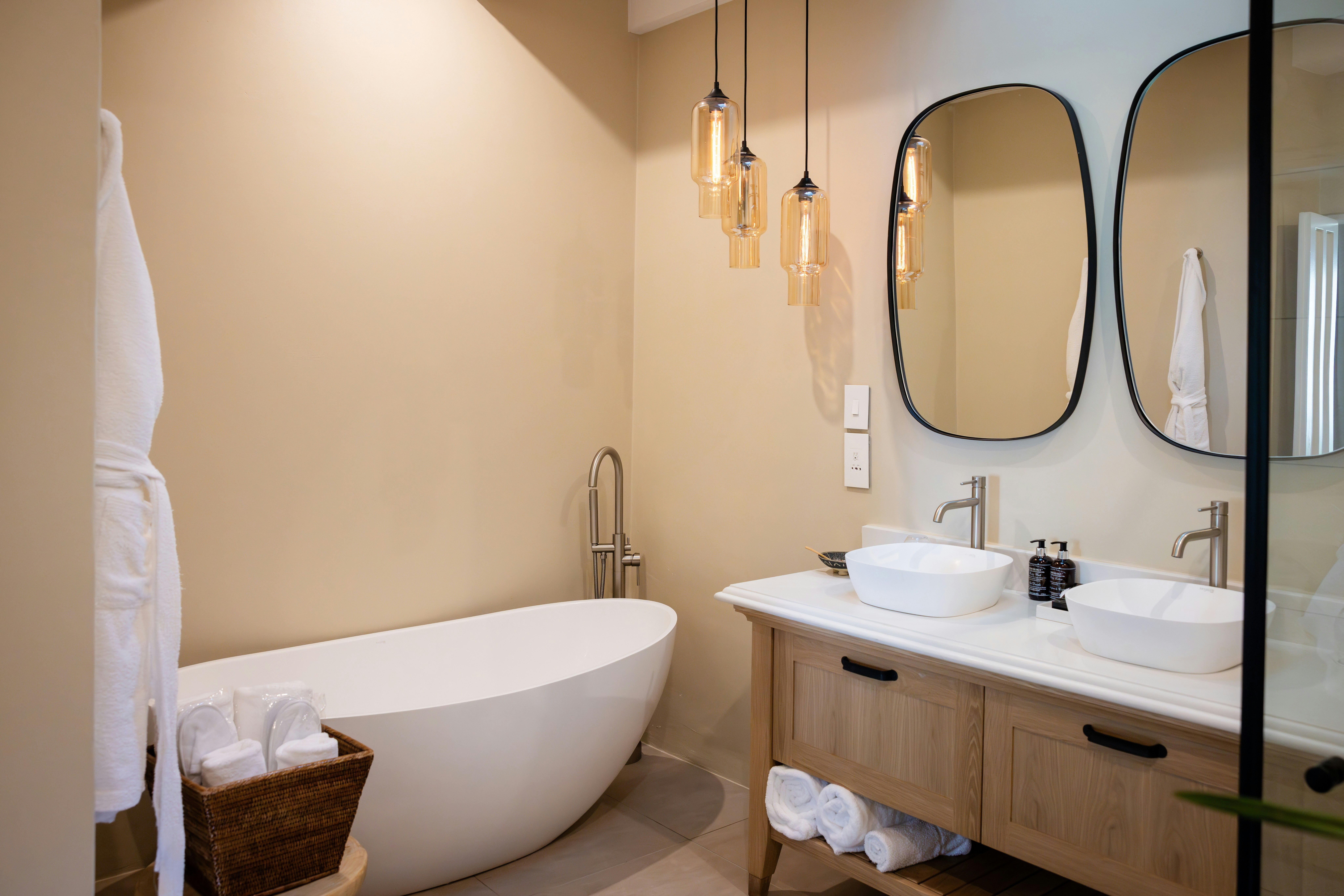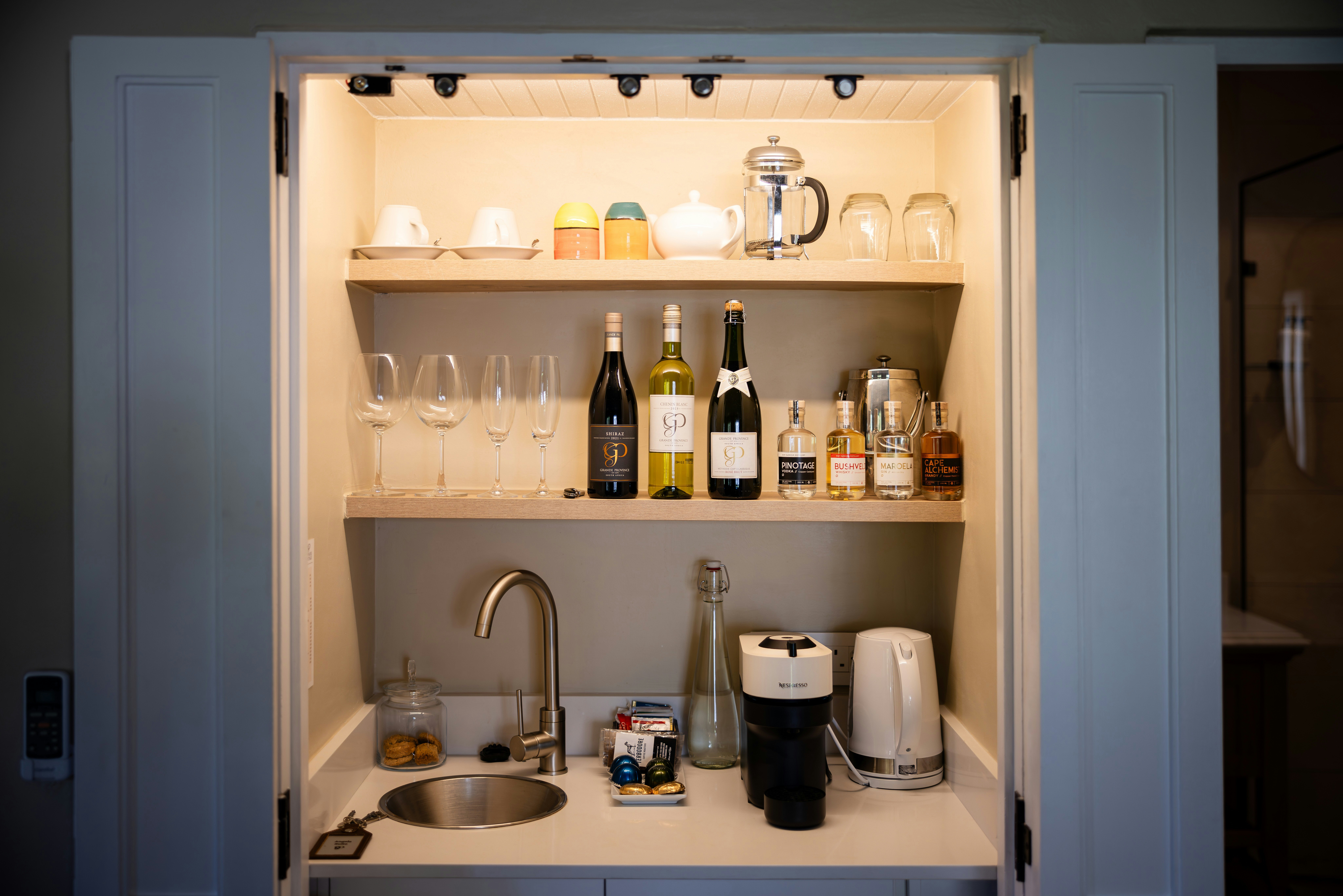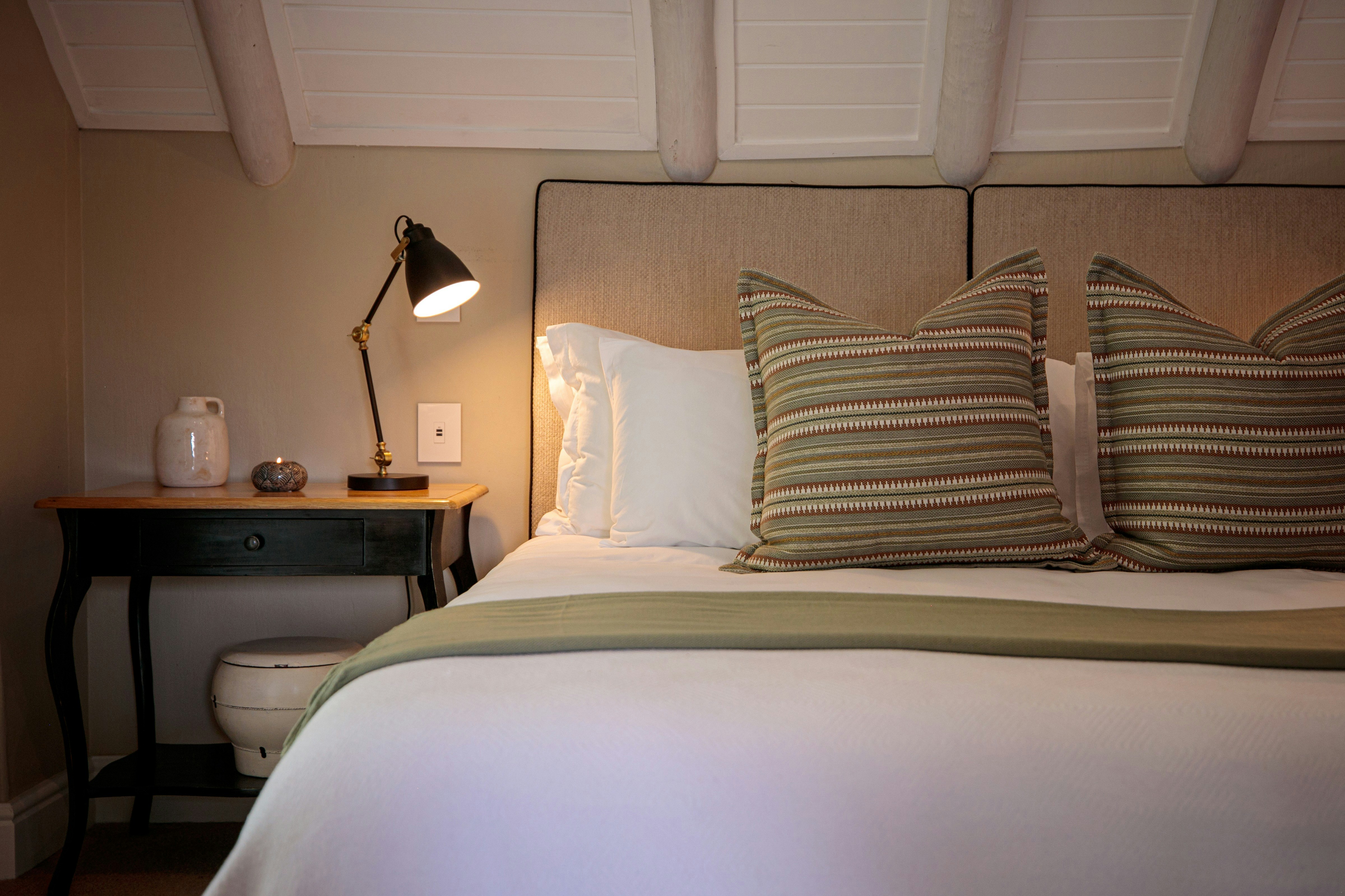 Located within a charming complex of historically significant Cape Dutch buildings, The Owner's Cottage at Grande Provence offers luxurious and en-suite accommodation in manicured gardens. Guests have a choice of lovely suites decorated in a palette of charcoal grey and white linen, each accommodating 2 people. The air-conditioned suites are furnished with a king-size bed, and each suite has an en-suite bathroom fitted with showers and baths. Each suite is equipped with a bar fridge, a TV with Netflix, tea- and coffee-making facilities, and some of the suites open onto a patio with a view of the surroundings.