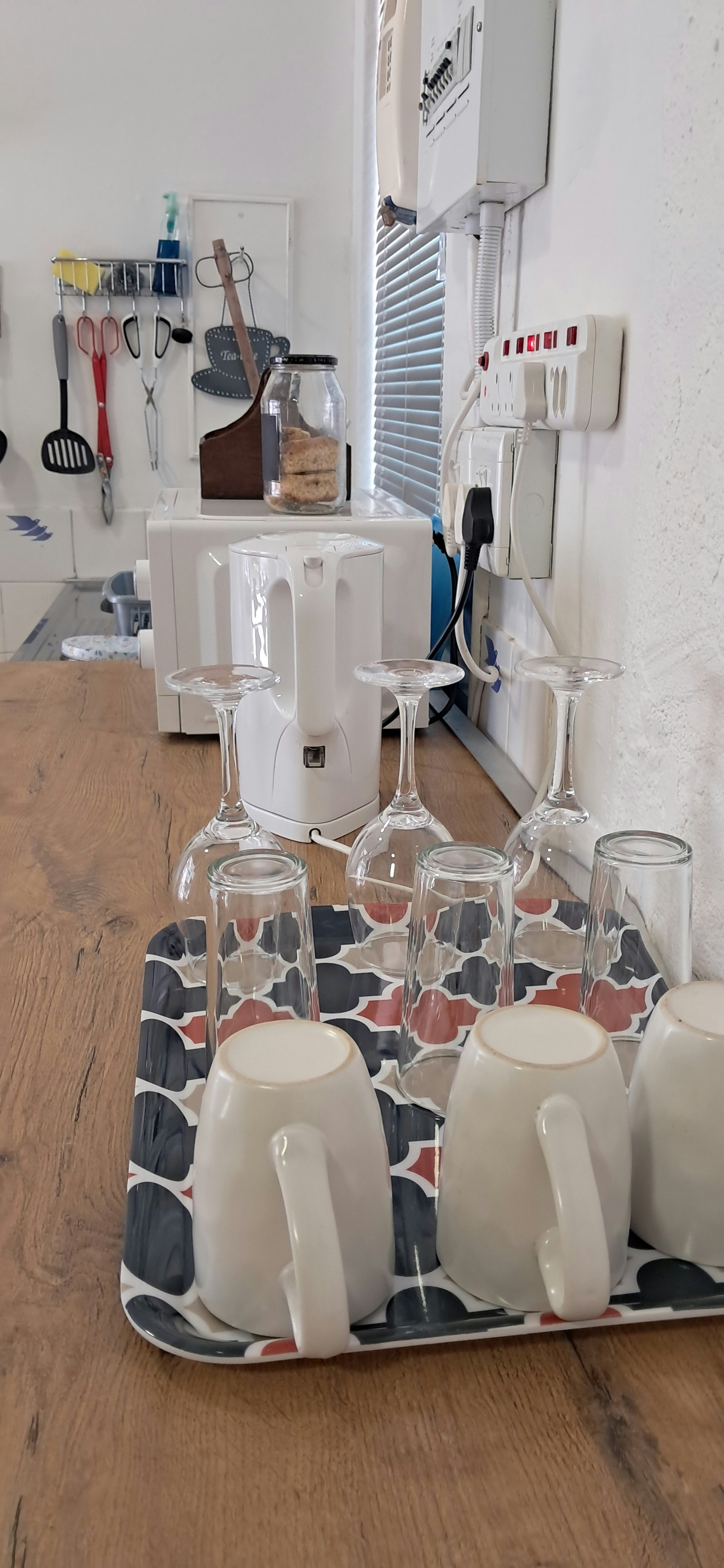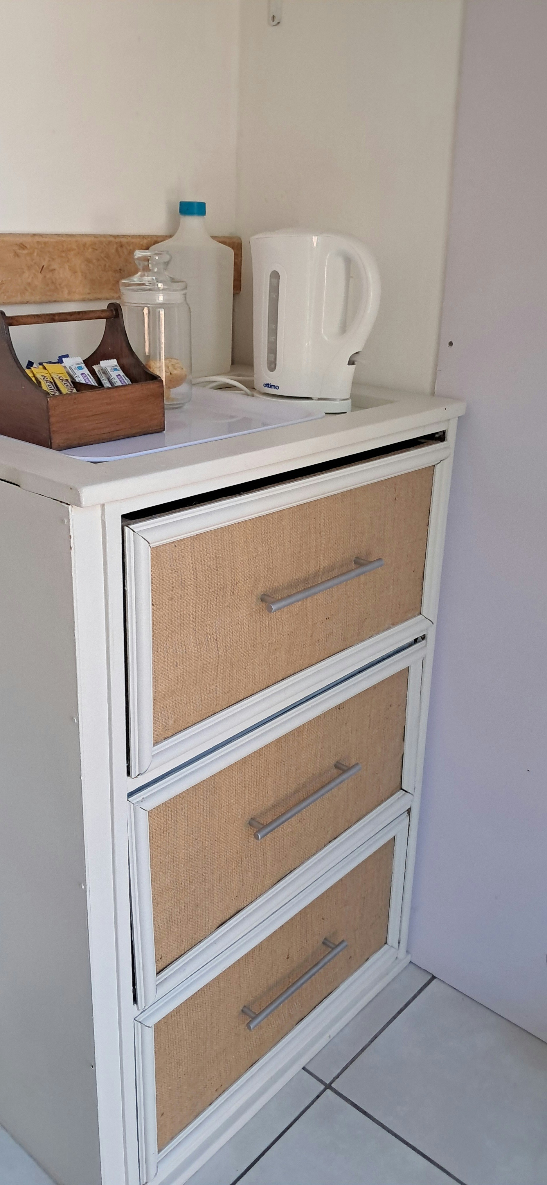 Room 5 is an open-plan self-catering unit. The unit has 3 single beds and a bathroom with a shower. The kitchenette is equipped with a two-plate stove, microwave, toaster, fridge, kettle, and cutlery.