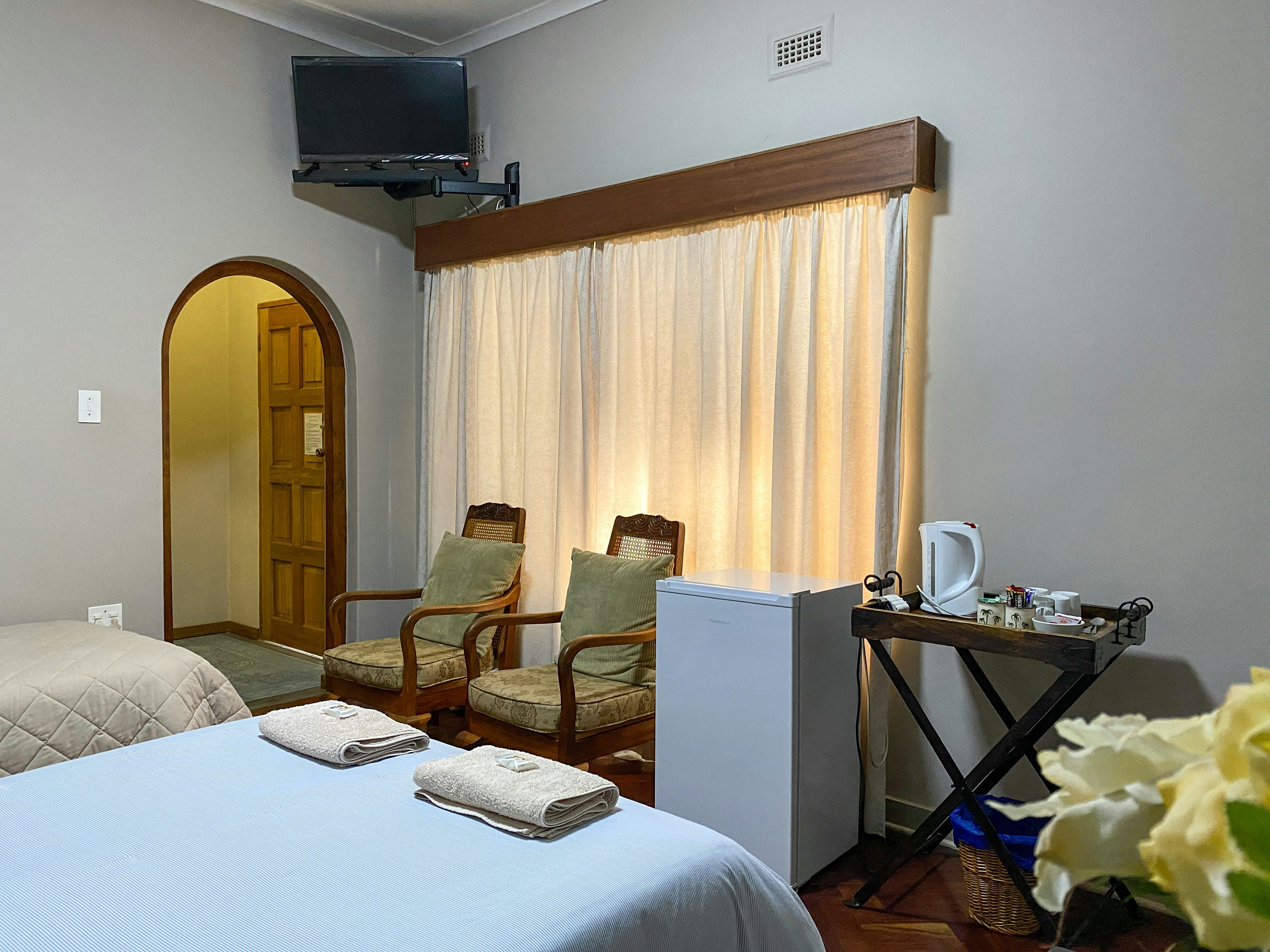 Palm Inn Guest House se ideale ligging beteken dat die plattelandse gevoel behoue bly. Die gastehuis spog met 'n swembad- en buite-area met 'n plattelandse gevoel. Die Palm Inn Guest House is 'n luukse gastehuis op die hoke van Kerk- en Theo Mocke-straat.