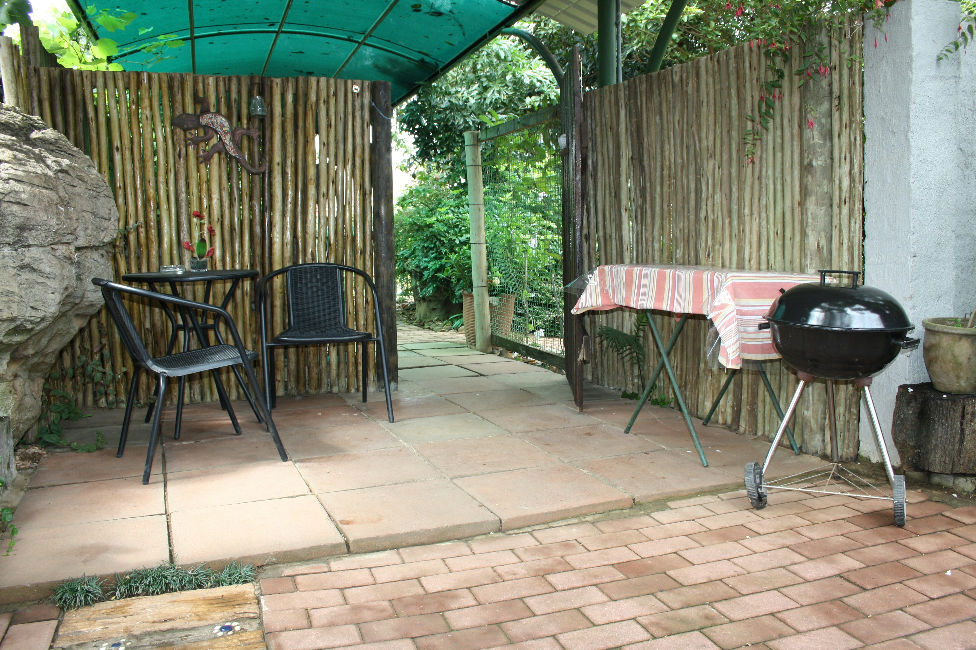 The double room is called Panda's. The room is furnished with a double bed and an en-suite bathroom with a shower and a bath. Full DStv is available. The room is equipped with tea- and coffee-making facilities, a bar fridge, microwave, crockery, and cutlery. The cottage has its own private entrance and outdoor area with a garden set and a braai. There is private parking available on the premises. The generator is switched on at certain times. This unit does not have dishware facilities. The accommodation will handle the dishes themselves. Please also note that there is no stove.