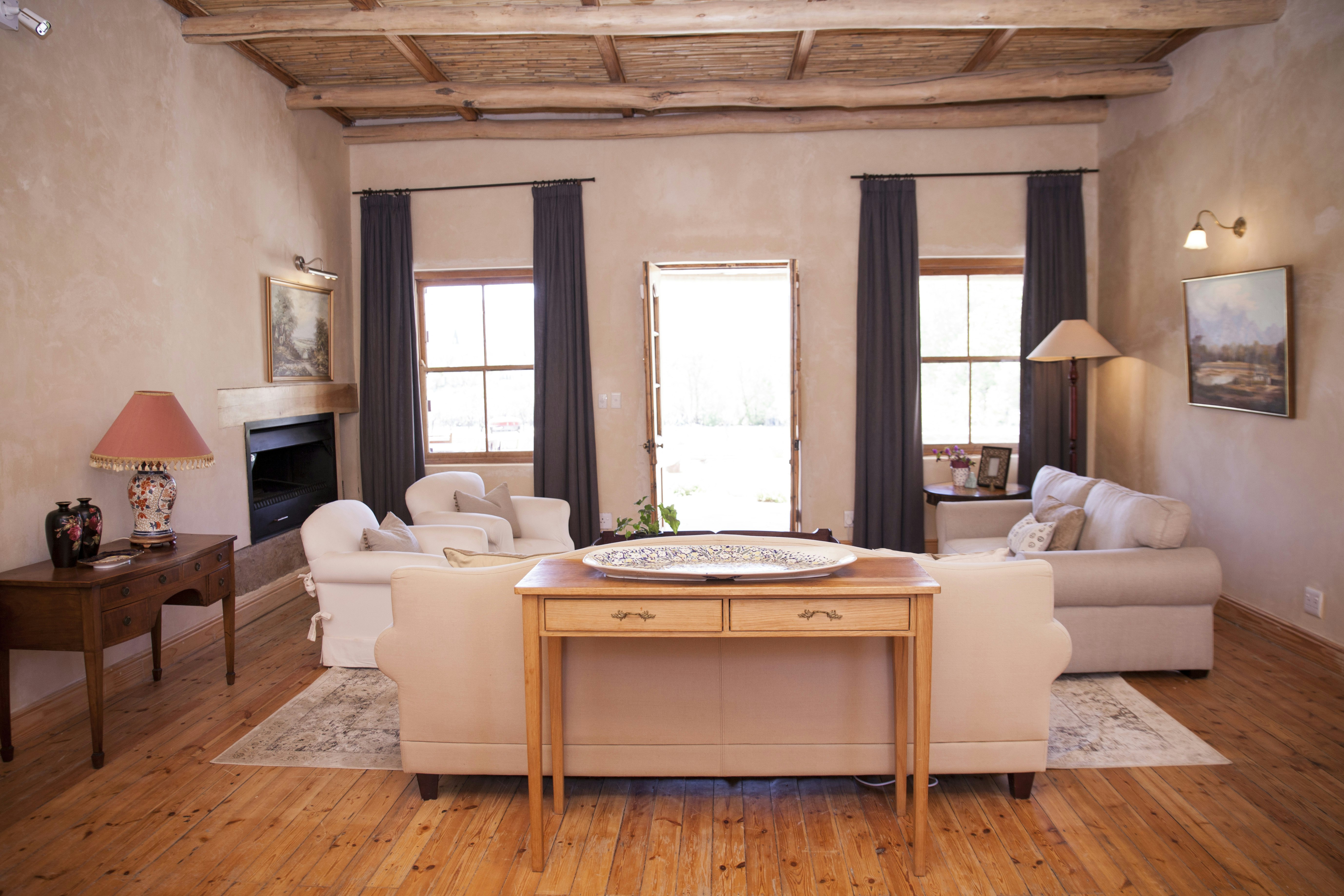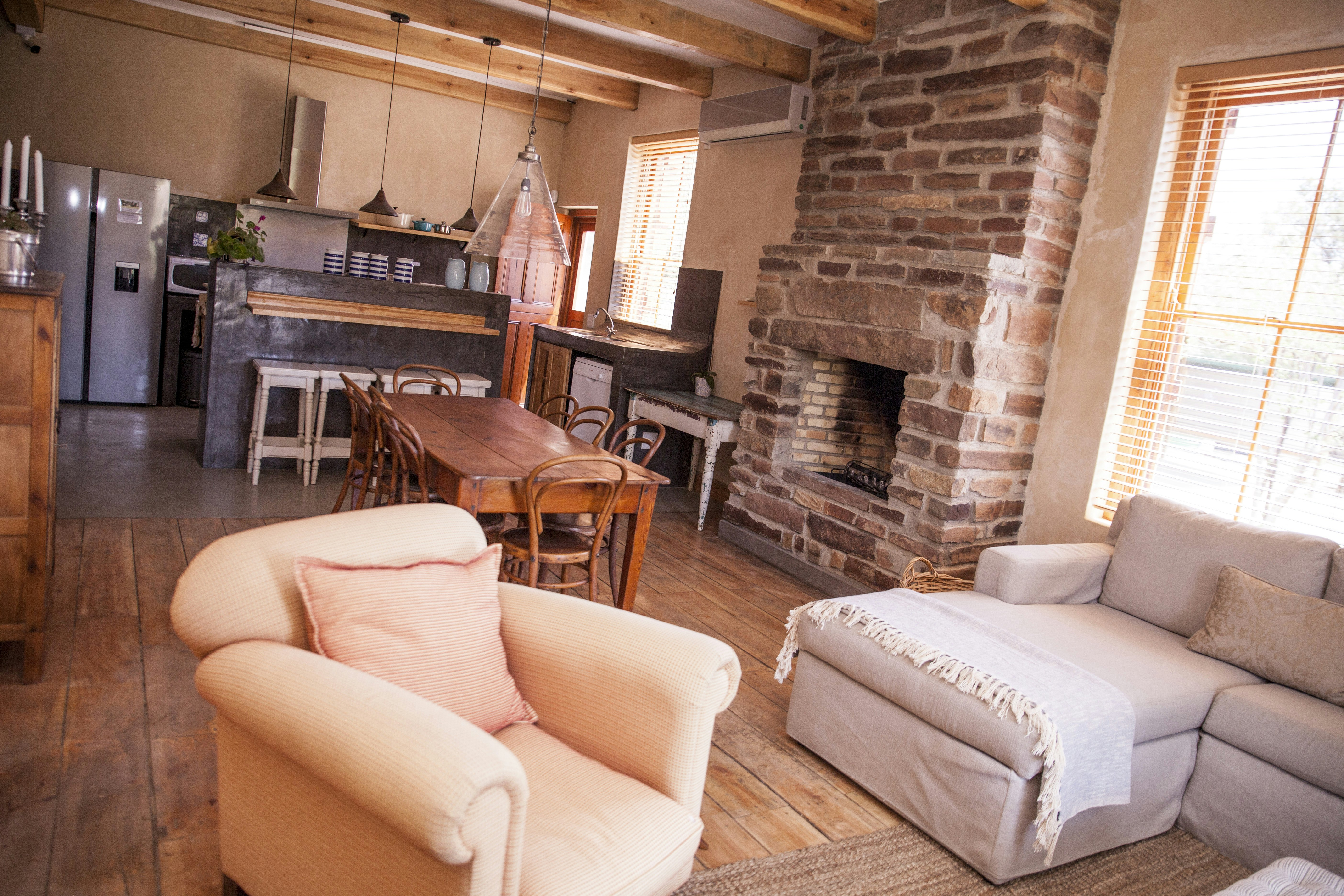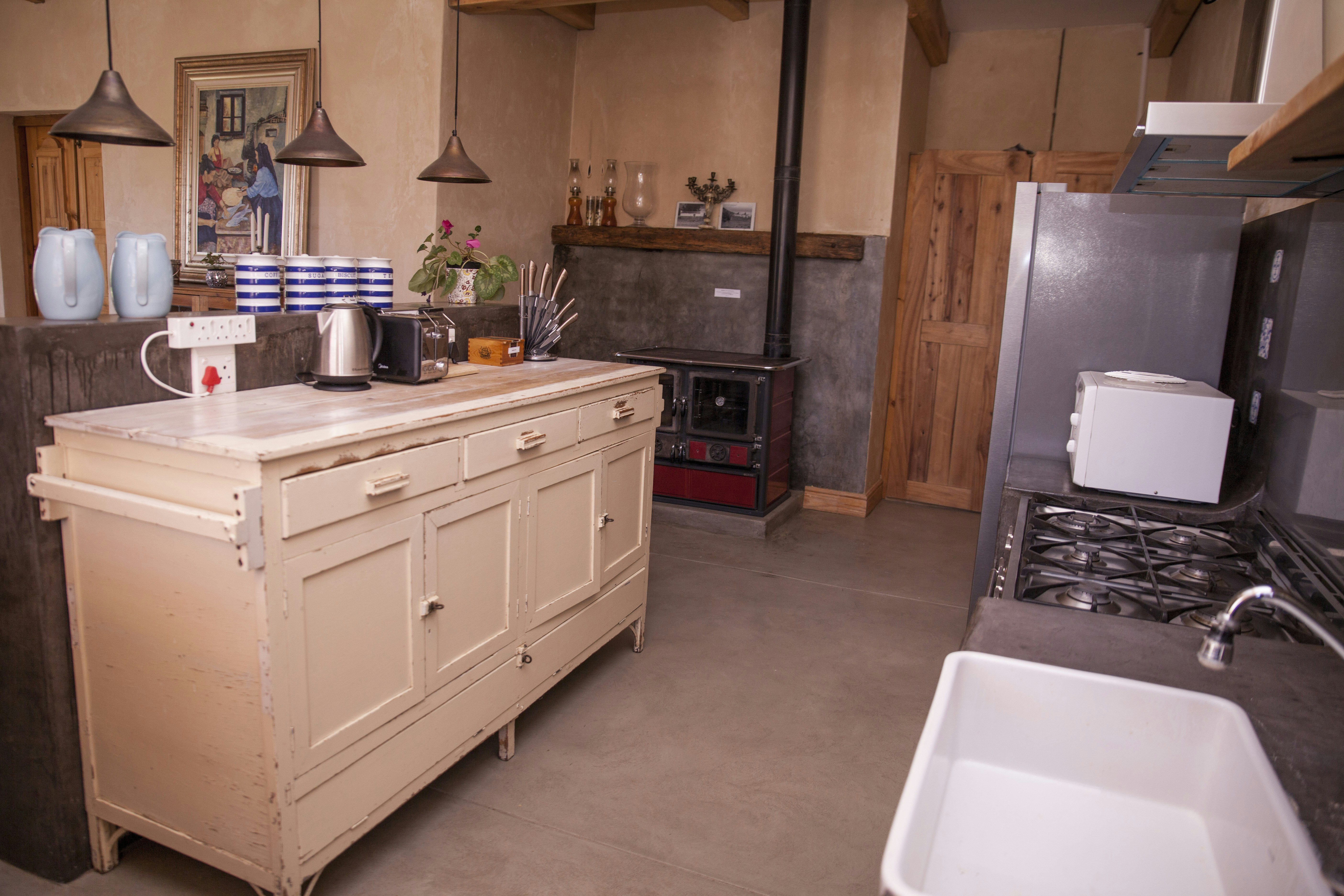 Die groot kombuis is volledig toegerus met 'n gasstoof en oond, 'n houtstoof, 'n mikrogolfoond en 'n yskas, asook tee- en koffiemaakgeriewe. Daar is beide 'n eetkamertafel en 'n sitkamer in die kombuis met 'n kaggel. 'n Aparte sitkamer bied 'n tweede kaggel. Die ruim patio spog met sitplek, 'n eetkamertafel en 'n uitsig oor die heuwels rondom die dorp.
