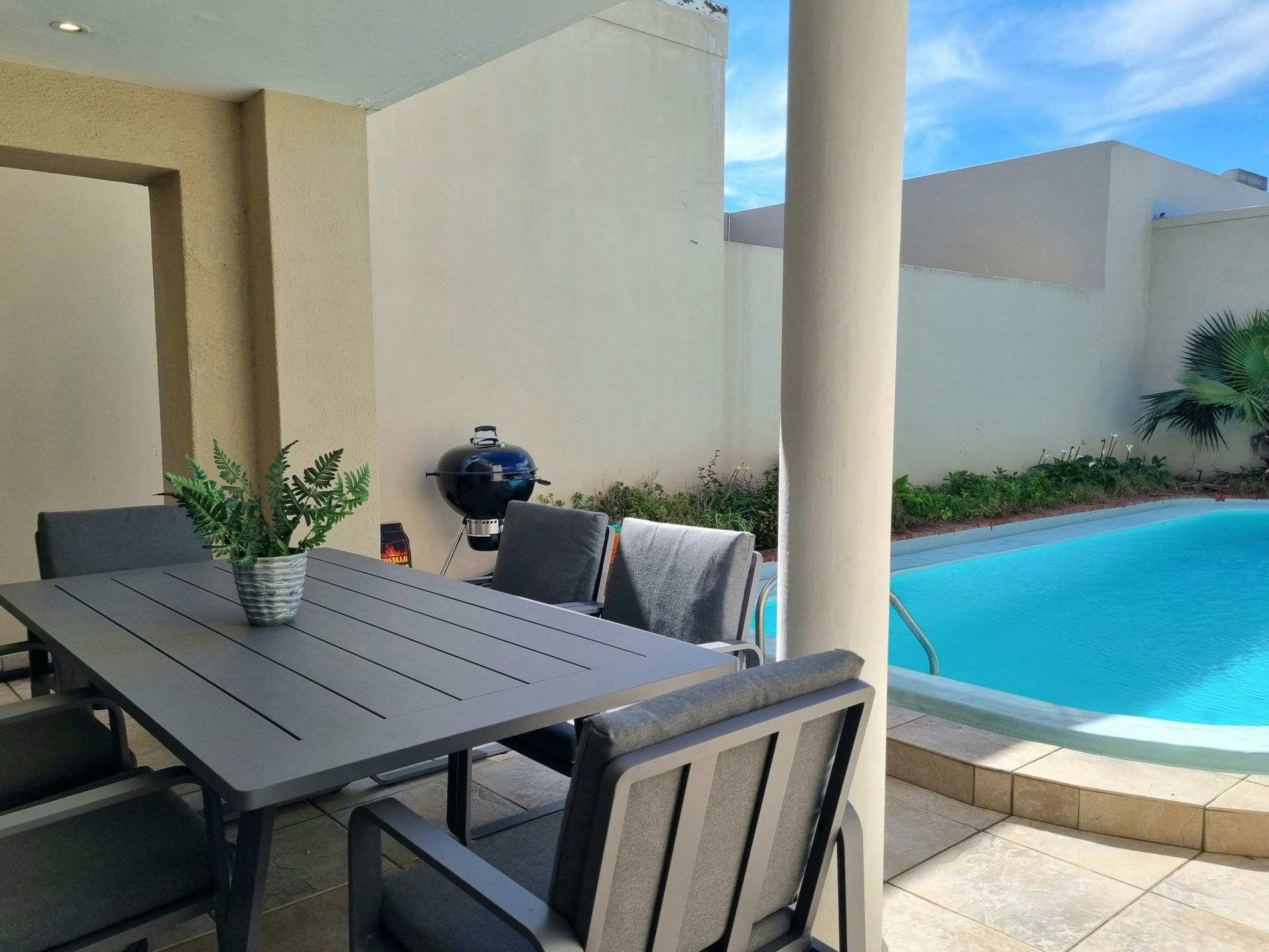 At the heart of the home is a beautiful, wind protected central courtyard with braai facilities, a private swimming pool, comfortable outdoor seating, and sun loungers, perfect for relaxing in the sun or enjoying a peaceful swim in complete privacy.