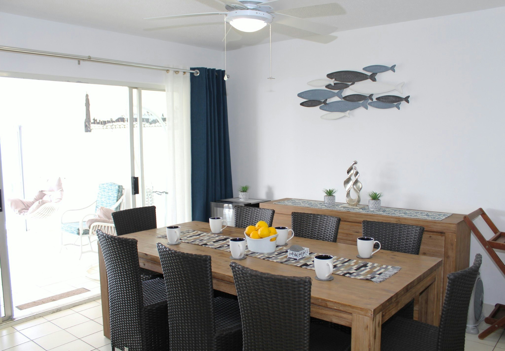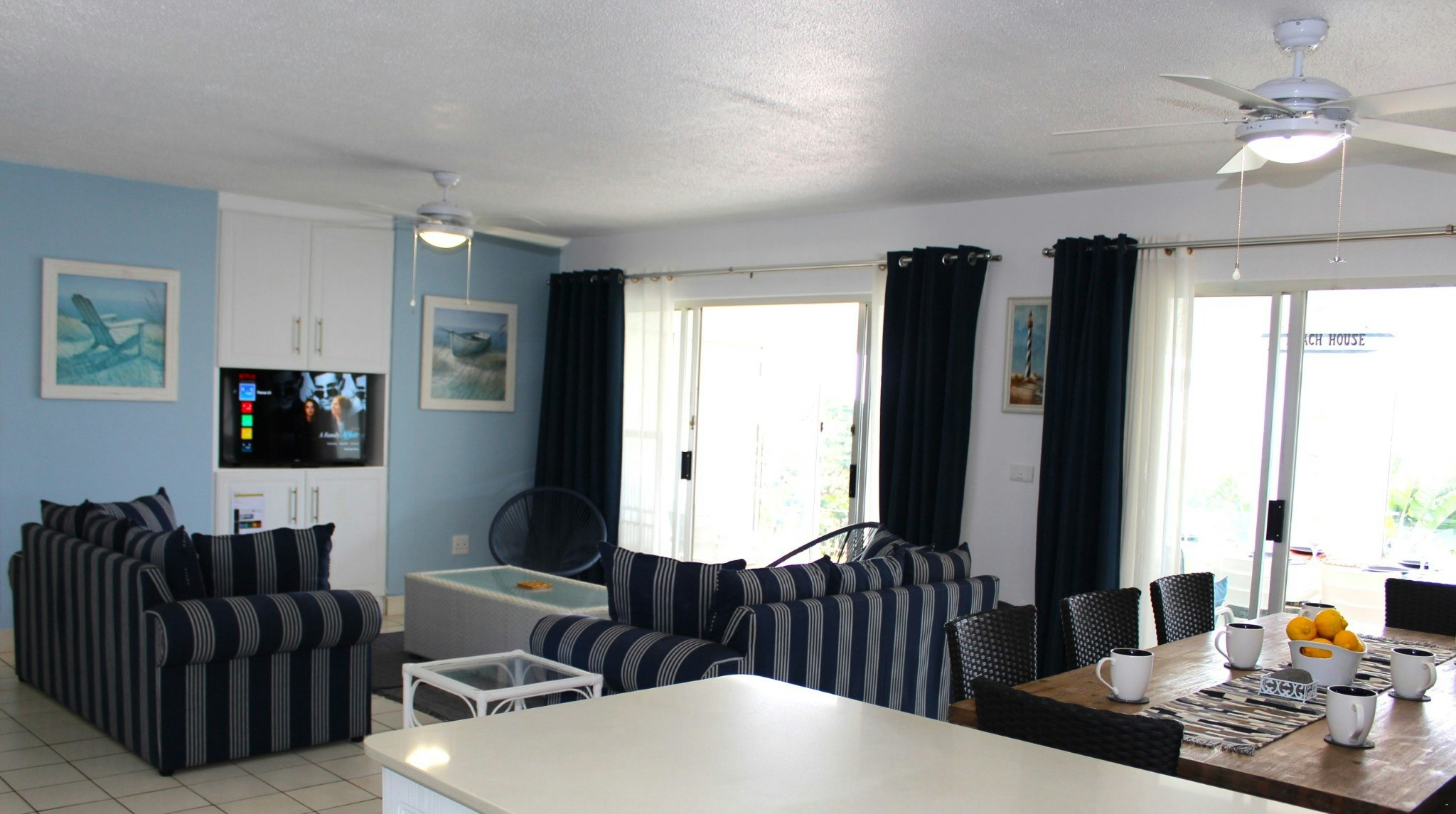 This unit can comfortably accommodate 4 adults and 4 children and comprises 4 bedrooms and 2 bathrooms. The first bedroom is furnished with a king-size bed and features an en-suite bathroom fitted with a bath and shower. The second bedroom has a queen-size bed, while the third and fourth bedrooms each contain 2 single beds. Please note that the fourth bedroom is only for children. Each bedroom is equipped with a ceiling fan. The second bathroom is also fitted with a bath and shower. Linen and bath towels are provided; however, guests are required to bring their own beach towels.