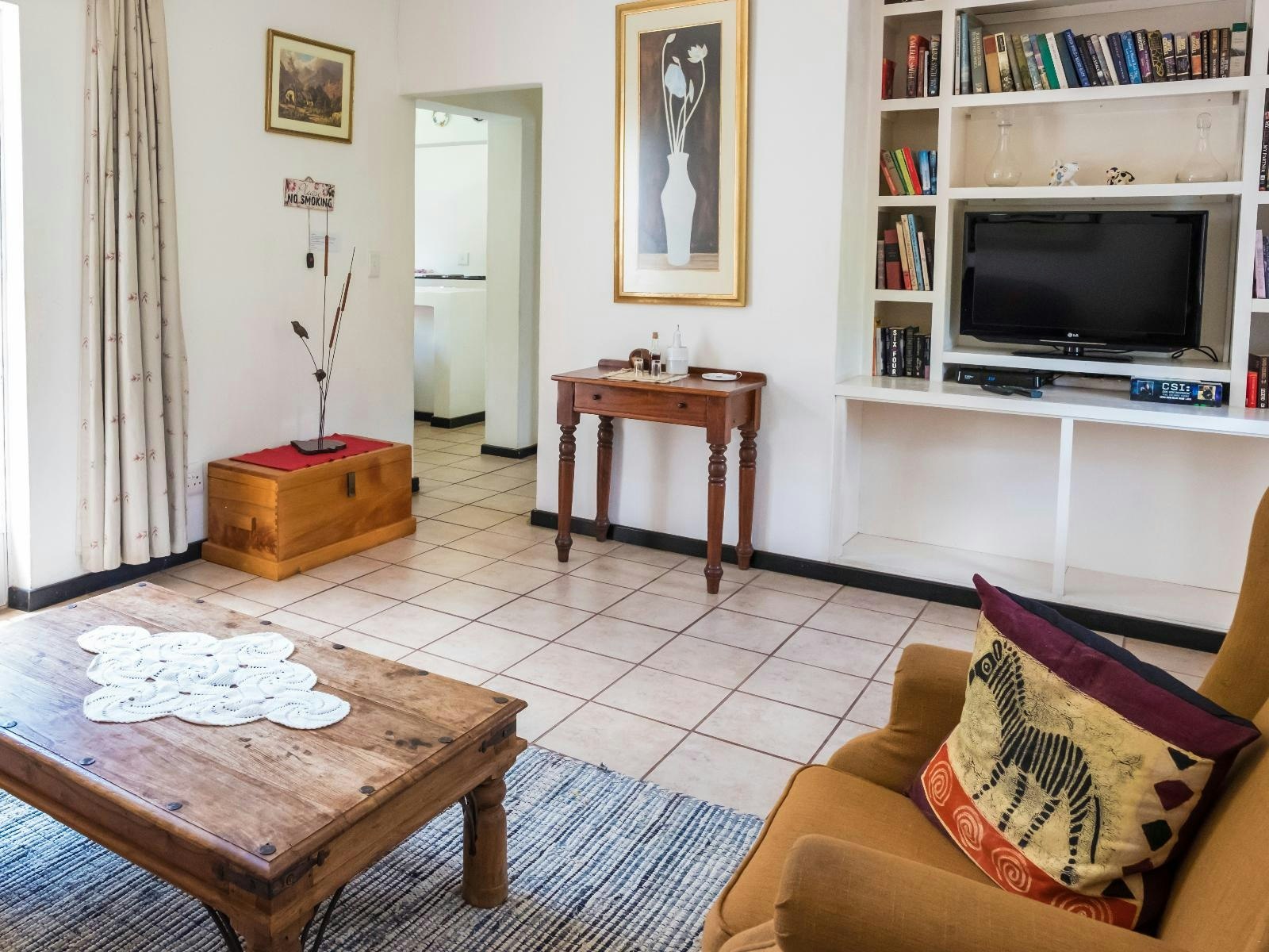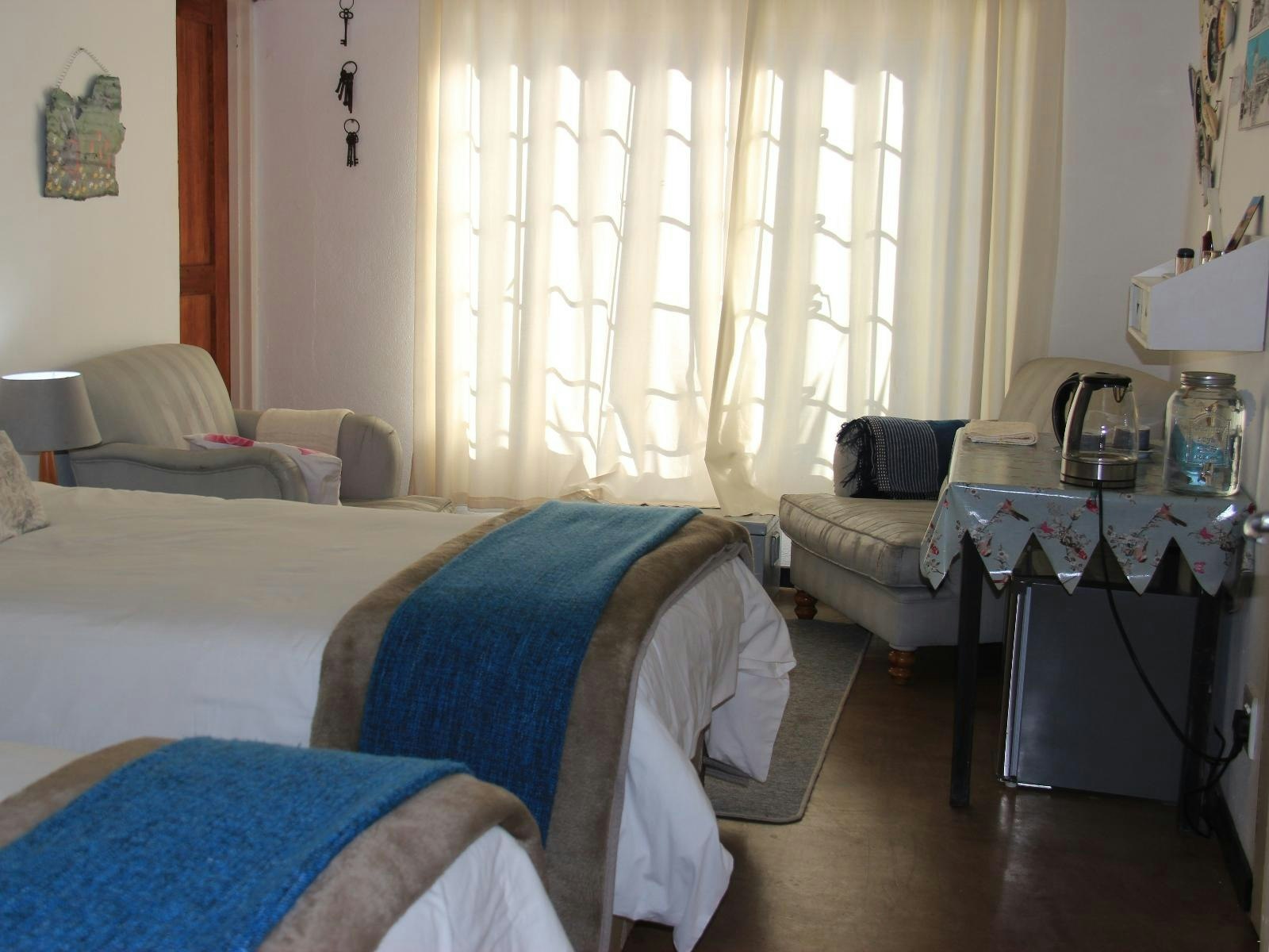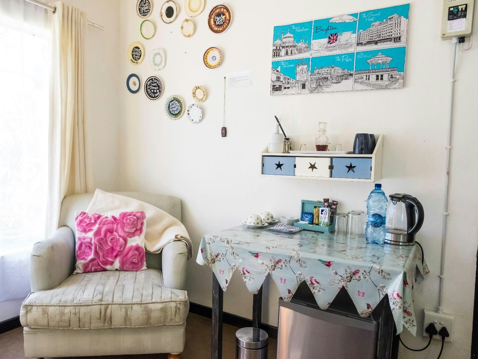 Poppy Place is a semi-detached cottage with its own front and back doors, and patio doors opening onto a large patio with seating. The cottage comprises a bedroom with a queen-size bed, an en-suite bathroom with a shower, and a cosy lounge with a sofa, 2 armchairs, a wood-burning fireplace, and a TV with selected DStv channels. There is a separate kitchen equipped with a fridge, a microwave, a stove, as well as a breakfast nook. This cottage has an interleading door with the option of being booked with Bluebell.