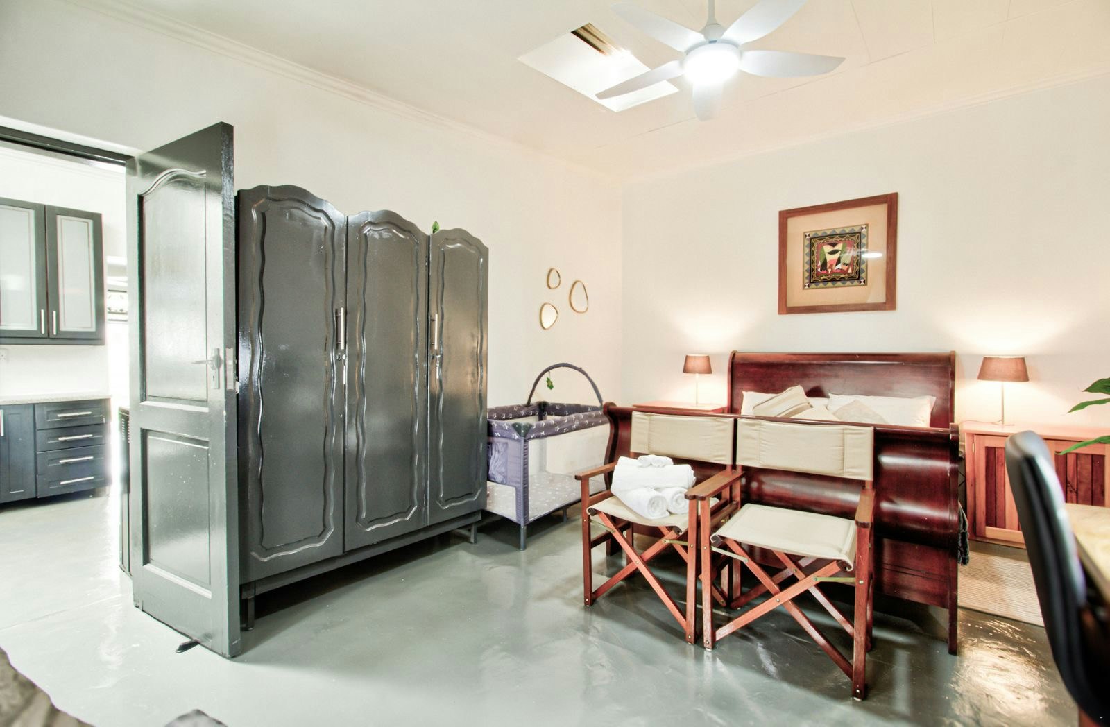 Hierdie huis bied slaapplek vir 5 gaste en bestaan uit 3 slaapkamers en 2 badkamers. Die hoofslaapkamer is gemeubileer met 'n koningingrootte-bed en 'n bababedjie. Die oorblywende slaapkamers het dubbelbeddens. Gaste deel 'n badkamer met 'n stort, wasbak en toilet. Daarbenewens is daar 'n gastebadkamer met 'n wasbak en toilet.