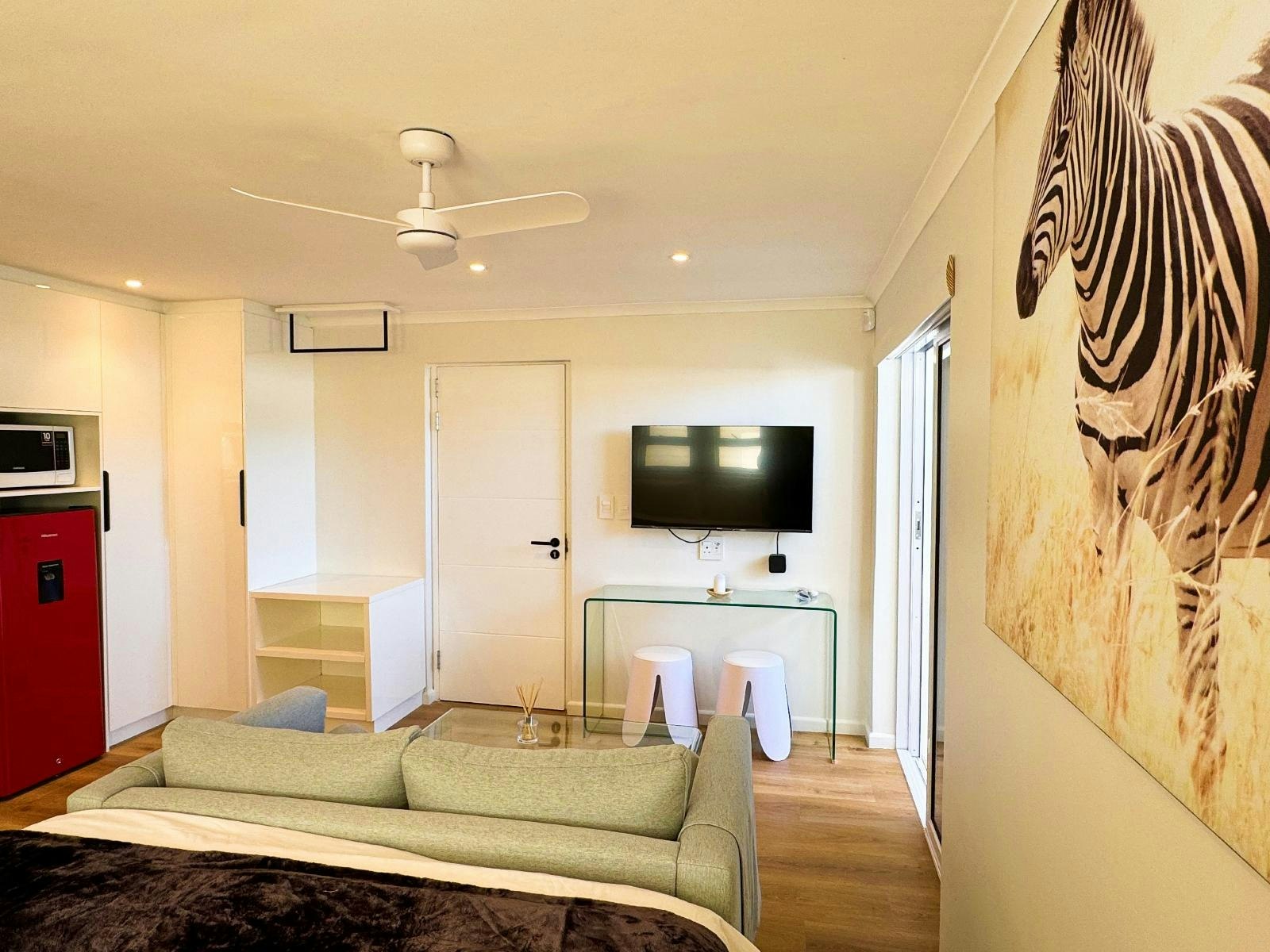 This studio unit can accommodate up to 2 guests and comprises an open-plan sleeping area and a bathroom. The sleeping area is furnished with a queen-size bed. The bathroom is fitted with a shower, washbasin and toilet. Linen and bath towels are provided.