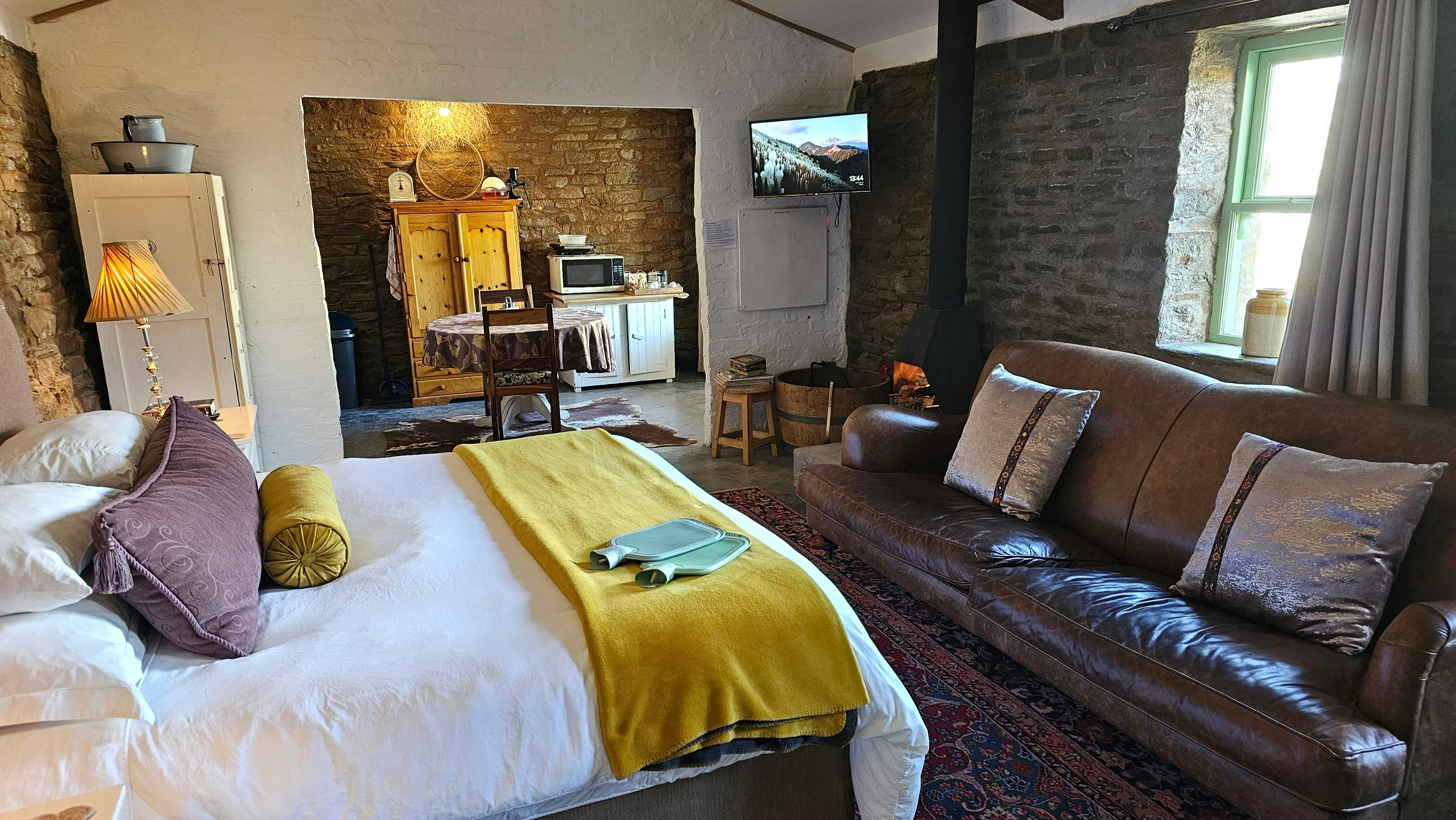 Each cottage is equipped with fireplaces and braai facilities, along with electric blankets and panel heaters to ensure comfort during the colder winter months. Fibre Wi-Fi is provided, allowing guests to stay connected while relaxing indoors, enjoying the fireplace, or watching their favourite series from the comfort of the king-size bed.