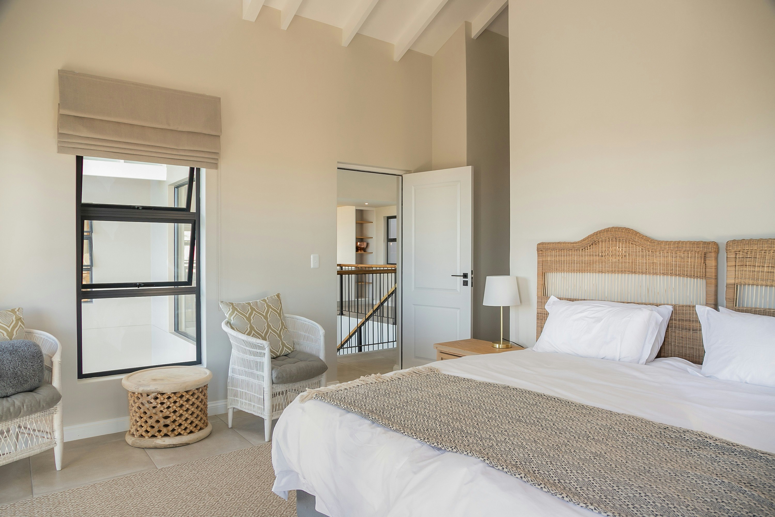 This double-storey villa can accommodate 8 guests and comprises 4 bedrooms and 4 bathrooms. The main and second bedrooms each have a king-size bed, the third bedroom contains a queen-size bed, and the fourth bedroom has 2 single beds. The en-suite bathrooms are fitted with a shower, a basin, and a toilet.