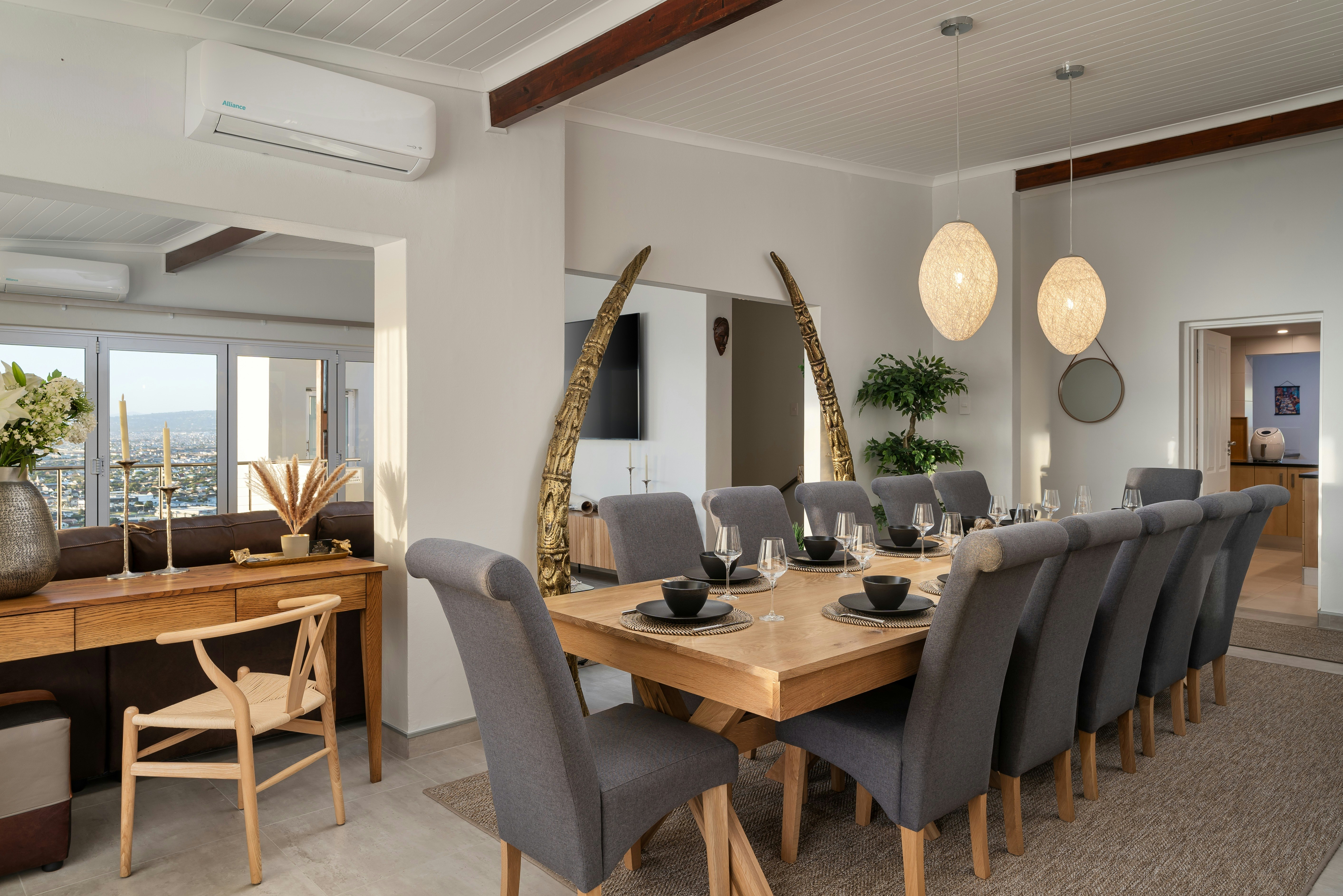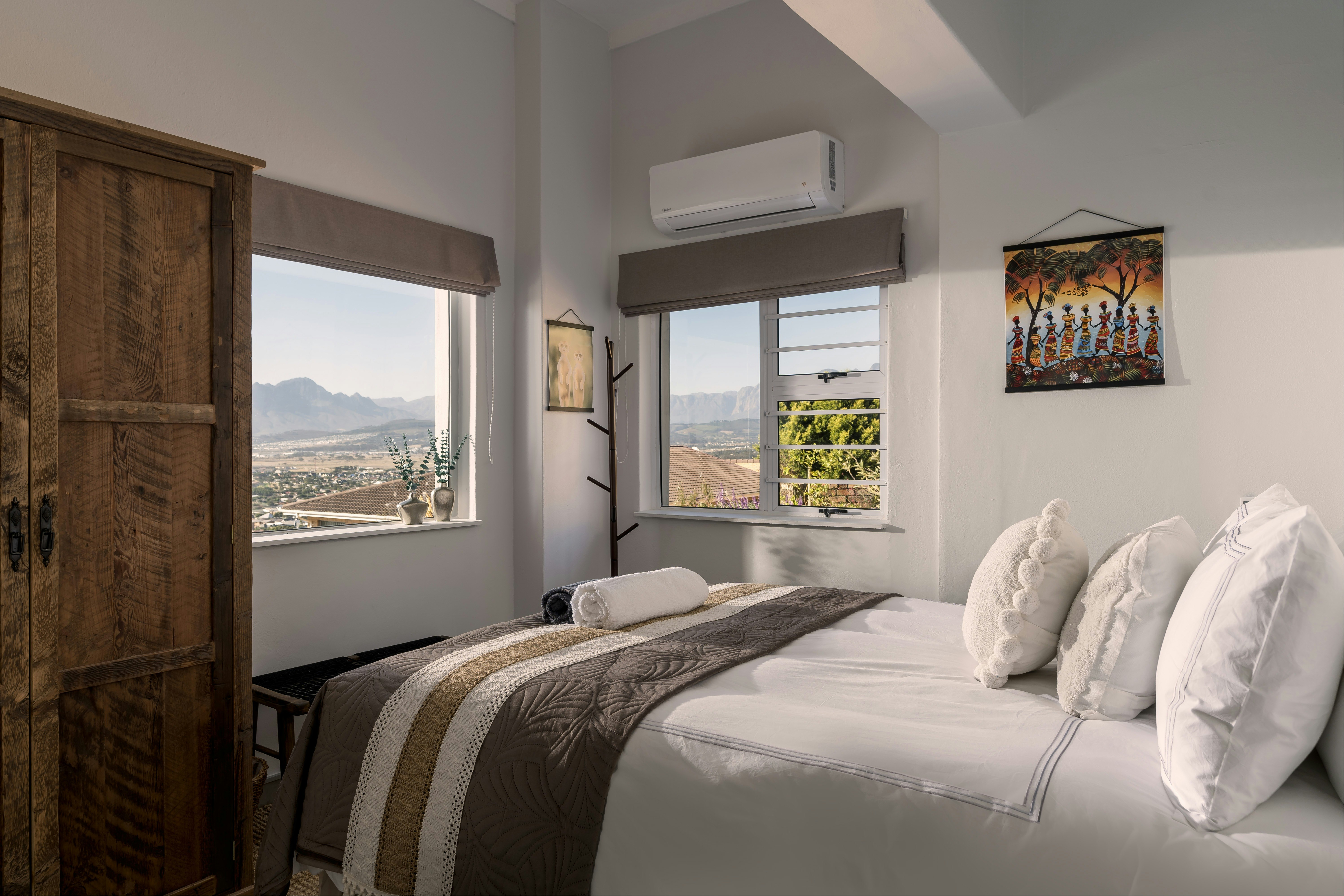 PheZulu Manor, Panoramic Views, Serviced Retreat in Gordon’s Bay is a luxurious serviced villa. Set between mountains and the ocean, it offers panoramic views, multiple terraces, elegant living spaces and a hot tub. Ideal for both shared experiences and quiet retreats, it combines luxury, privacy, and versatility.