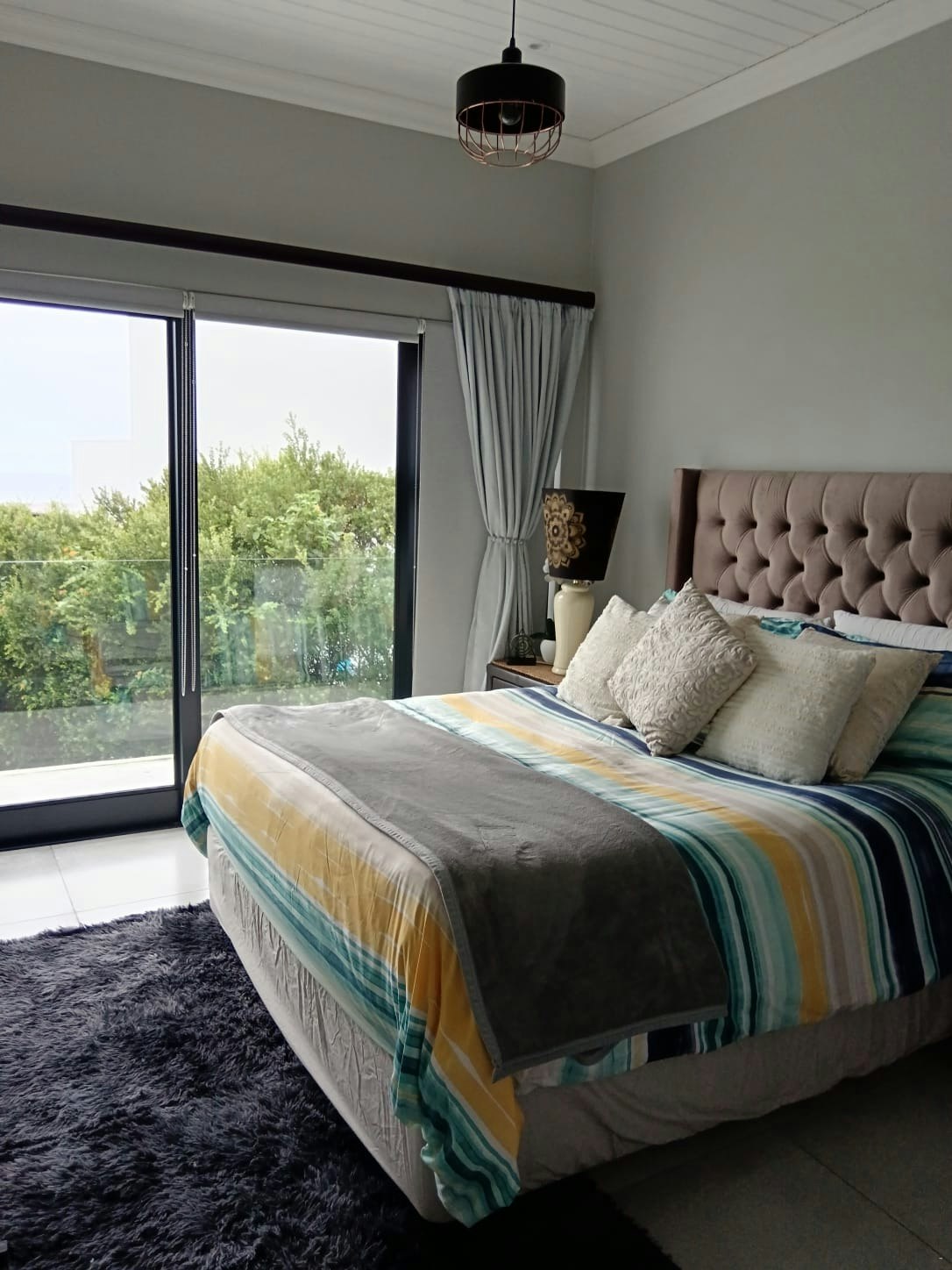 This home can accommodate 9 guests at a time and comprises 4 bedrooms and 4 bathrooms. The main bedroom boasts beautiful views of the ocean and golf course and is furnished with a king-size bed. A shower, washbasin, and toilet are available in the main en-suite bathroom. The second bedroom has two single beds and makes use of a separate bathroom fitted with a bath. The third bedroom has a Tri-bunk with an en-suite bathroom fitted with a shower. The fourth bedroom has 2 single beds and features an on-suite bathroom fitted with a shower.