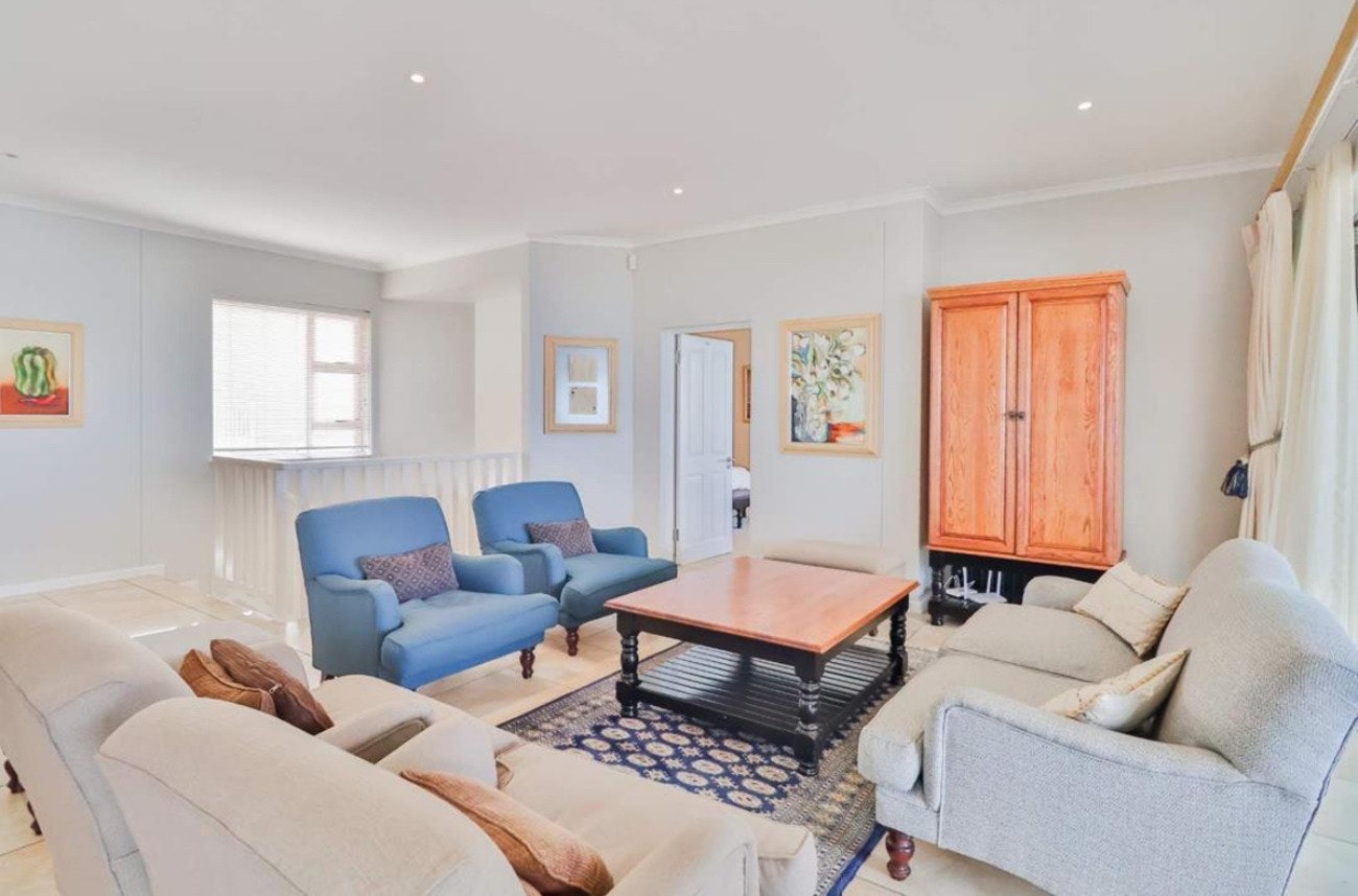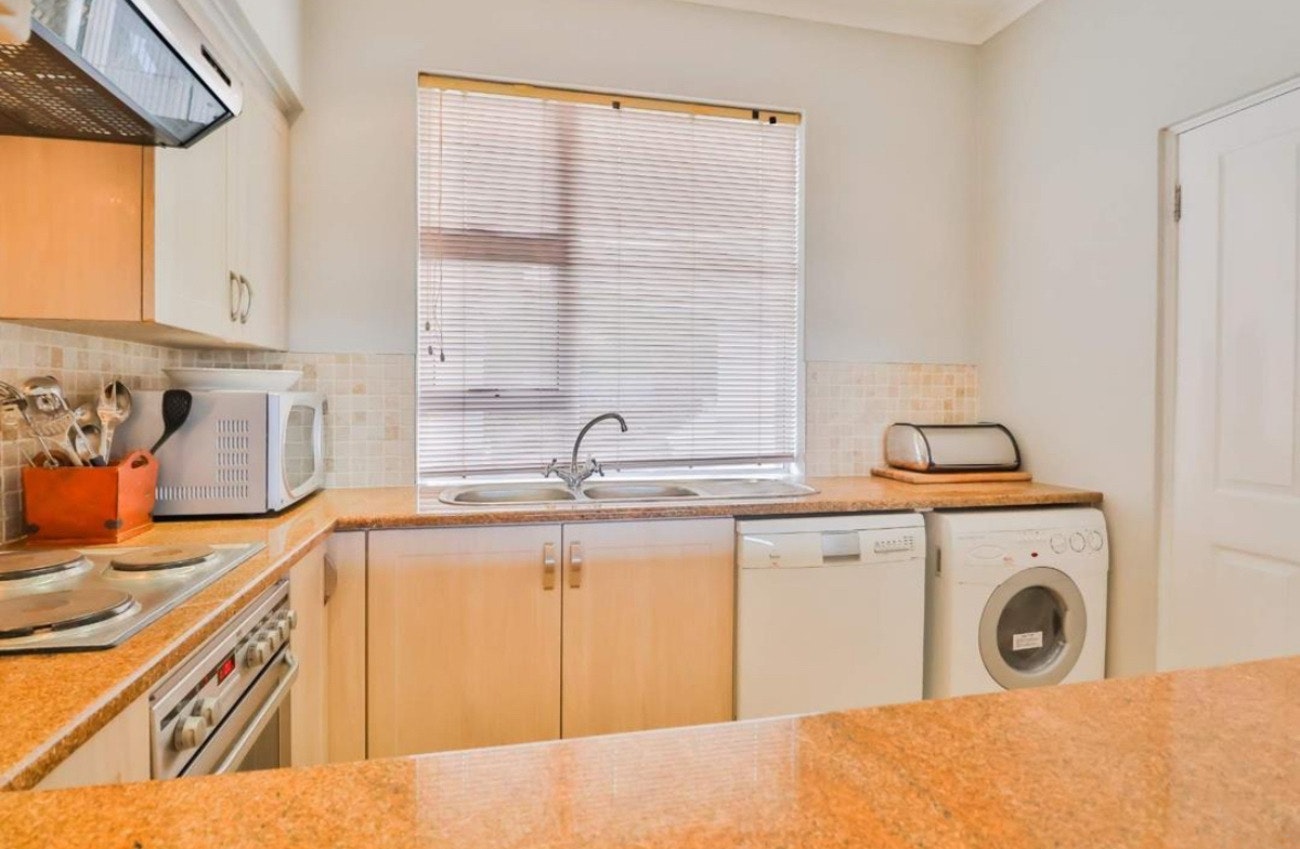 The living area features an open-plan design with a fully equipped kitchen, including a stove, oven, microwave, fridge-freezer, kettle, cutlery, and crockery. For added convenience, a dishwasher and washing machine are also available. An 8-seater dining table adjacent to the kitchen is perfect for meals. The lounge area is furnished with comfortable seating, a TV with DStv channels, along with free Wi-Fi facilities.