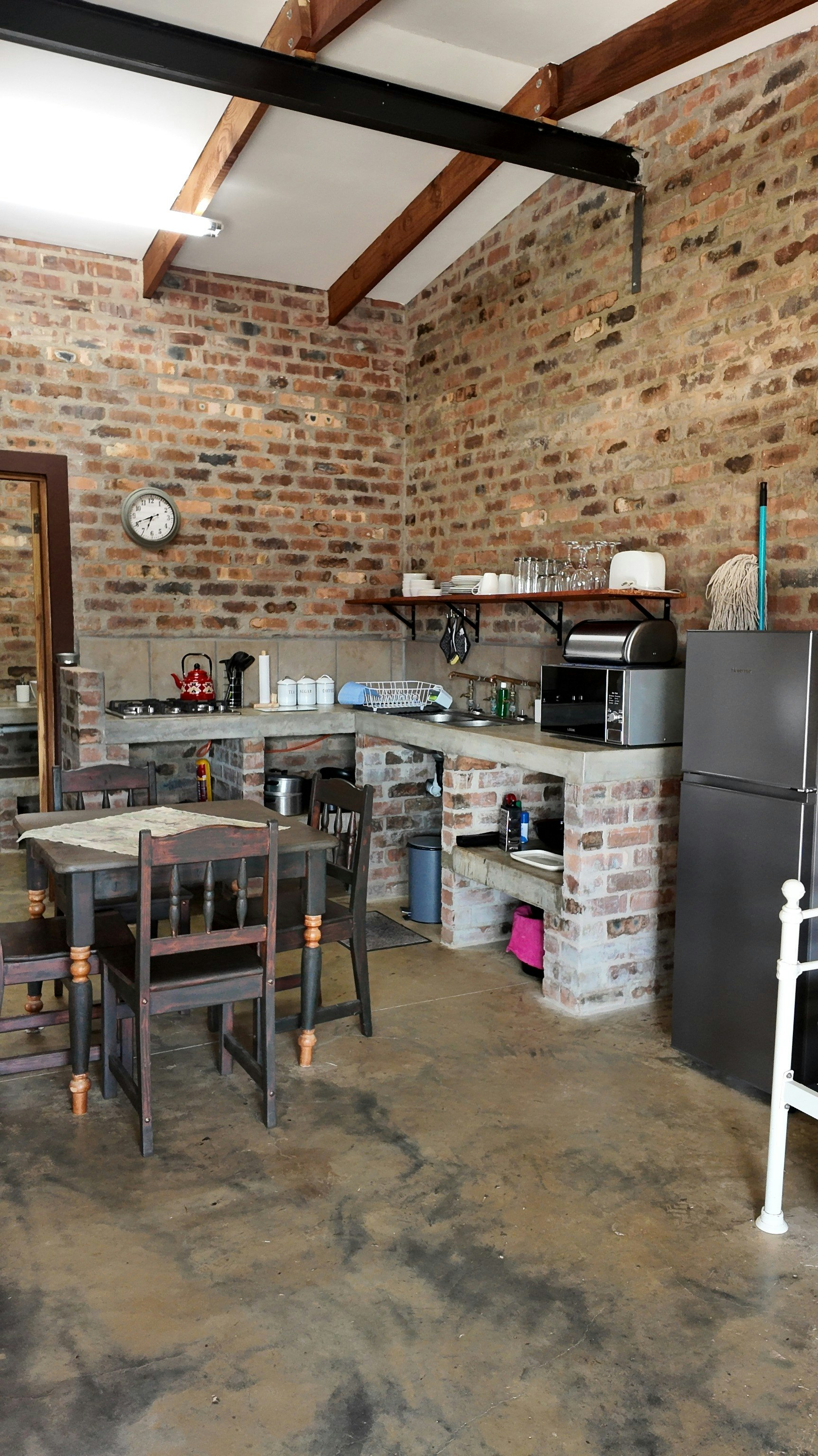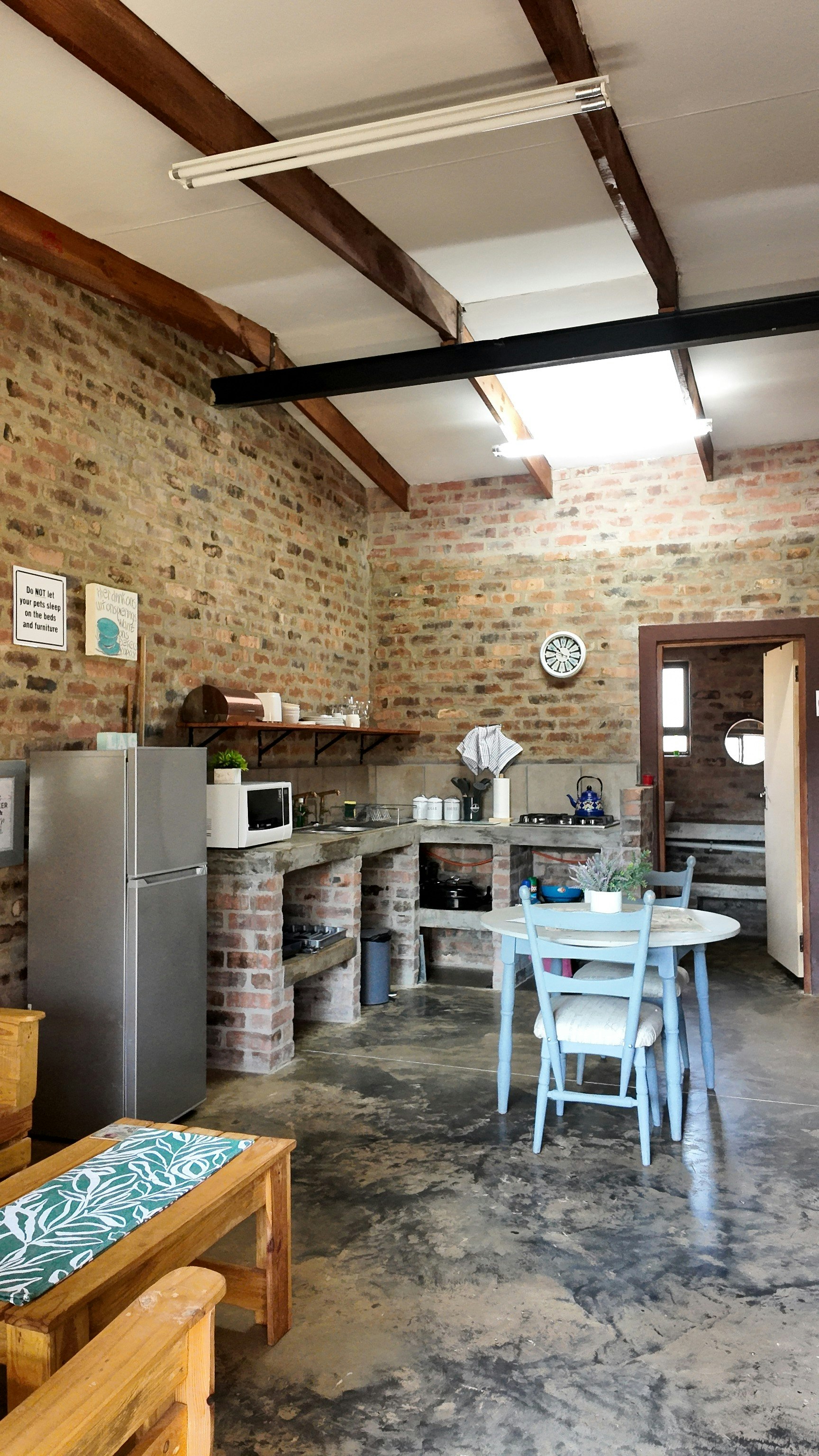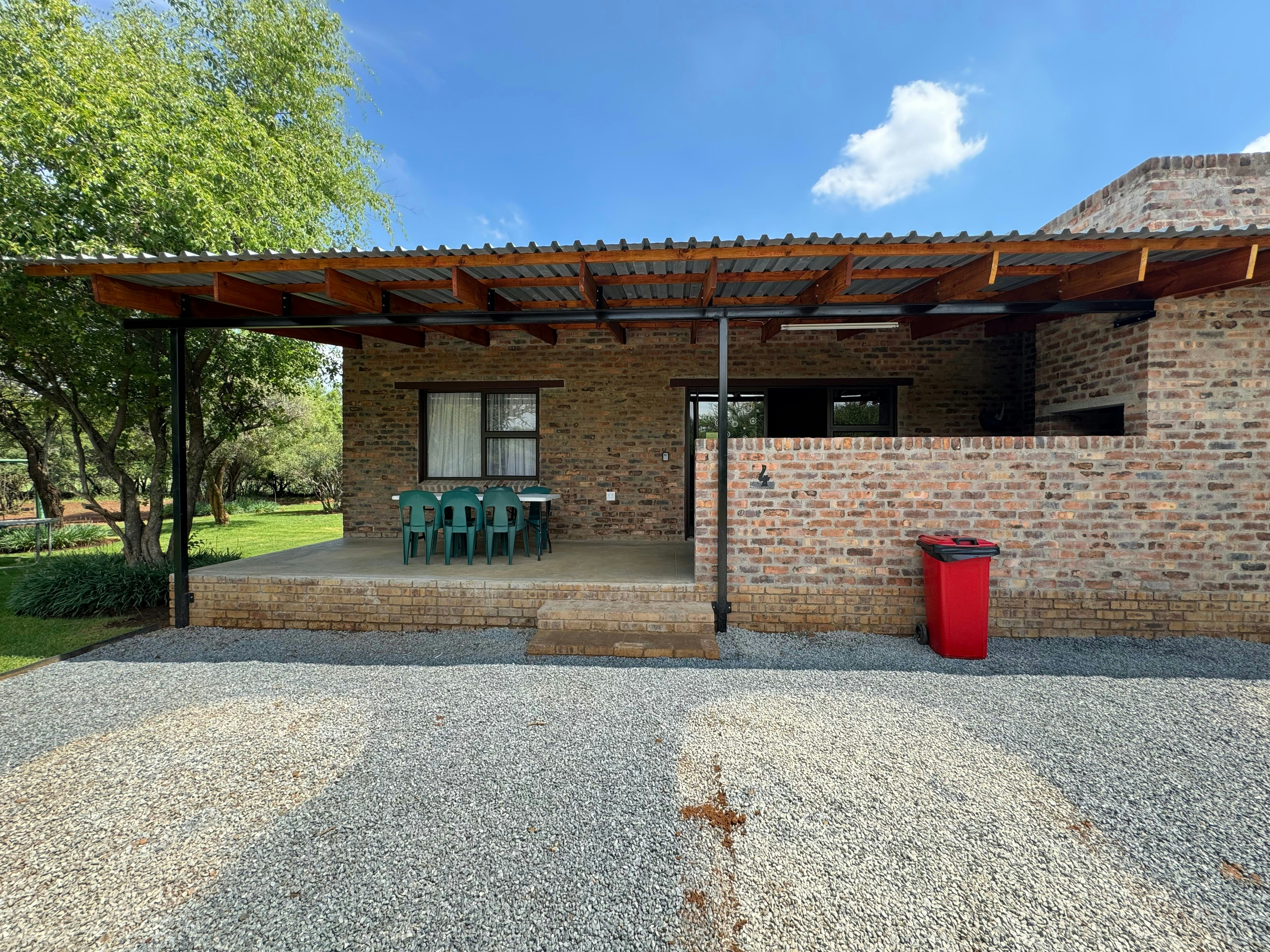 Accommodation is offered in 4 chalets that can accommodate 4 to 8 guests in each. Each chalet has its own small kitchenette and bathroom with a shower. Each kitchenette is equipped with a small fridge, microwave and tea- and coffee-making facilities. Each chalet has its own braai facilities and a small verandah.