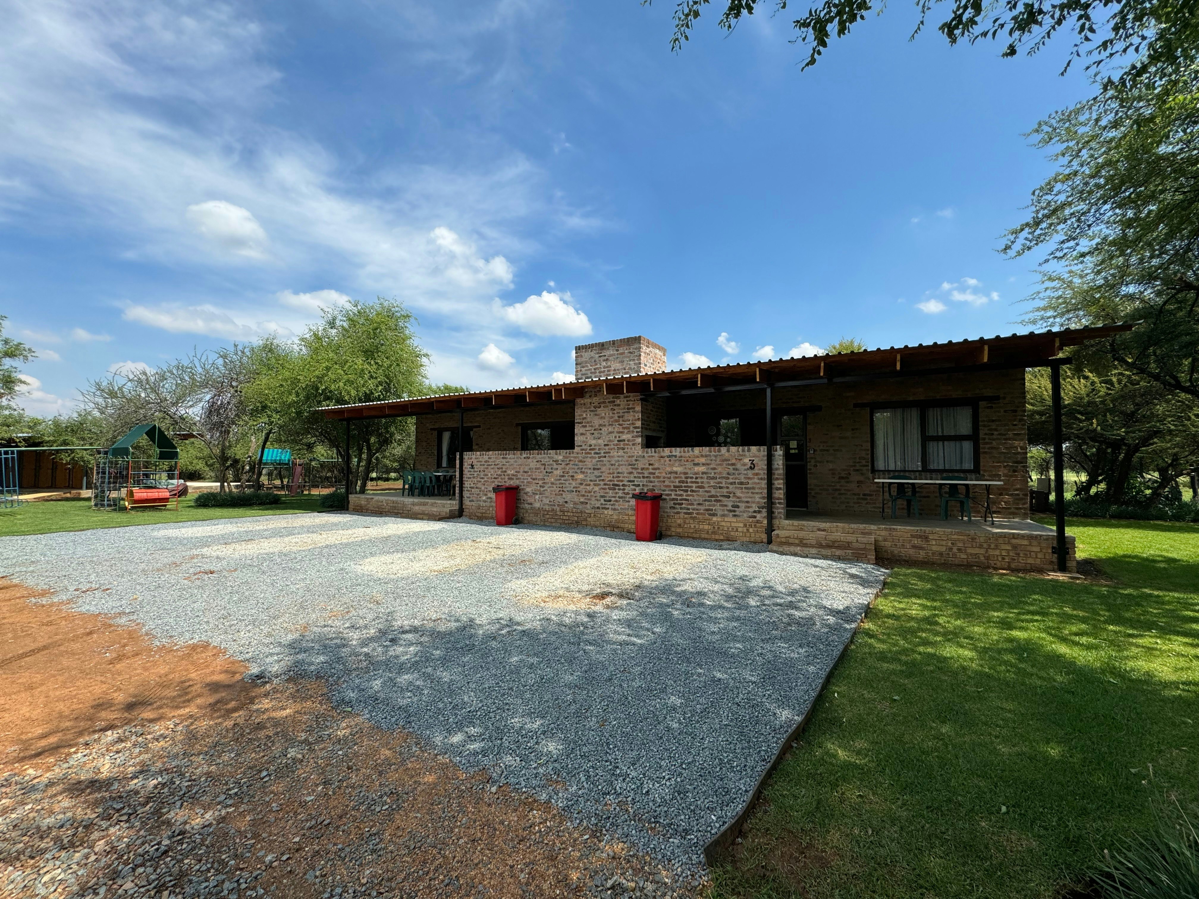 For the campers, there are 3 paved camping spots and 5 lawn camping spots. The ablution has a gas geyser and a flush toilet. There are 5 showers and 5 toilets available for use.