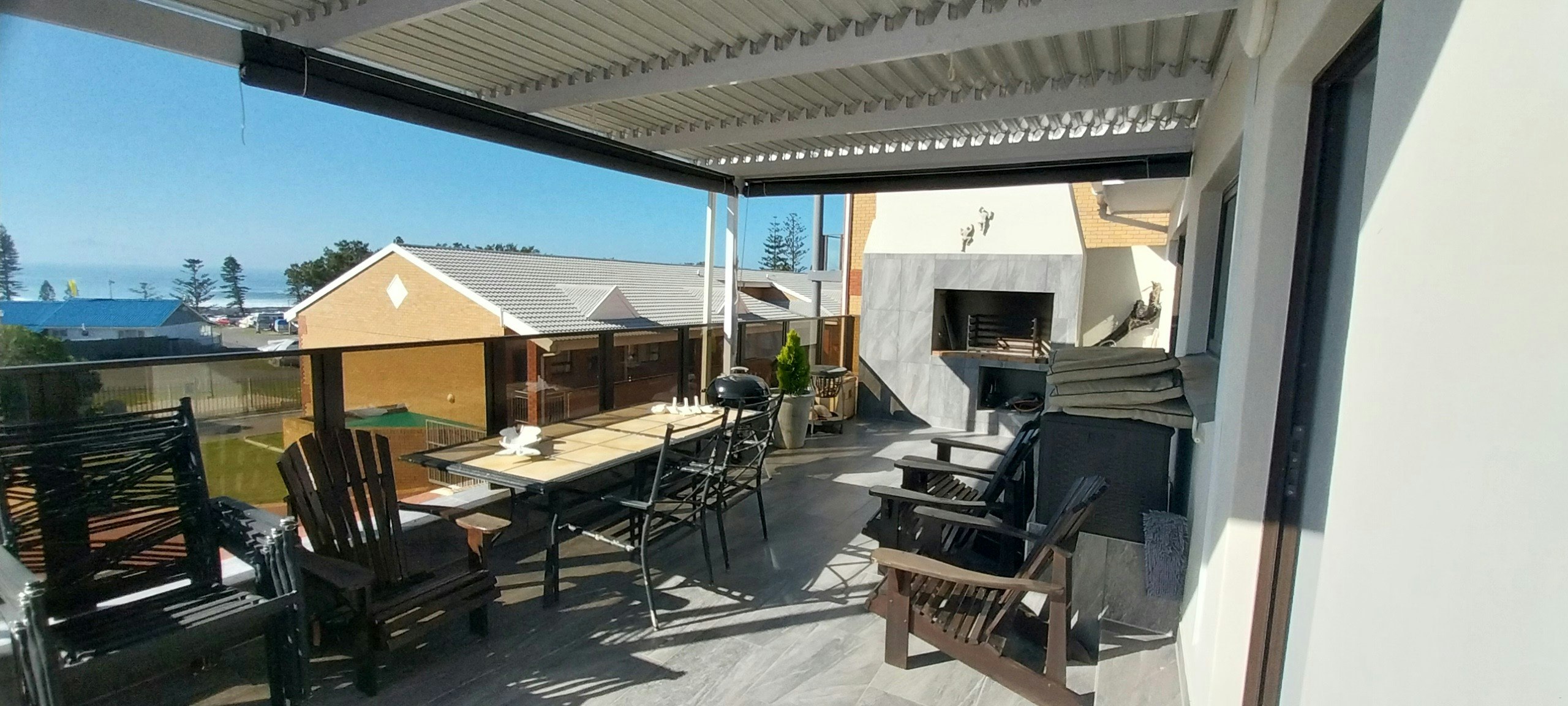 Guests can relax outside on the covered patio with a sea view, which features outdoor seating and both wood-burning and Weber braai facilities. The home has a full solar and inverter system to support during load shedding. Secure parking and free Wi-Fi are also available.