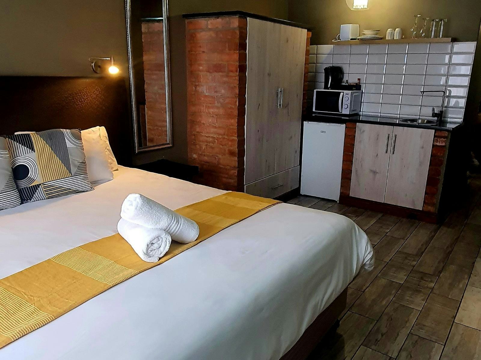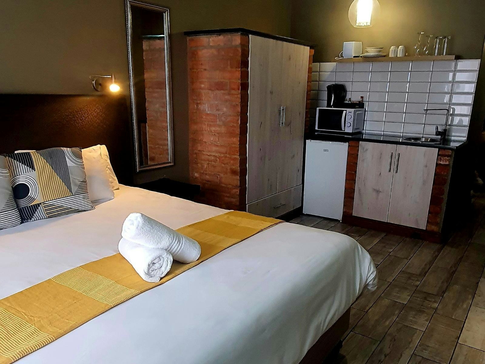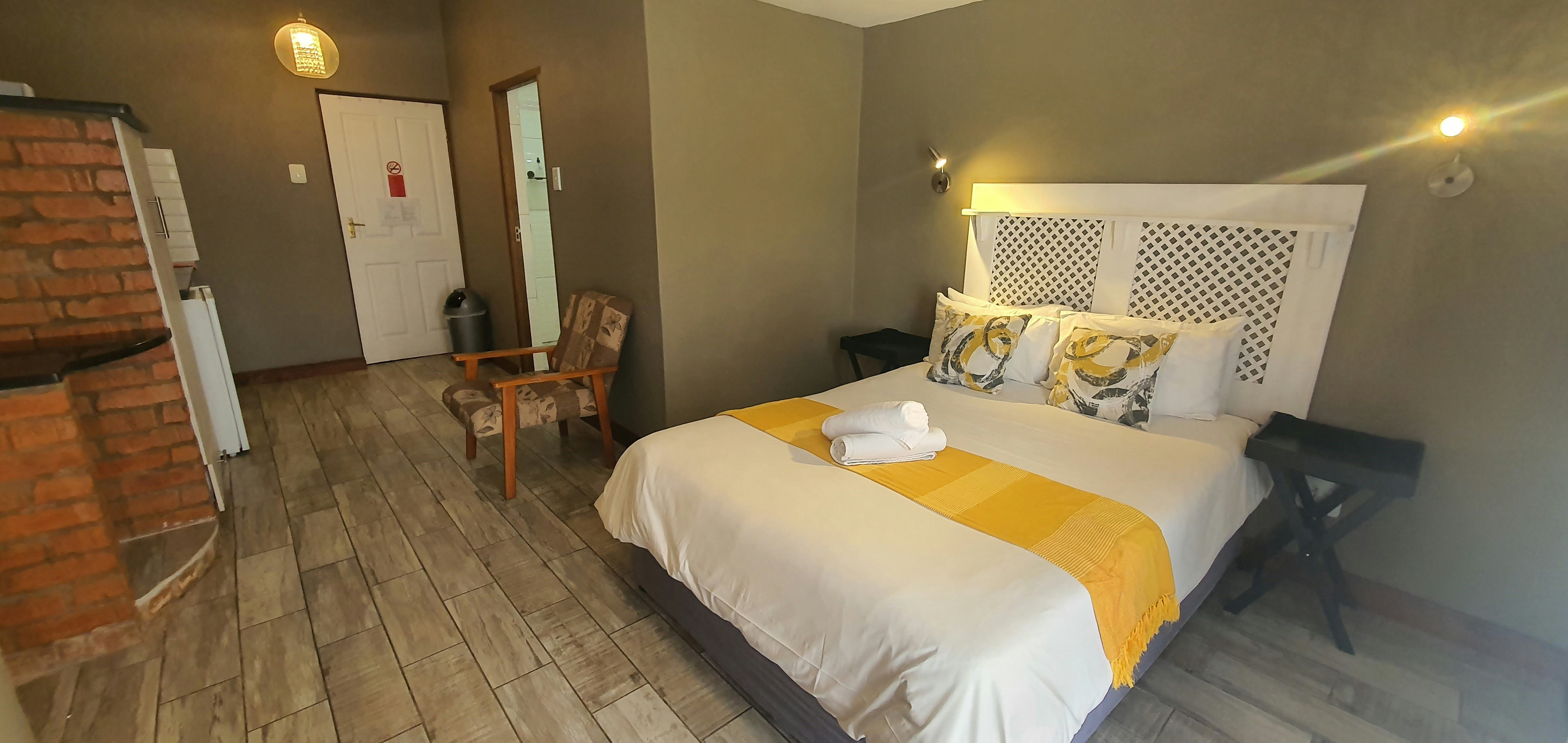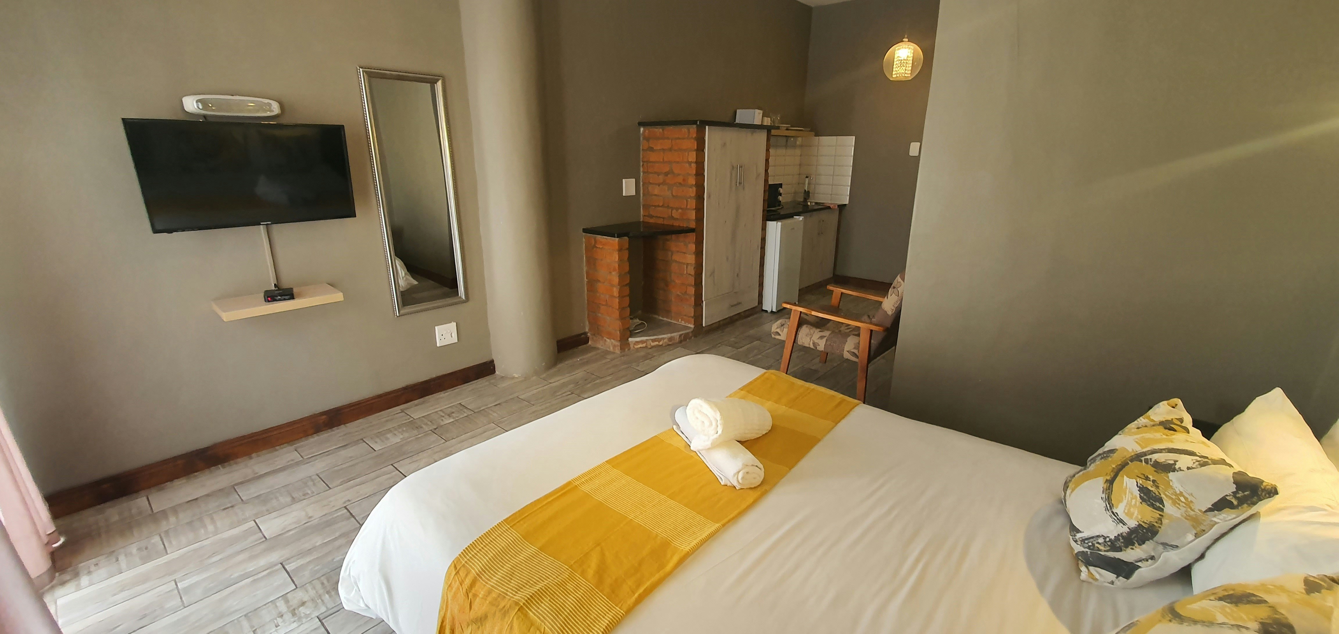 The unit can accommodate 2 guests and is furnished with a double bed. The en-suite bathroom is fitted with a bath and a shower, a toilet and a washbasin. The kitchenette is equipped with a bar fridge, a microwave, a kettle, as well as cutlery and crockery, and tea- and coffee-making facilities. Bathroom amenities are provided. The unit contains a flat-screen TV with OpenView and free Wi-Fi access.