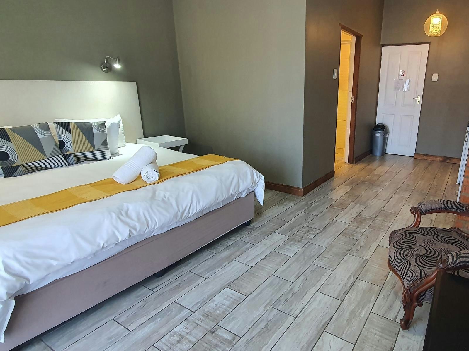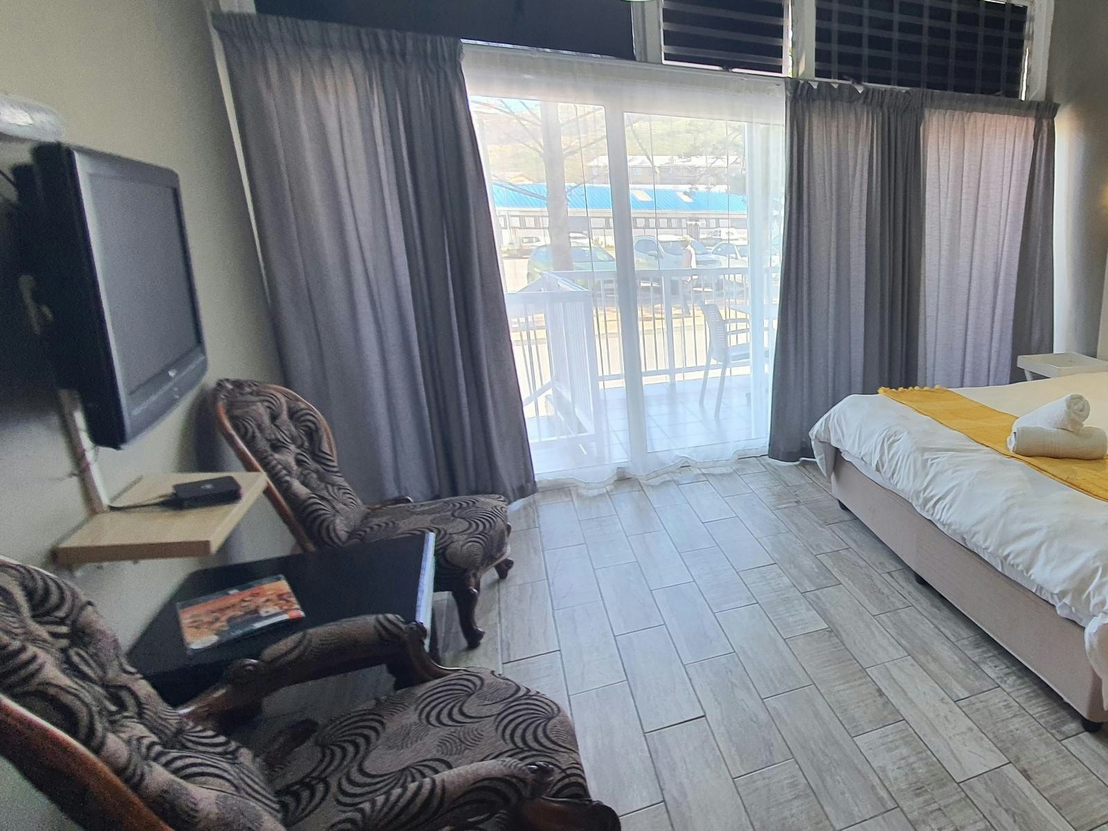 This second-floor family suite accommodates up to 4 guests and consists of 2 bedrooms and 2 private bathrooms. Each bedroom is furnished with a king-size bed and has an en-suite bathroom fitted with a shower, toilet, and washbasin. The unit includes a lounge area and a kitchen equipped for light self-catering. A private balcony offers scenic views. Additional in-room facilities include free Wi-Fi and a TV with OpenView channels. Guests may bring their own DStv decoder for additional viewing options. This unit is suitable for families looking for space and comfort in a hotel setting.