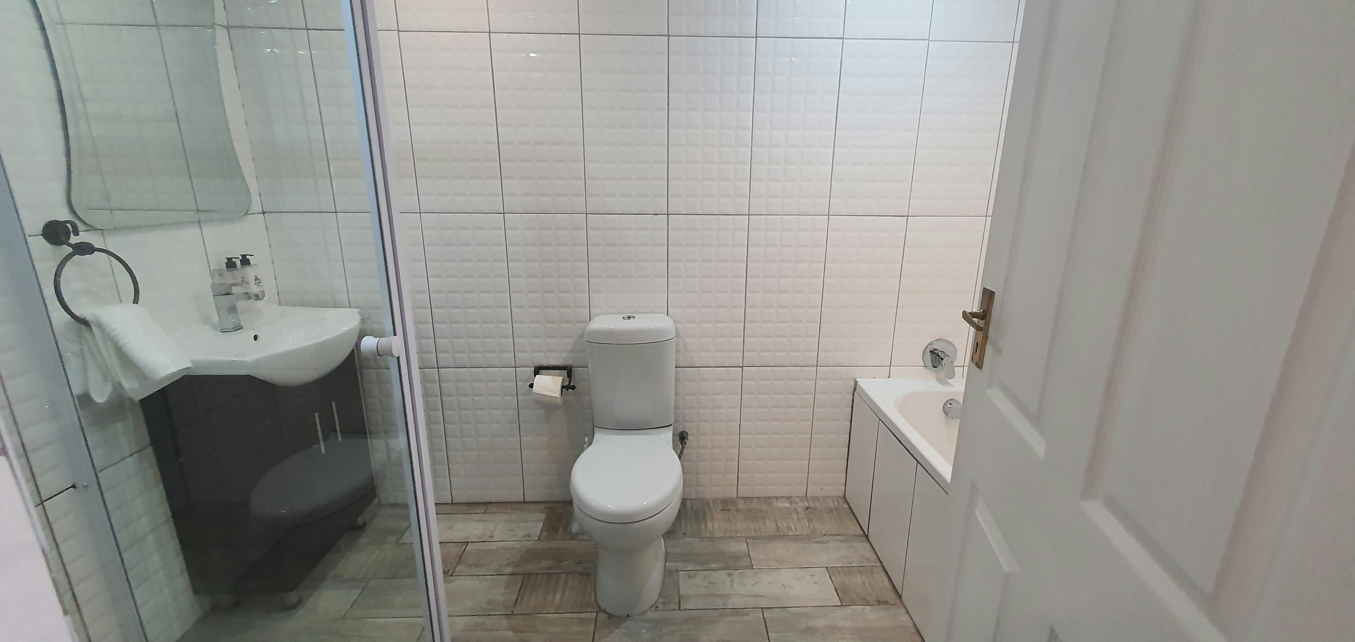 Bath, Shower fixed over bath, Toilet