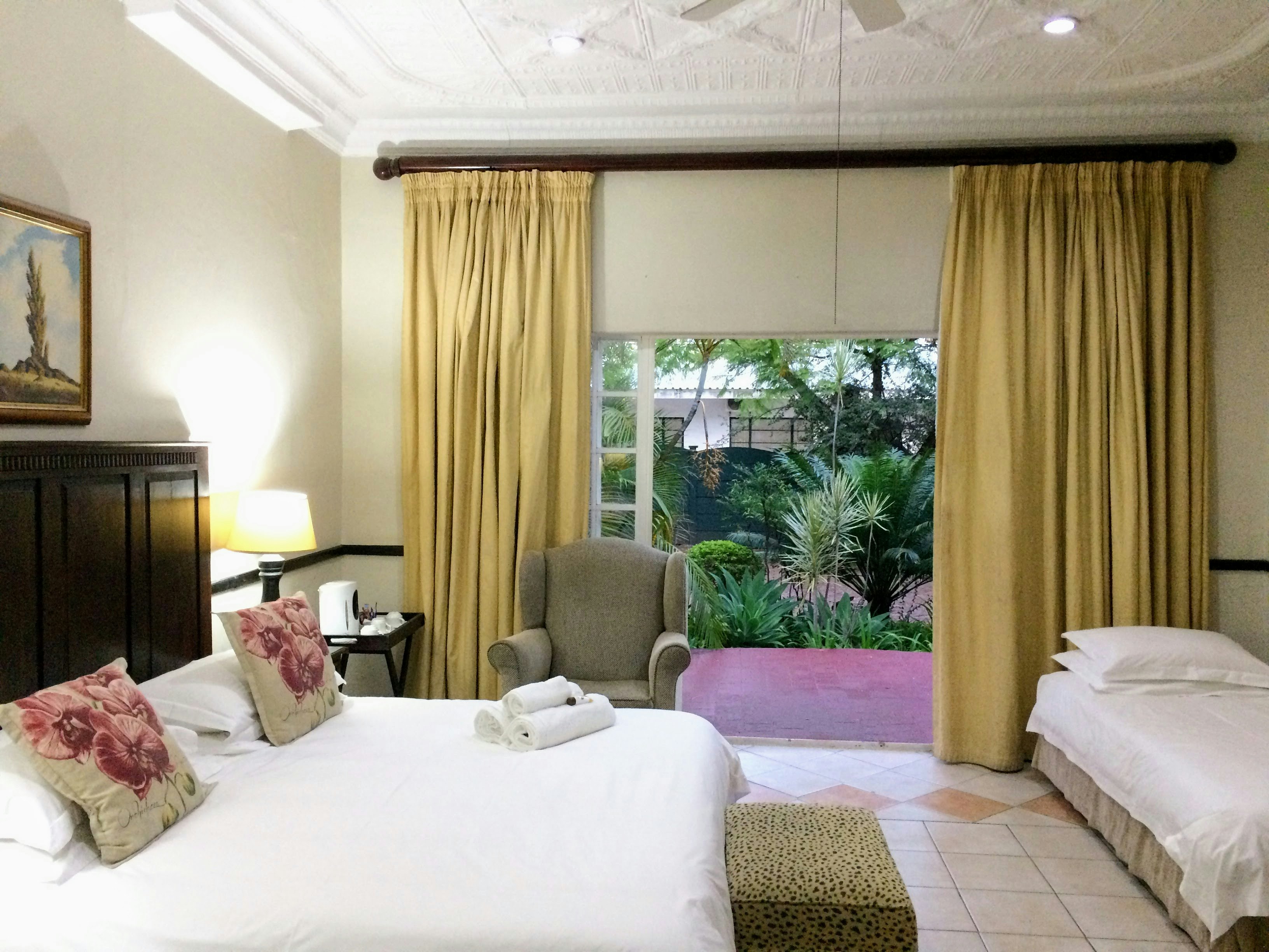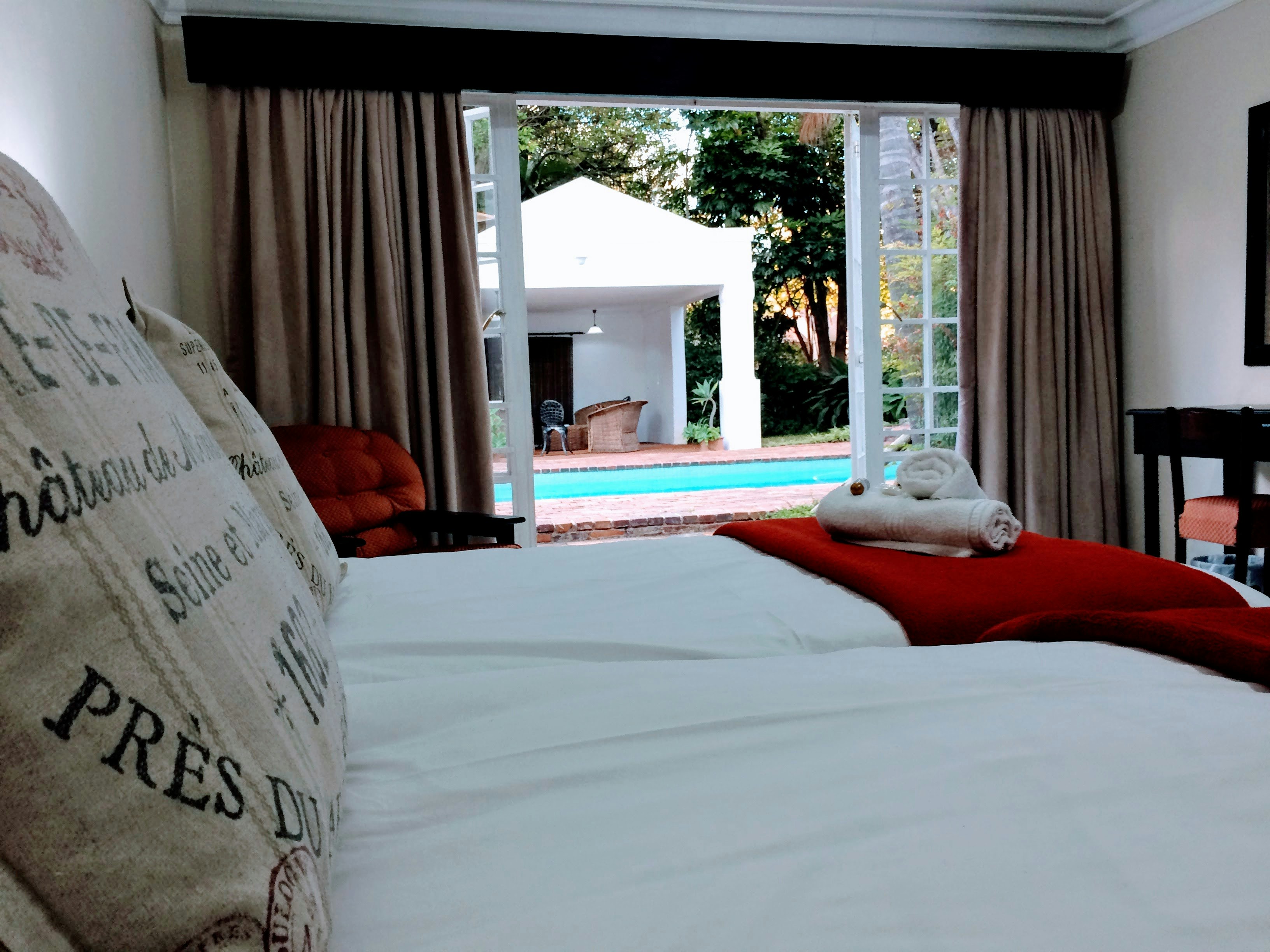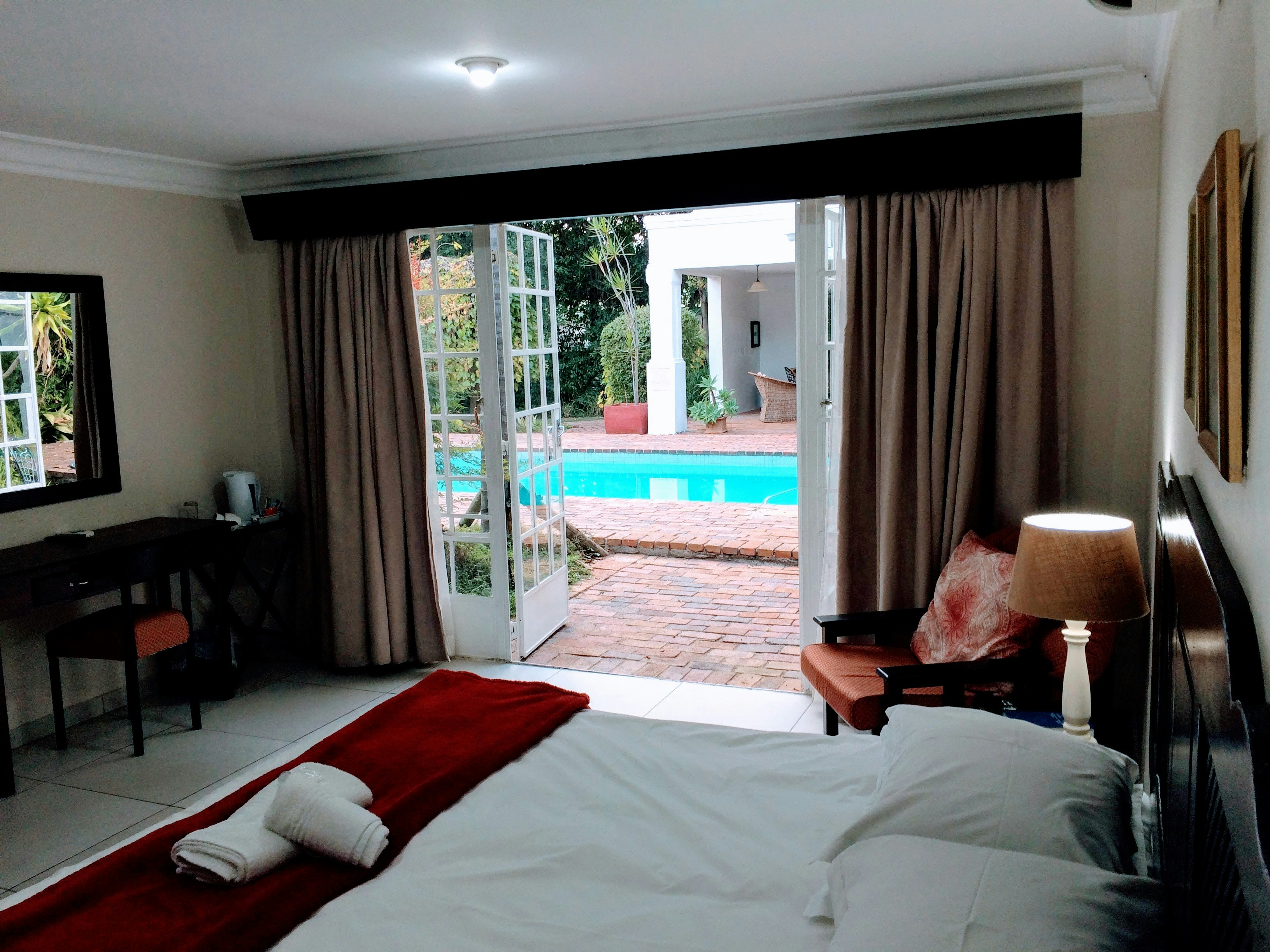 Each of the rooms is equipped with a TV with selected DStv channels, Wi-Fi access, as well as tea- and coffee-making facilities. All rooms have a private entrance, and some open to a view of the swimming pool or garden.