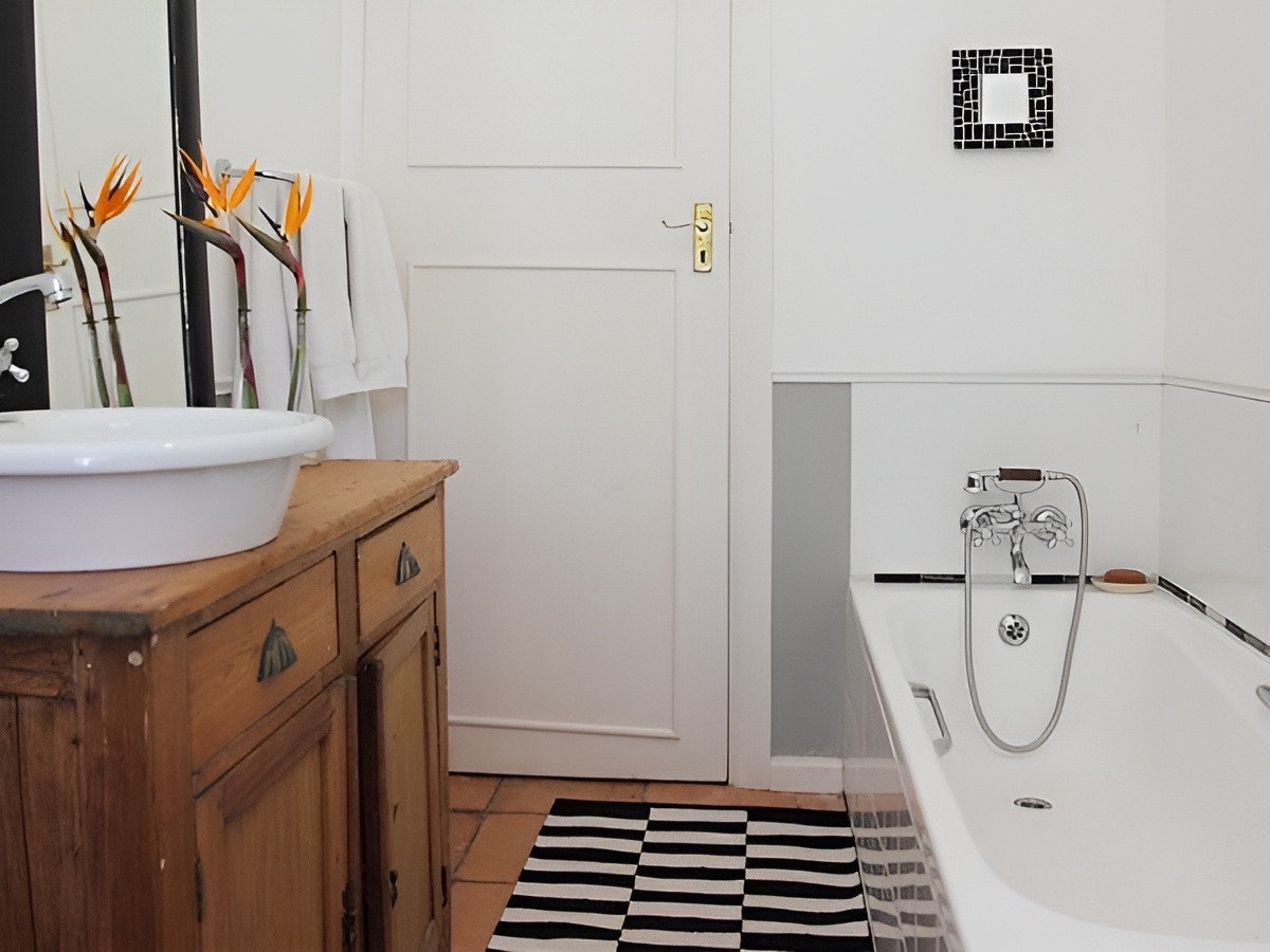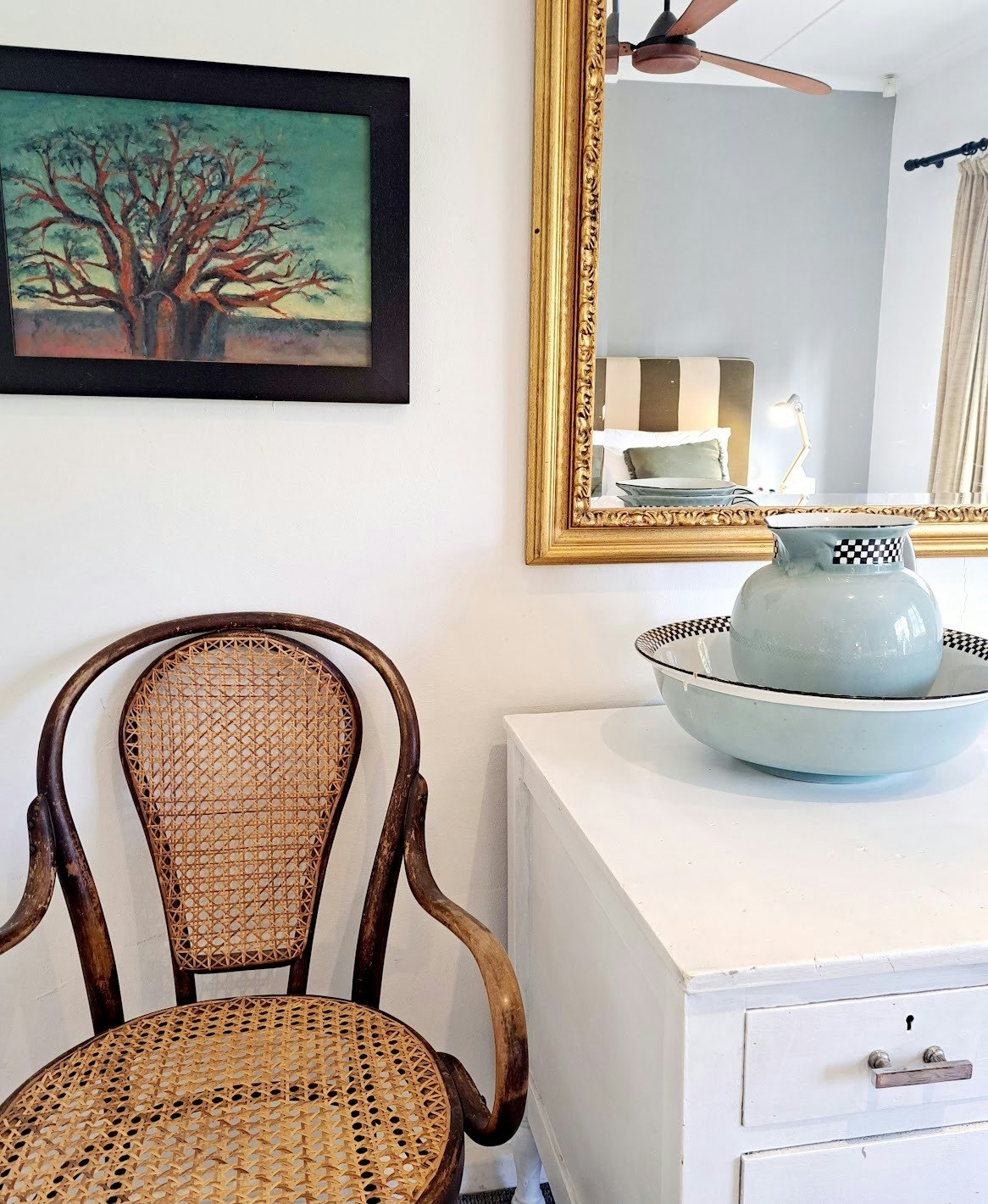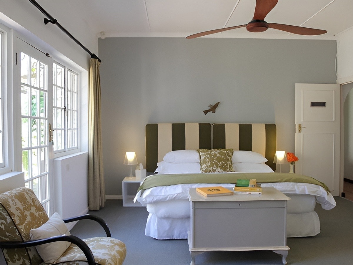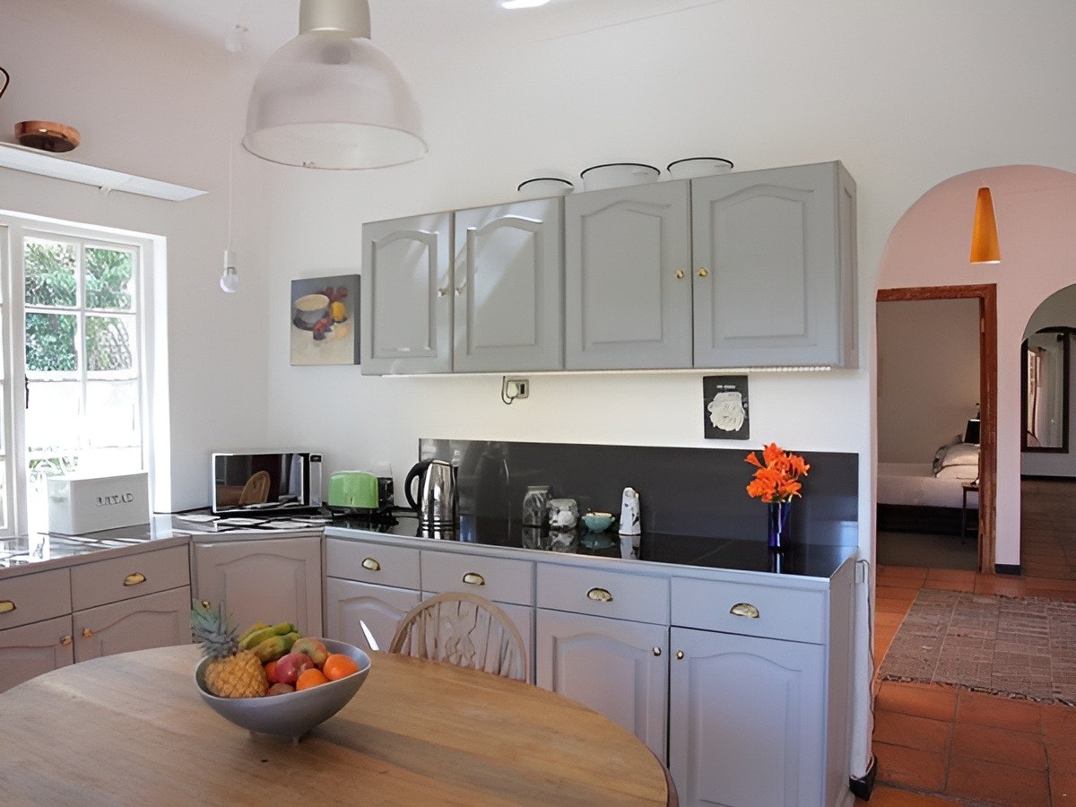 Hierdie huis het slaapplek vir 6 gaste en bestaan uit 3 en suite-slaapkamers wat oopmaak na die wingerdbedekte veranda. Die hoofslaapkamer is ingerig met 'n koninggrootte-bed wat in twee enkelbeddens omskep kan word en het 'n en suite-badkamer met 'n bad, wasbak en toilet. Die tweede slaapkamer het 'n koningingrootte-bed en 'n en suite-badkamer met 'n stort. Die derde slaapkamer is ingerig met 'n koningingrootte-bed en 'n en suite-badkamer met 'n buitestort. Linne en handdoeke word voorsien.