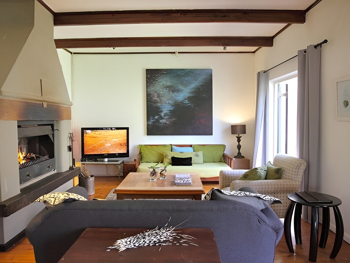Die kombuis is toegerus met 'n yskas-vrieskas, stoof, oond, mikrogolfoond, skottelgoedwasser, eetgerei, breekware, potte en panne, en tee- en koffiemaakgeriewe. Dit maak oop na 'n eetarea met sitplek vir 8 en brei verder uit na die sitkamer wat gemeubileer is met gemaklike rusbanke en 'n kaggel. Daar is ook 'n platskerm-TV waaraan gaste hul eie toestelle kan koppel.