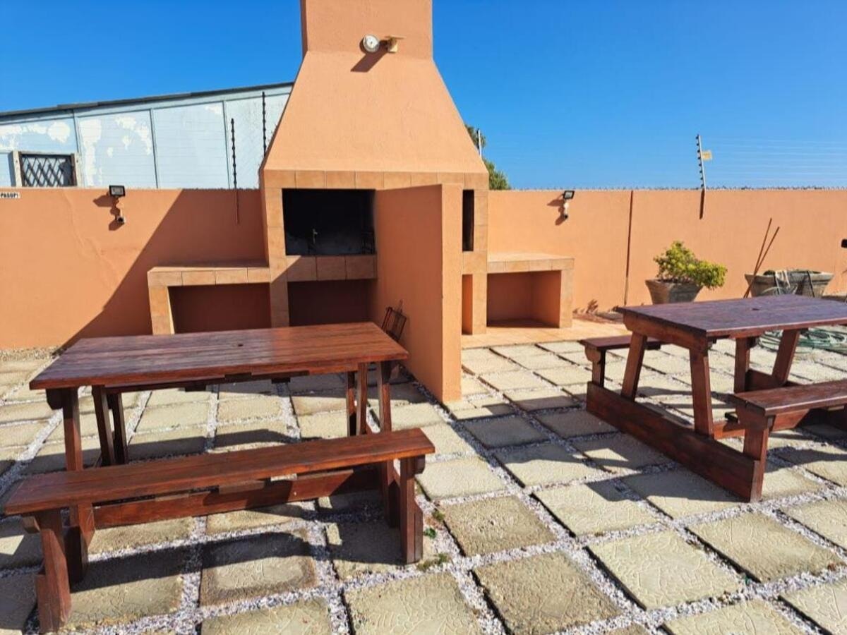 The unit opens onto a patio with outdoor seating. Secure parking, braai facilities, and free Wi-Fi are available.
